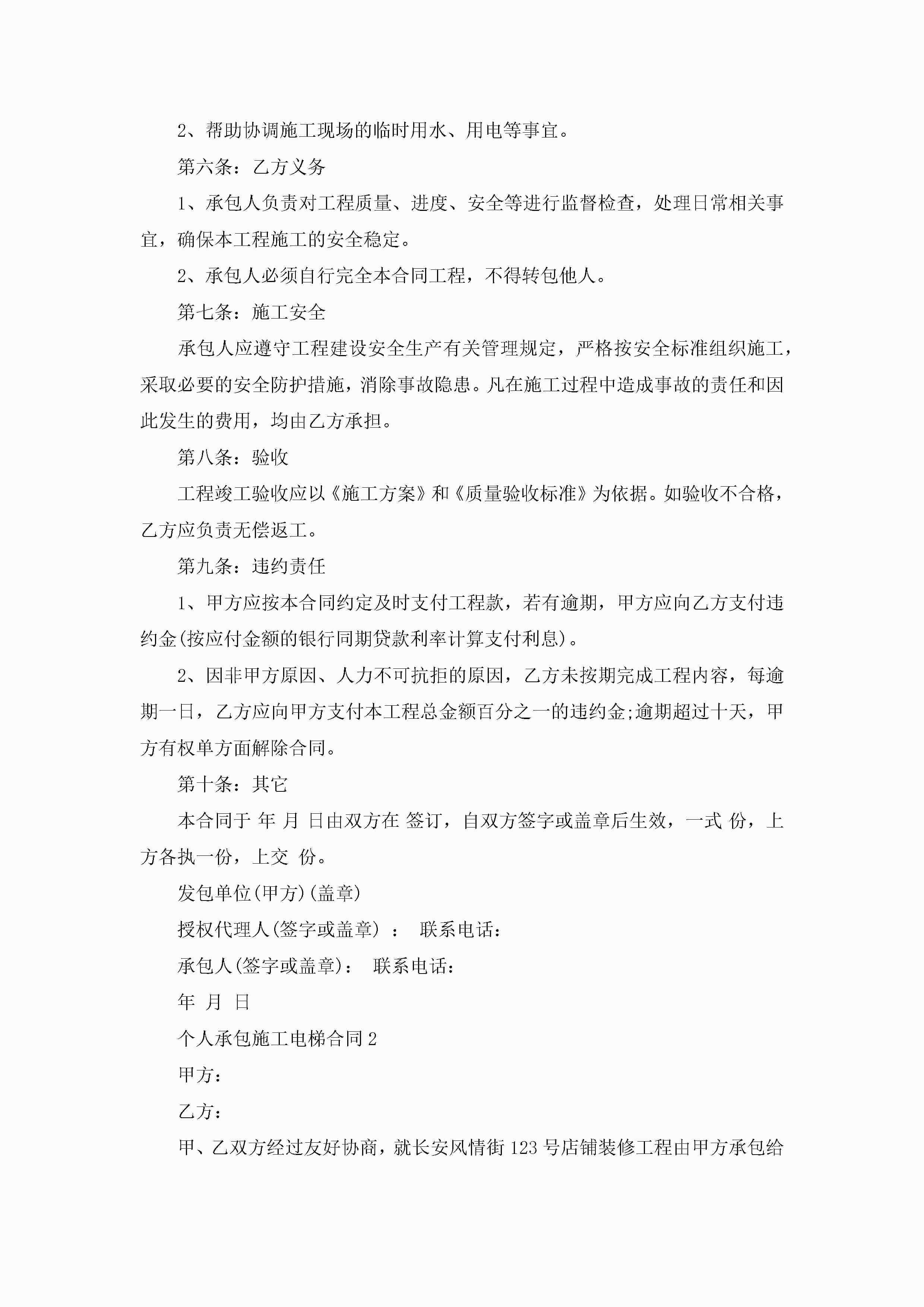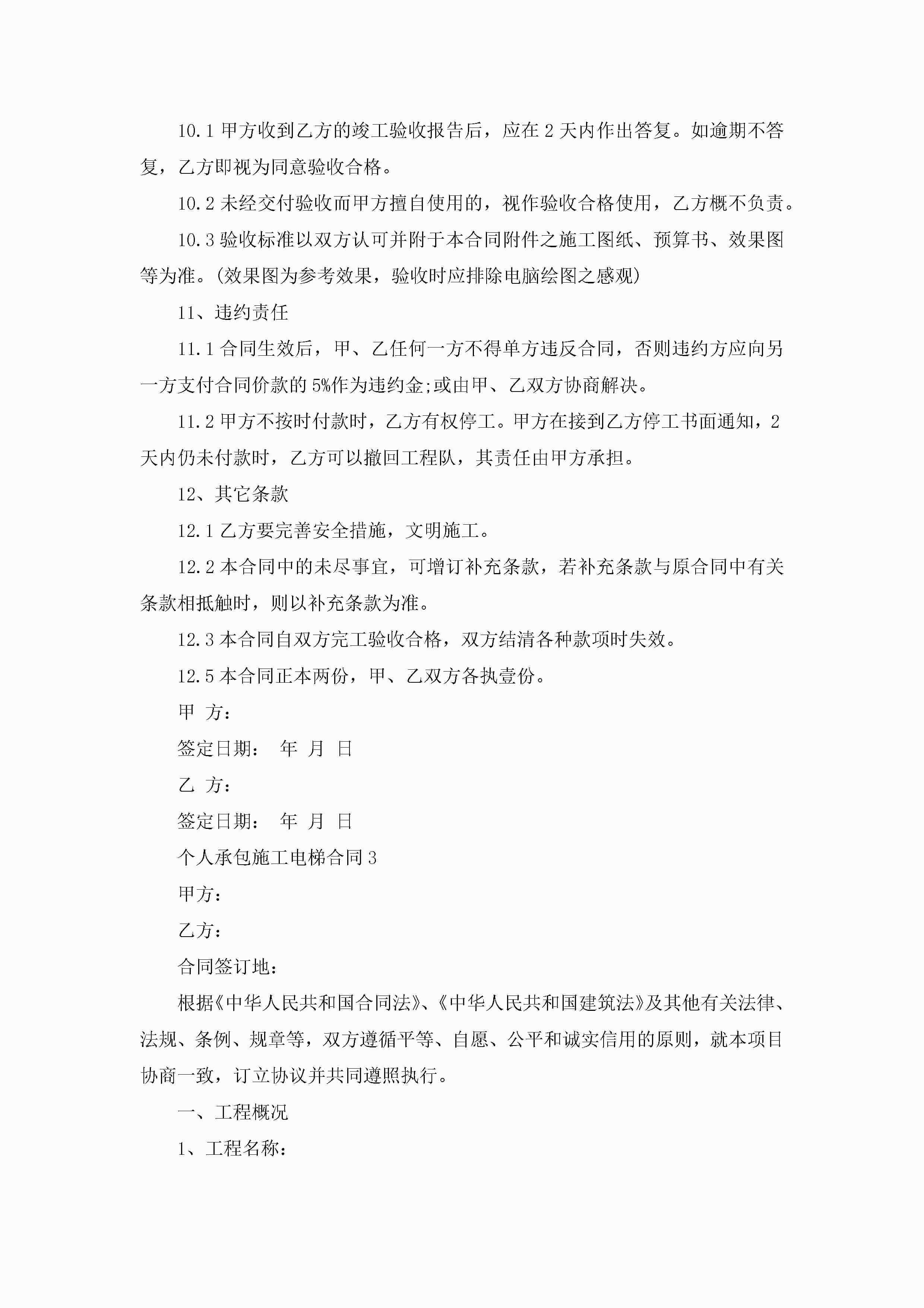 关于个人承包施工电梯合同5篇jugei3月23日 01:35发布关注236 关于个人承包施工电梯合同5篇此内容为付费资源,请付费后查看¥10.9 单篇文档限时特惠¥15个人会员开通企业会员开通立即下载无需登陆!可直接快捷下载单个模板付费资源© 版权声明THE ENDWord模板# 实用文档# 实用模板# 合同模板# 承包合同 如有问题,可点击最底部“联系我们”联系客服 分享QQ空间微博QQ好友海报分享复制链接收藏