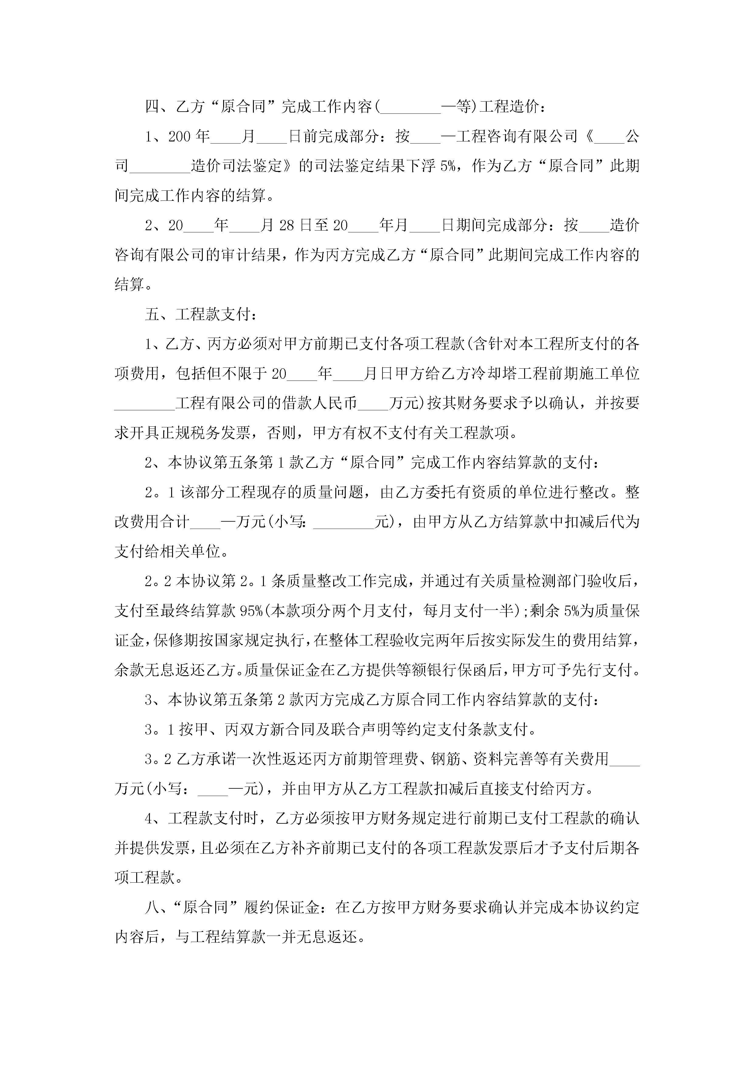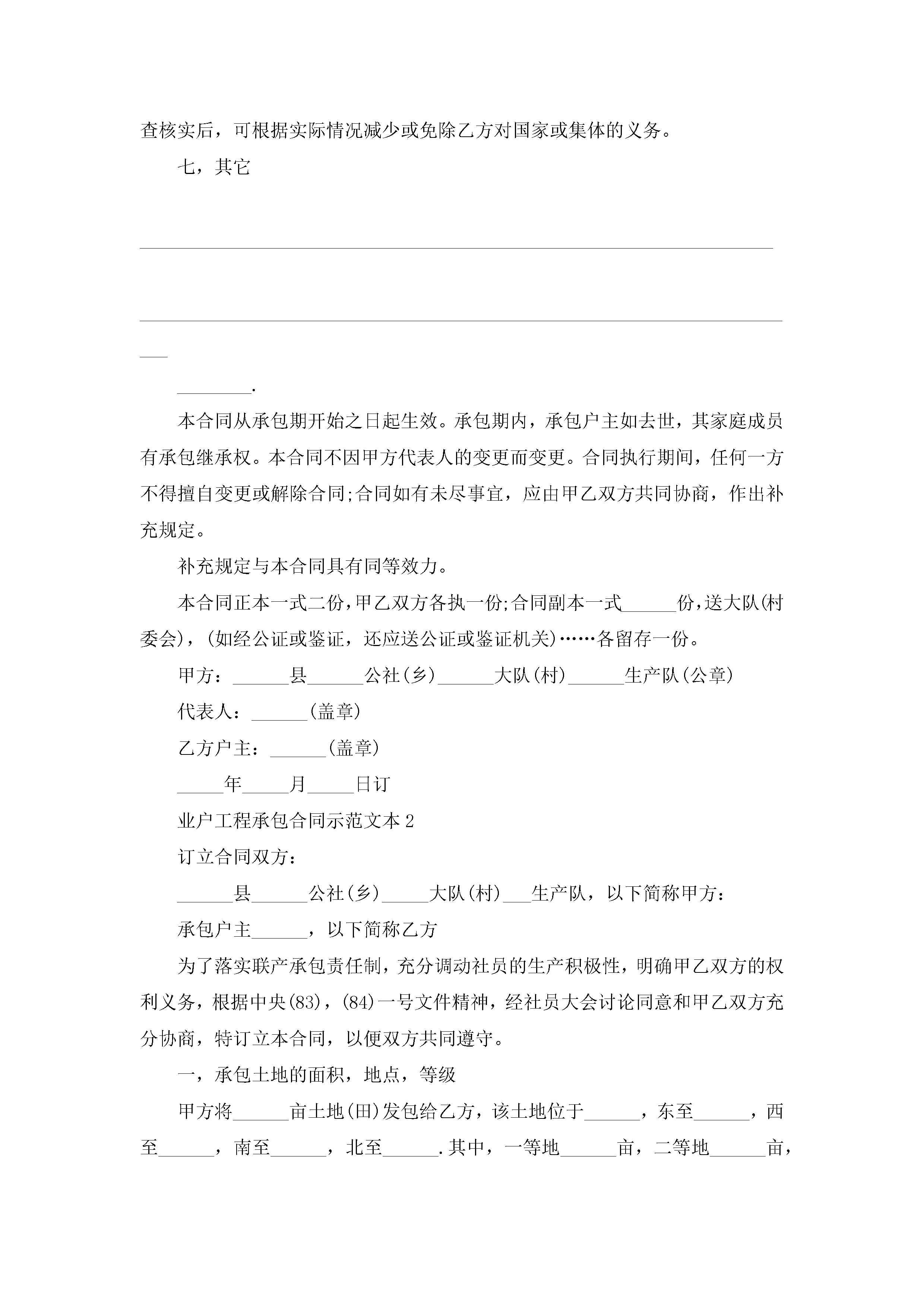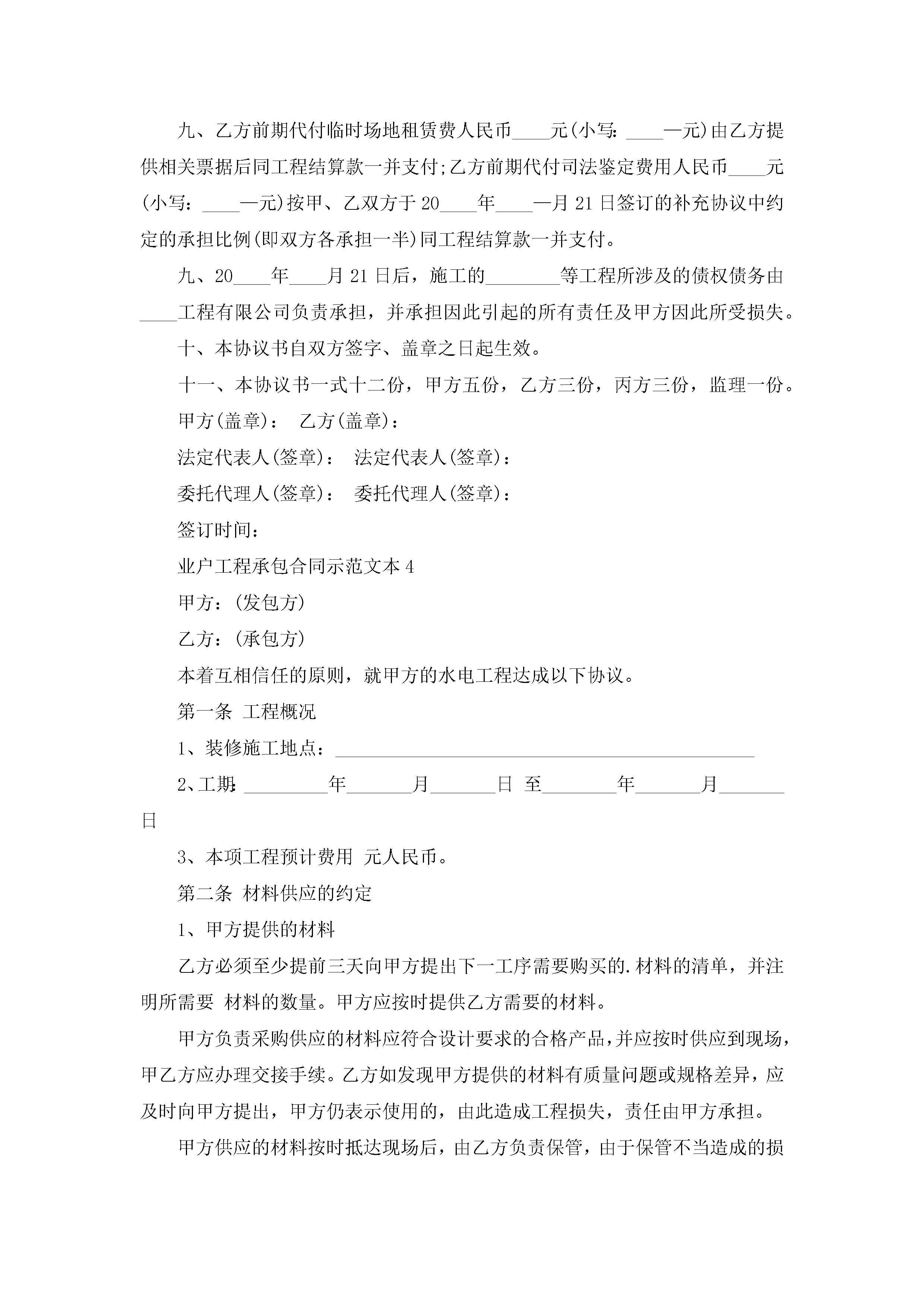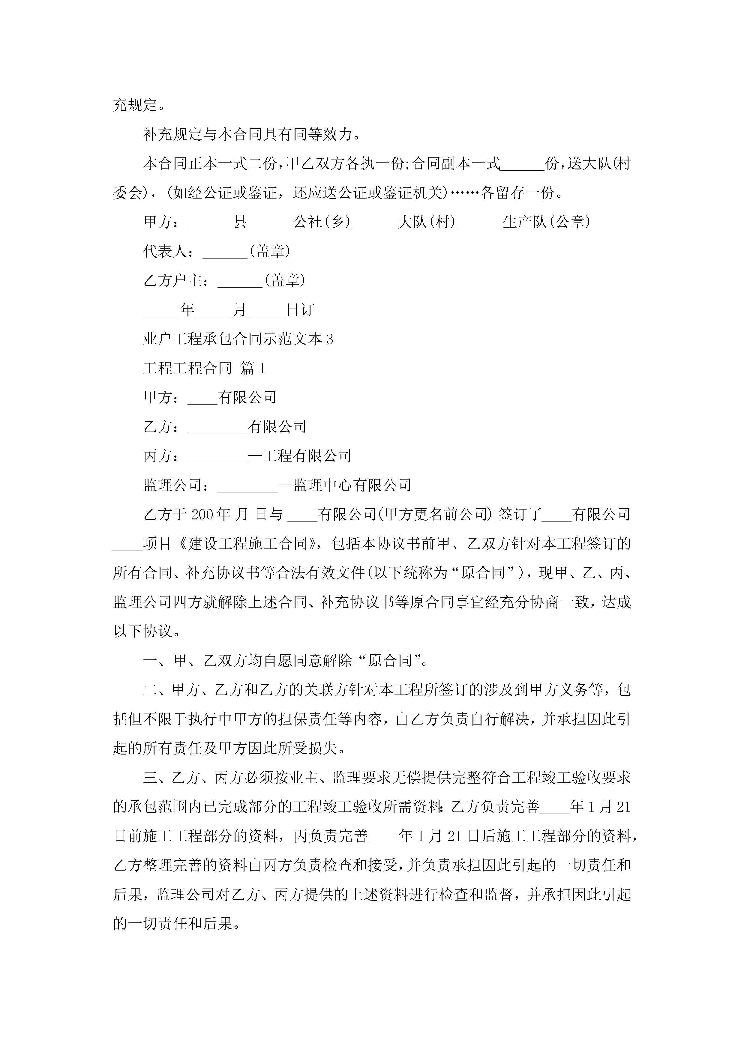 业户工程承包合同示范文本5篇jugei3月23日 01:35发布关注194 业户工程承包合同示范文本5篇此内容为付费资源,请付费后查看¥10.9 单篇文档限时特惠¥15个人会员开通企业会员开通立即下载无需登陆!可直接快捷下载单个模板付费资源© 版权声明THE ENDWord模板# 实用文档# 实用模板# 合同模板# 承包合同 如有问题,可点击最底部“联系我们”联系客服 分享QQ空间微博QQ好友海报分享复制链接收藏