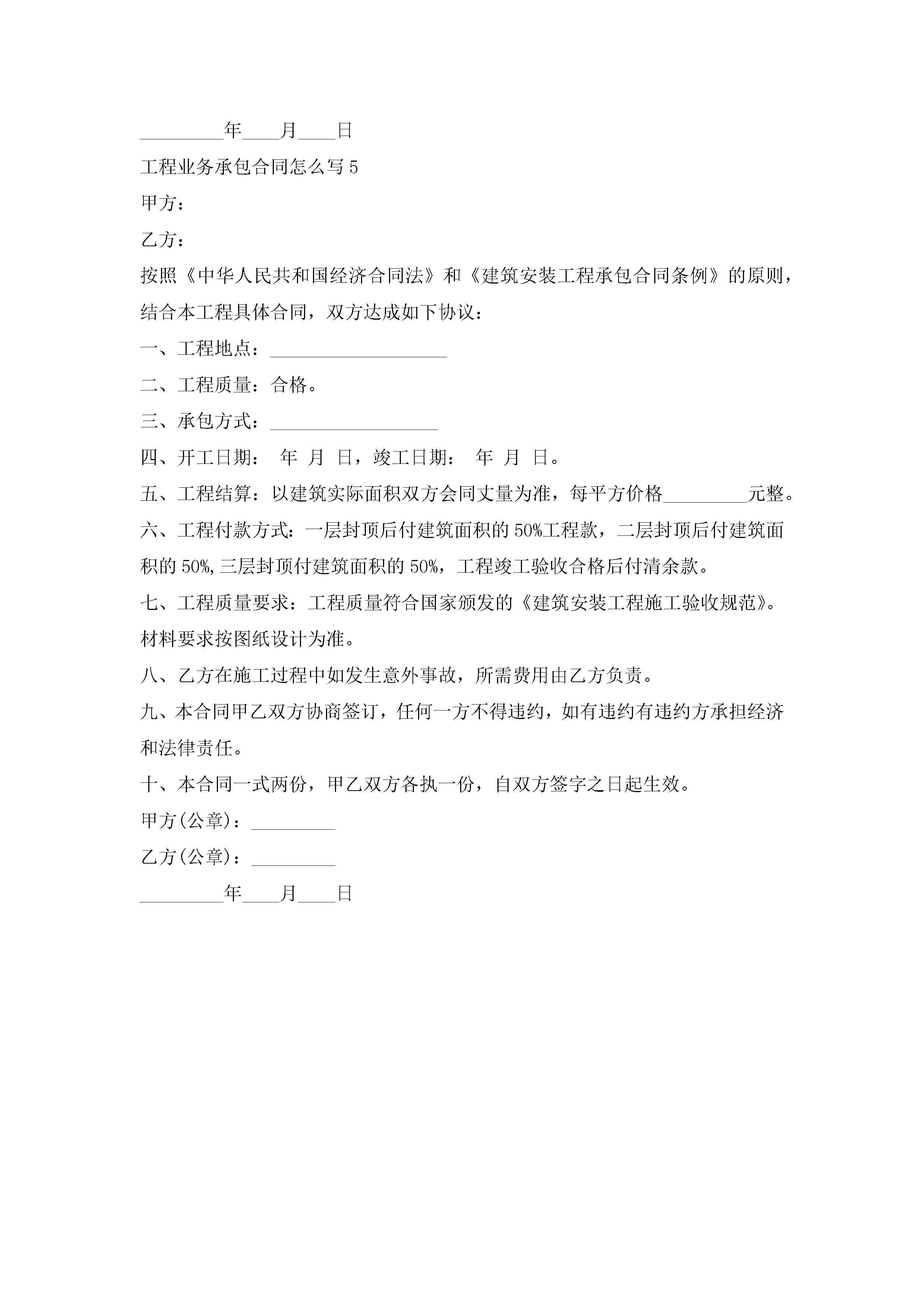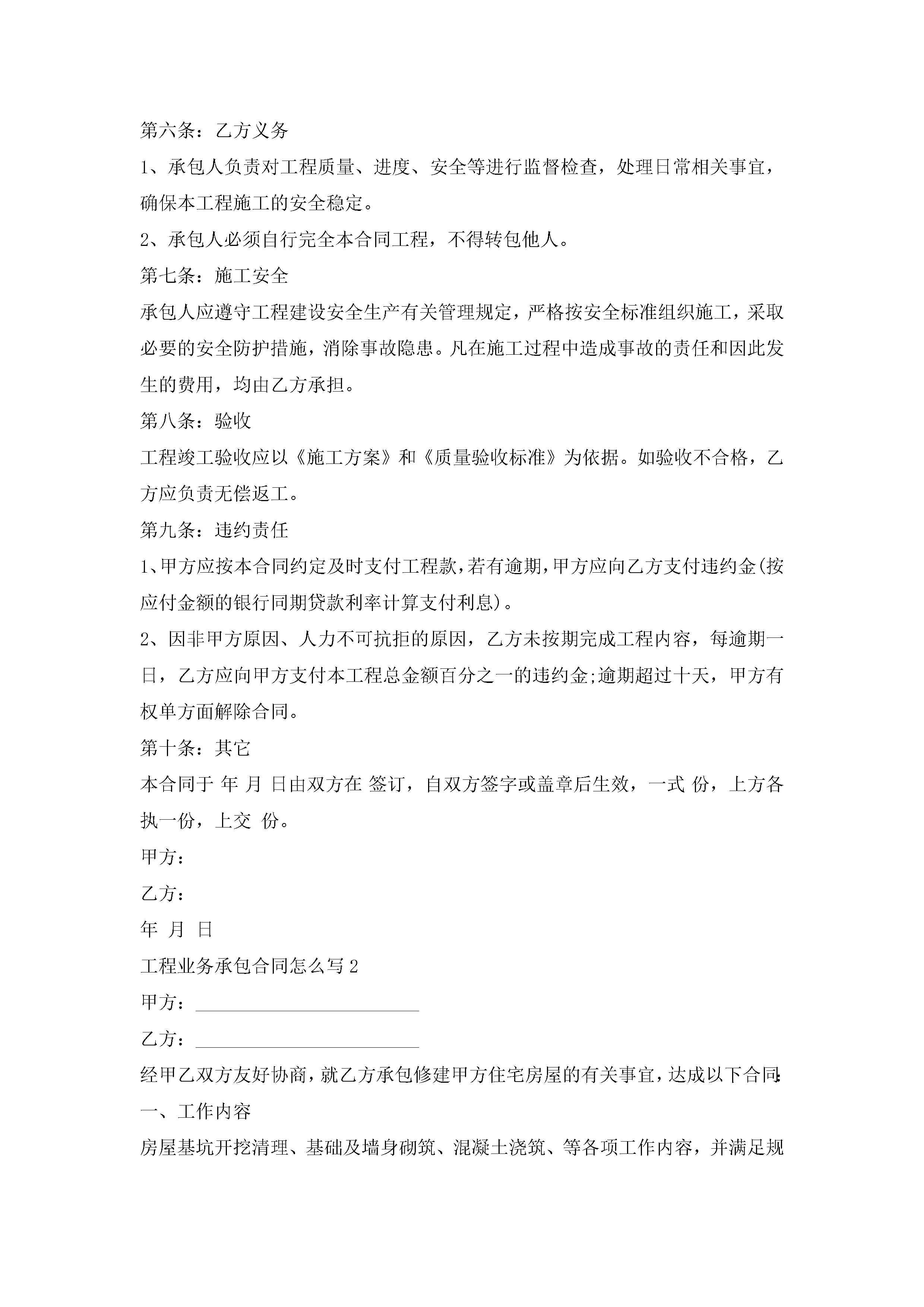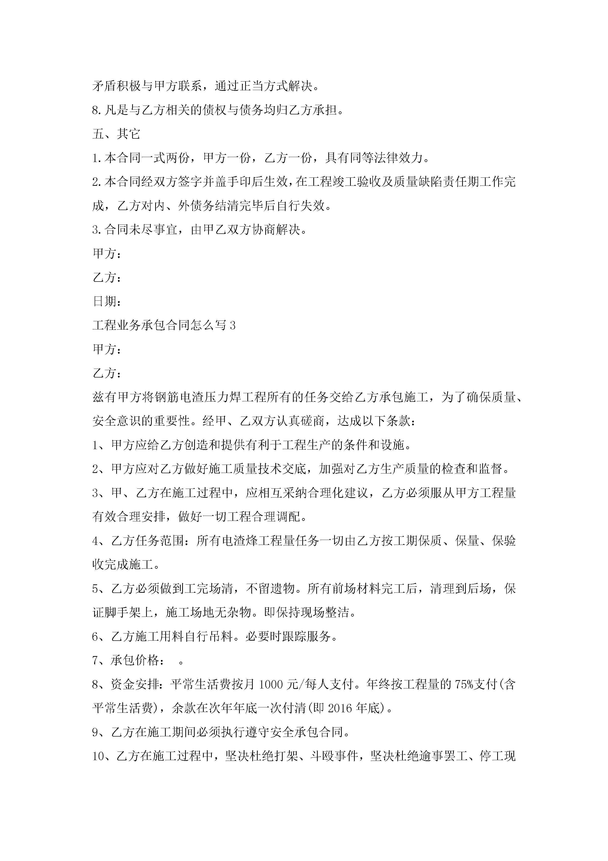 工程业务承包合同怎么写5篇jugei3月23日 01:35发布关注187 工程业务承包合同怎么写5篇此内容为付费资源,请付费后查看¥10.9 单篇文档限时特惠¥15个人会员开通企业会员开通立即下载无需登陆!可直接快捷下载单个模板付费资源© 版权声明THE ENDWord模板# 实用文档# 实用模板# 合同模板# 承包合同 如有问题,可点击最底部“联系我们”联系客服 分享QQ空间微博QQ好友海报分享复制链接收藏