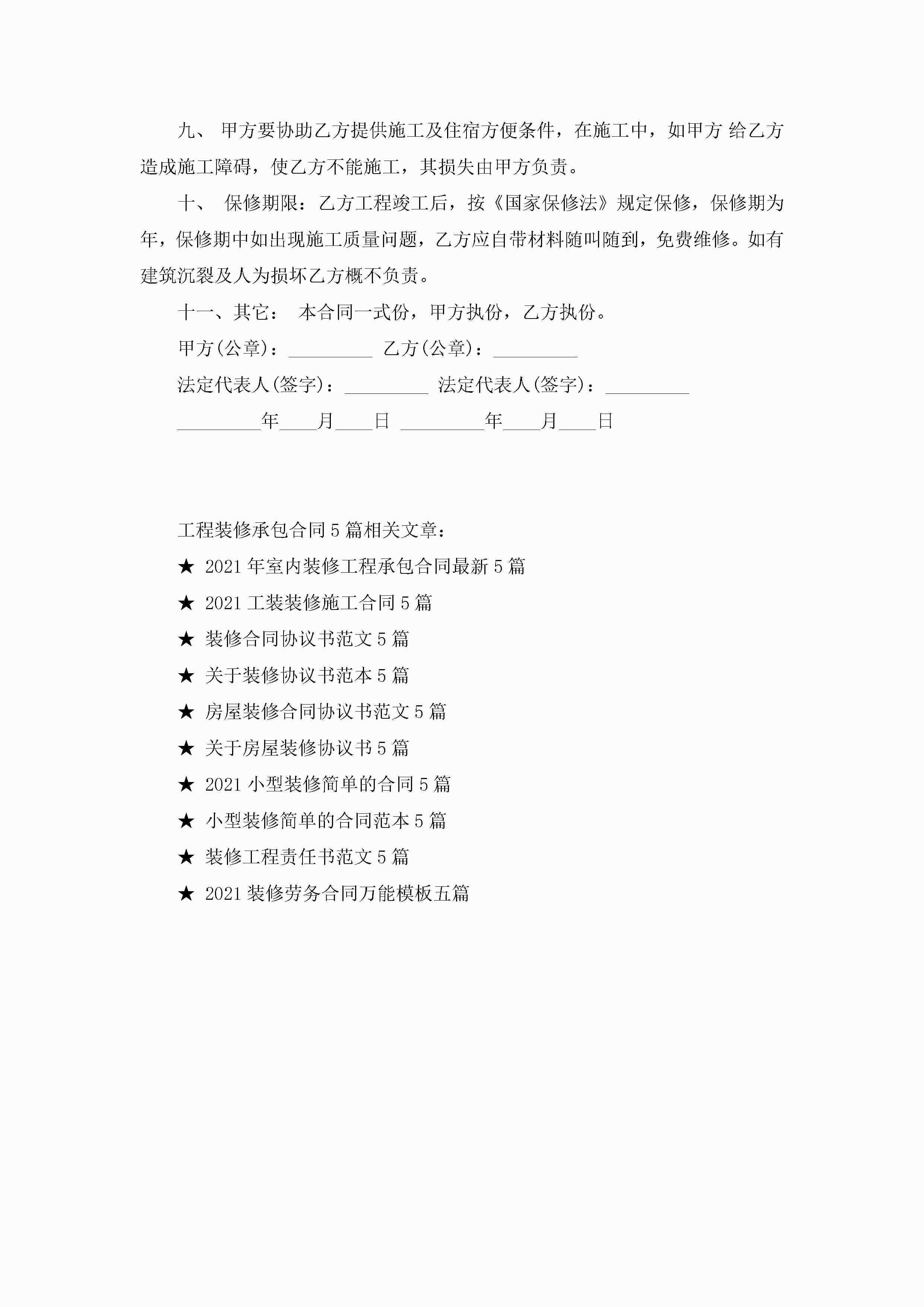 通用工程装修承包合同5篇jugei3月23日 01:35发布关注225 通用工程装修承包合同5篇此内容为付费资源,请付费后查看¥10.9 单篇文档限时特惠¥15个人会员开通企业会员开通立即下载无需登陆!可直接快捷下载单个模板付费资源© 版权声明THE ENDWord模板# 实用文档# 实用模板# 合同模板# 承包合同 如有问题,可点击最底部“联系我们”联系客服 分享QQ空间微博QQ好友海报分享复制链接收藏