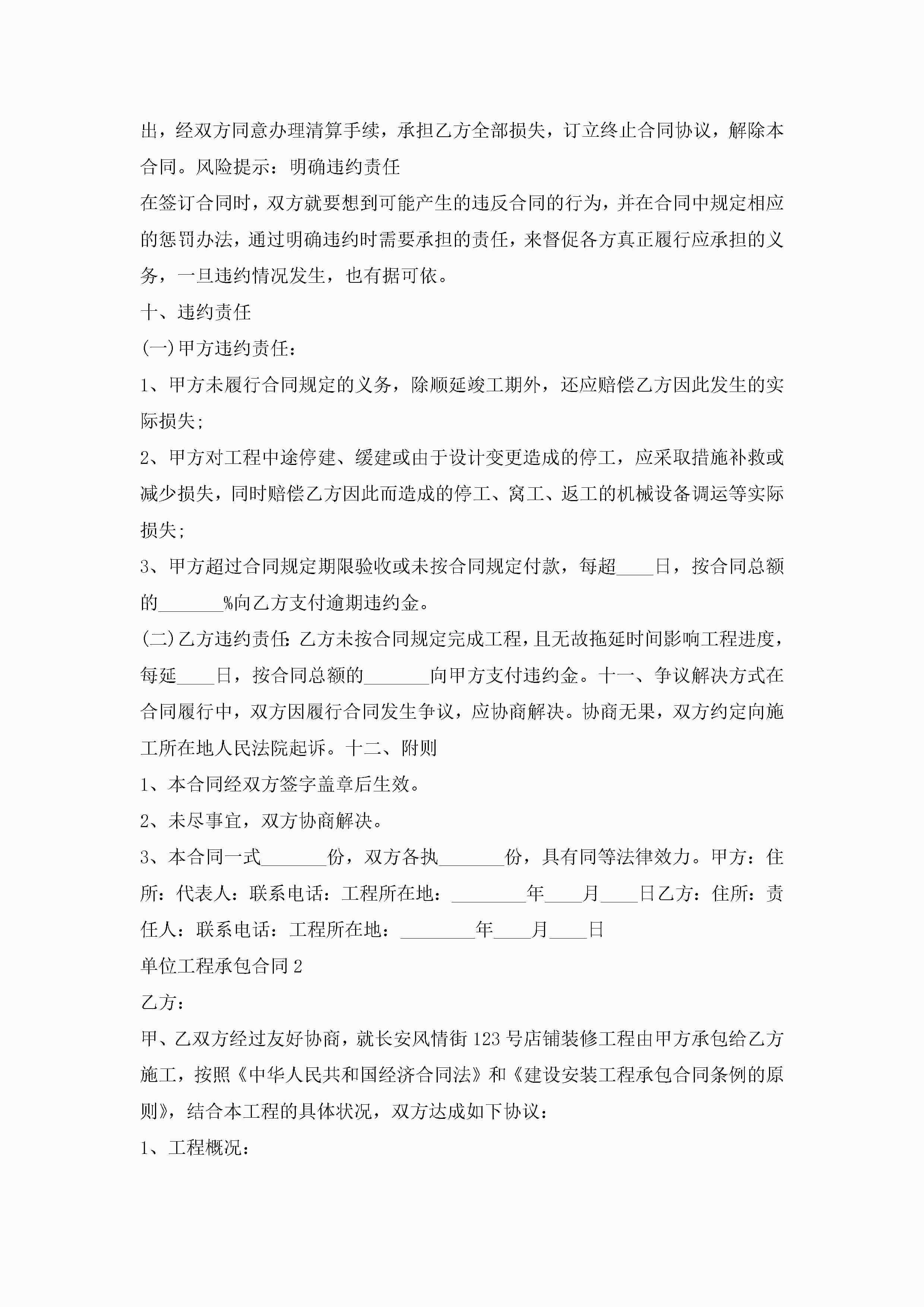 关于单位工程承包合同5篇jugei3月23日 01:35发布关注218 关于单位工程承包合同5篇此内容为付费资源,请付费后查看¥10.9 单篇文档限时特惠¥15个人会员开通企业会员开通立即下载无需登陆!可直接快捷下载单个模板付费资源© 版权声明THE ENDWord模板# 实用文档# 实用模板# 合同模板# 承包合同 如有问题,可点击最底部“联系我们”联系客服 分享QQ空间微博QQ好友海报分享复制链接收藏