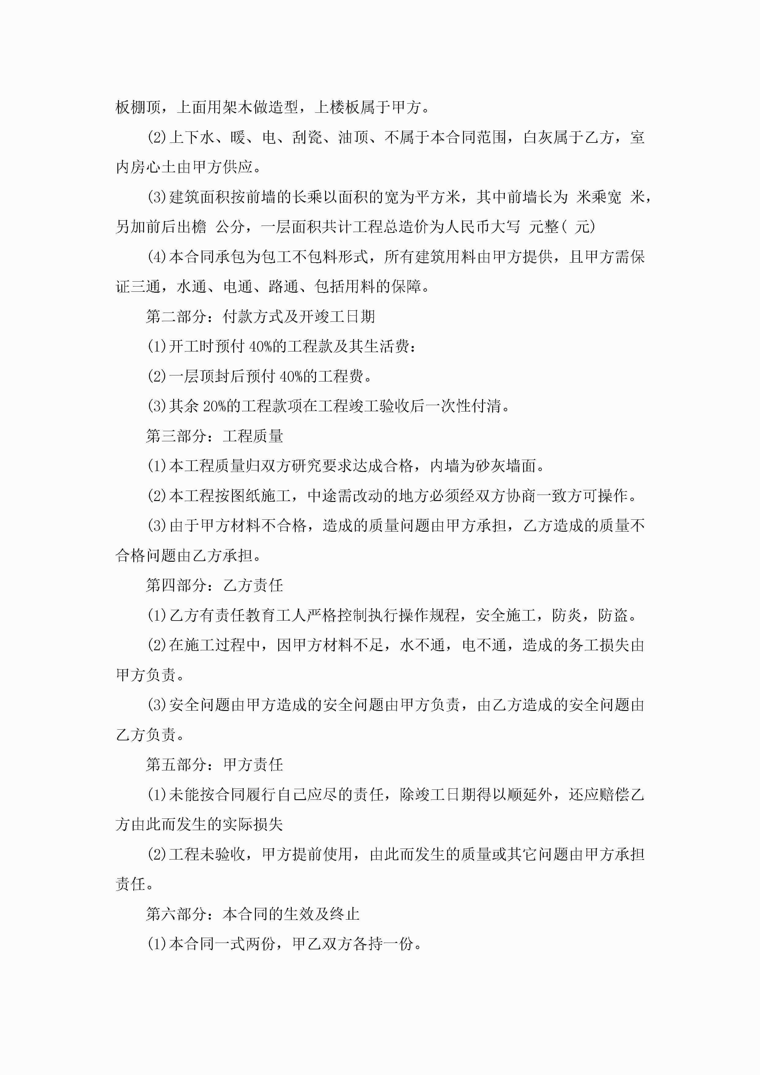 最新工程承包施工合同范本5篇jugei3月23日 01:35发布关注230 最新工程承包施工合同范本5篇此内容为付费资源,请付费后查看¥10.9 单篇文档限时特惠¥15个人会员开通企业会员开通立即下载无需登陆!可直接快捷下载单个模板付费资源© 版权声明THE ENDWord模板# 实用文档# 实用模板# 合同模板# 承包合同 如有问题,可点击最底部“联系我们”联系客服 分享QQ空间微博QQ好友海报分享复制链接收藏