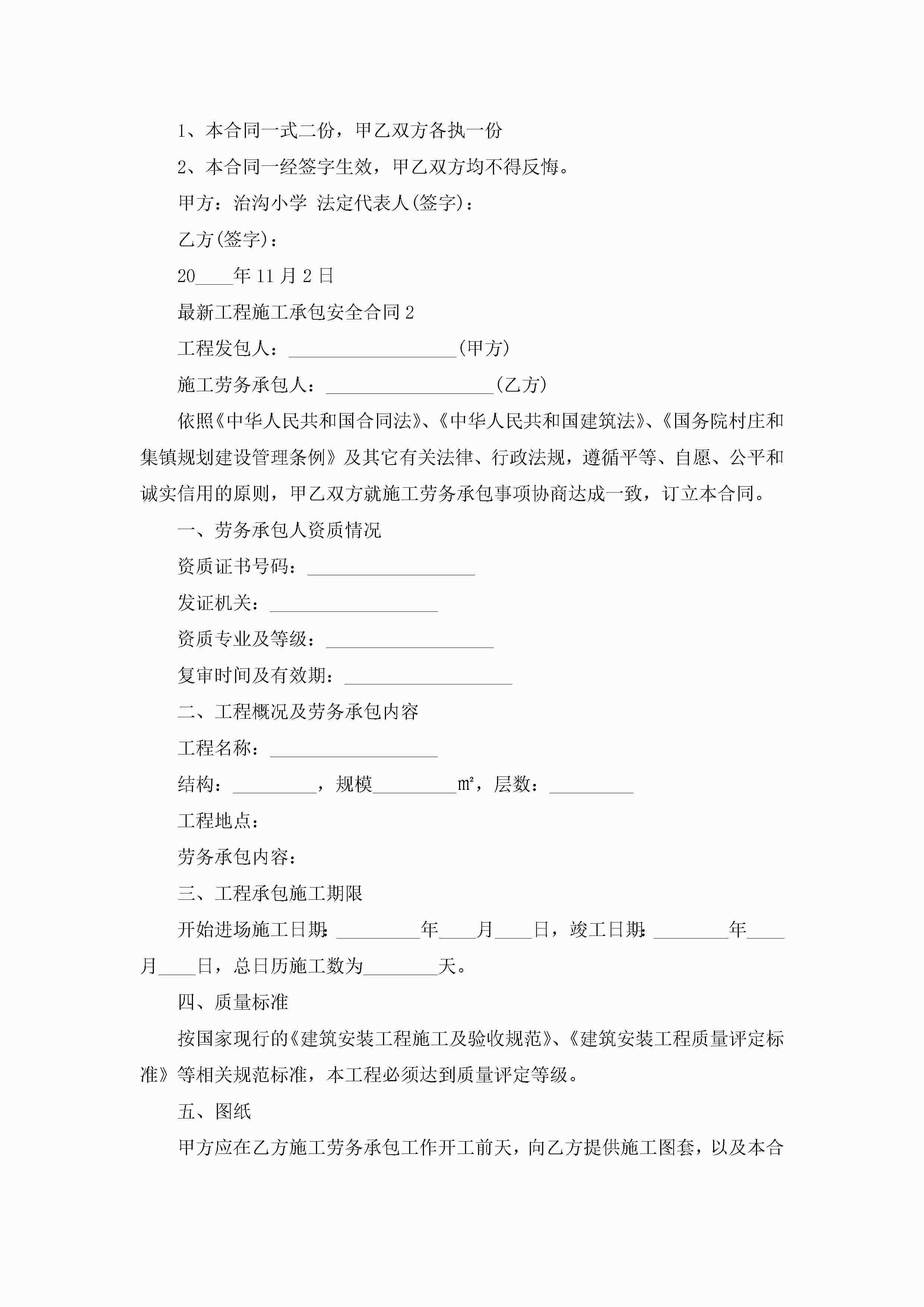 最新工程施工承包安全合同5篇怎么写jugei3月23日 01:35发布关注194 最新工程施工承包安全合同5篇怎么写此内容为付费资源,请付费后查看¥10.9 单篇文档限时特惠¥15个人会员开通企业会员开通立即下载无需登陆!可直接快捷下载单个模板付费资源© 版权声明THE ENDWord模板# 实用文档# 实用模板# 合同模板# 承包合同 如有问题,可点击最底部“联系我们”联系客服 分享QQ空间微博QQ好友海报分享复制链接收藏