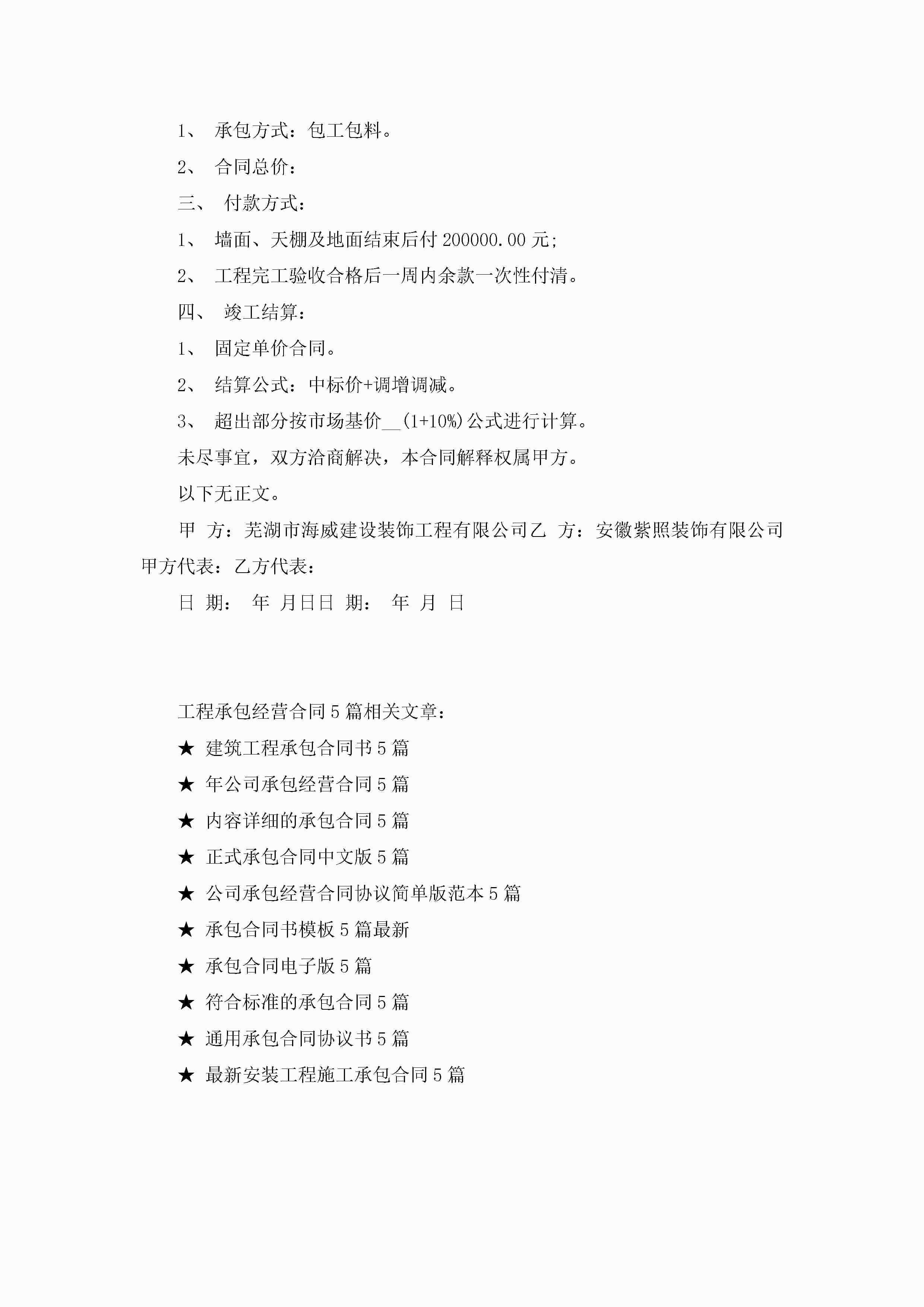 最新工程承包经营合同5篇jugei3月23日 01:35发布关注250 最新工程承包经营合同5篇此内容为付费资源,请付费后查看¥10.9 单篇文档限时特惠¥15个人会员开通企业会员开通立即下载无需登陆!可直接快捷下载单个模板付费资源© 版权声明THE ENDWord模板# 实用文档# 实用模板# 合同模板# 承包合同 如有问题,可点击最底部“联系我们”联系客服 分享QQ空间微博QQ好友海报分享复制链接收藏