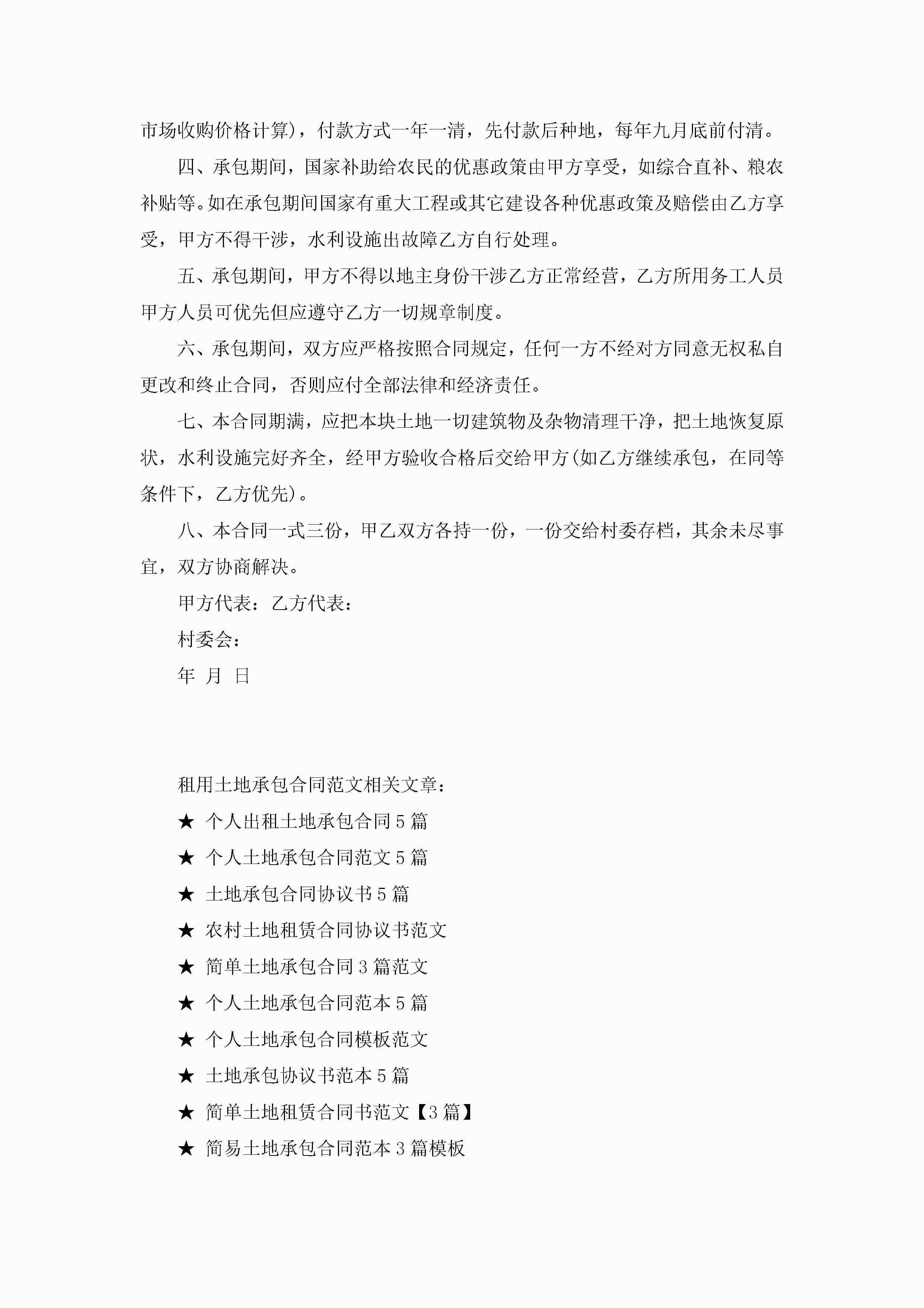 租用土地承包合同范文5篇jugei3月23日 01:35发布关注193 租用土地承包合同范文5篇此内容为付费资源,请付费后查看¥10.9 单篇文档限时特惠¥15个人会员开通企业会员开通立即下载无需登陆!可直接快捷下载单个模板付费资源© 版权声明THE ENDWord模板# 实用文档# 实用模板# 合同模板# 承包合同 如有问题,可点击最底部“联系我们”联系客服 分享QQ空间微博QQ好友海报分享复制链接收藏