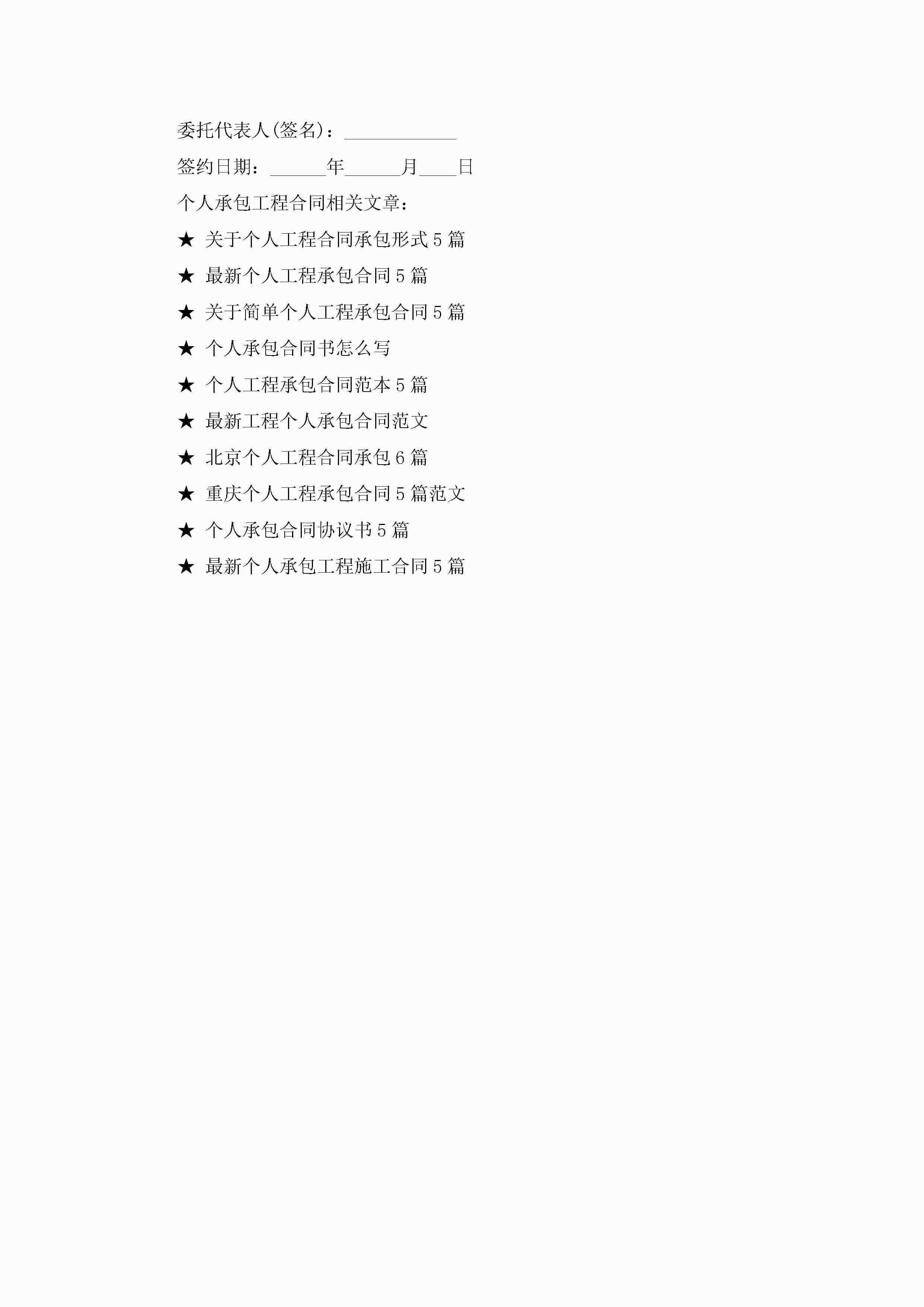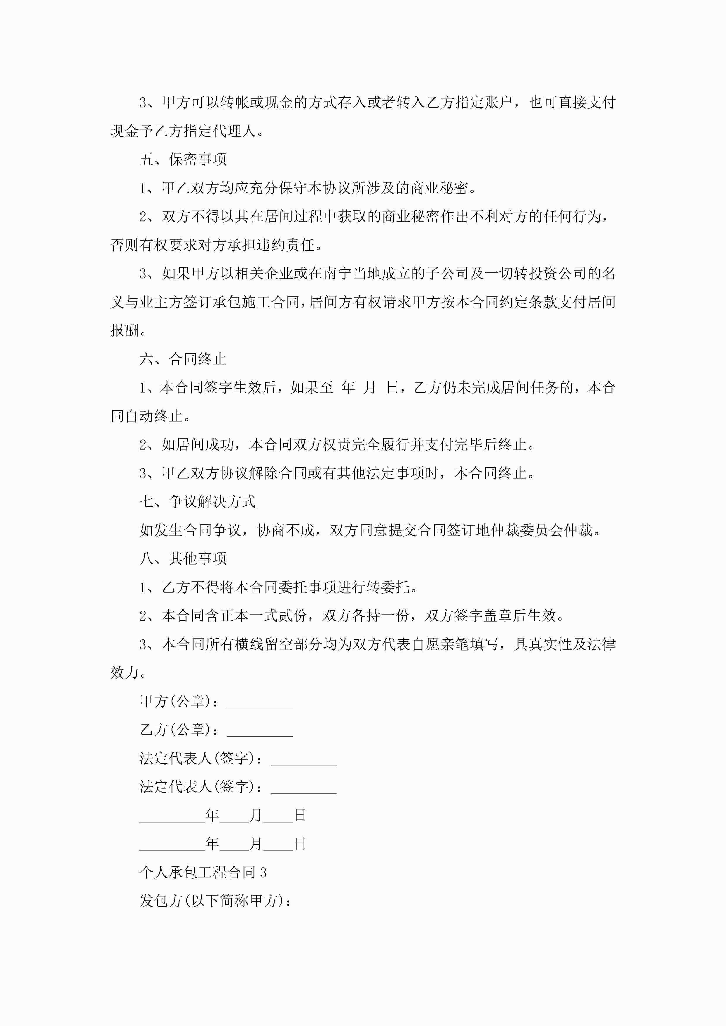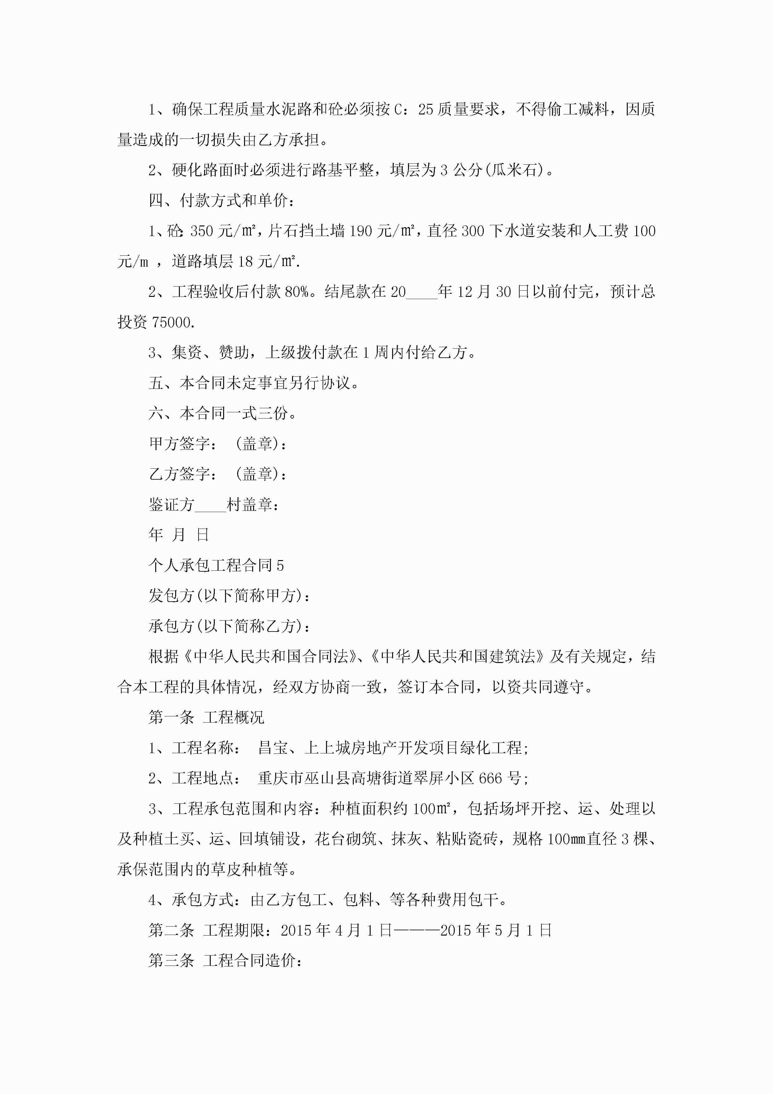 个人承包工程合同5篇jugei3月23日 01:35发布关注233 个人承包工程合同5篇此内容为付费资源,请付费后查看¥10.9 单篇文档限时特惠¥15个人会员开通企业会员开通立即下载无需登陆!可直接快捷下载单个模板付费资源© 版权声明THE ENDWord模板# 实用文档# 实用模板# 合同模板# 承包合同 如有问题,可点击最底部“联系我们”联系客服 分享QQ空间微博QQ好友海报分享复制链接收藏