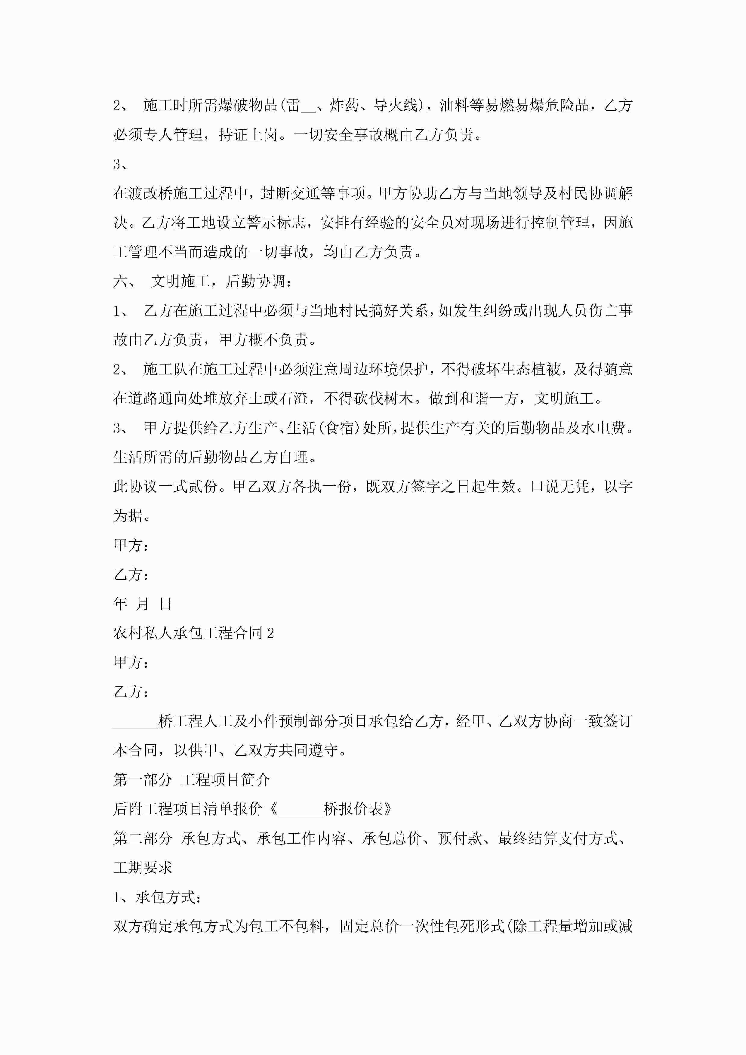 关于农村私人承包工程合同5篇jugei3月23日 01:35发布关注213 关于农村私人承包工程合同5篇此内容为付费资源,请付费后查看¥10.9 单篇文档限时特惠¥15个人会员开通企业会员开通立即下载无需登陆!可直接快捷下载单个模板付费资源© 版权声明THE ENDWord模板# 实用文档# 实用模板# 合同模板# 承包合同 如有问题,可点击最底部“联系我们”联系客服 分享QQ空间微博QQ好友海报分享复制链接收藏