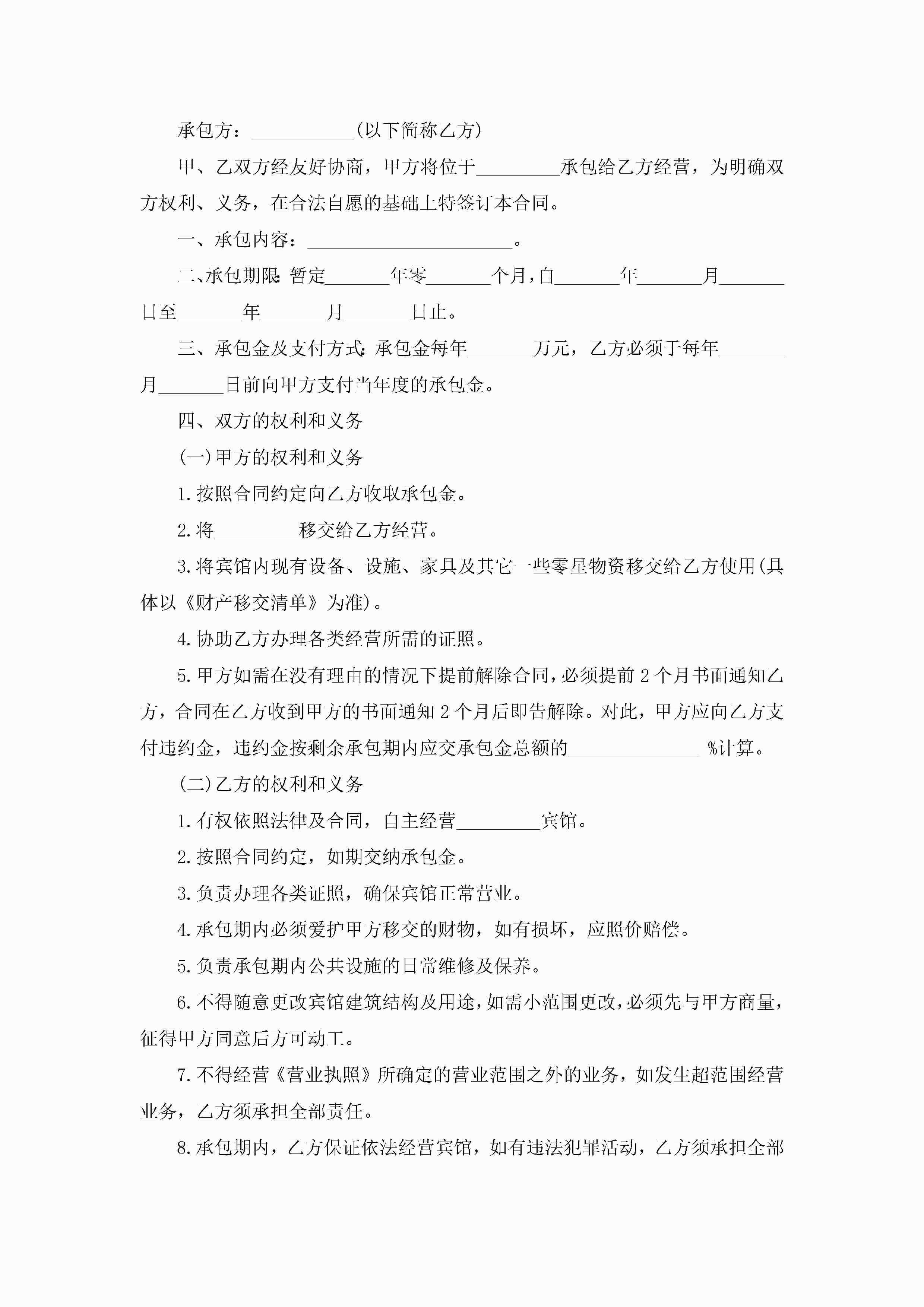 承包经营合同怎么写模板jugei3月23日 01:35发布关注194 承包经营合同怎么写模板此内容为付费资源,请付费后查看¥10.9 单篇文档限时特惠¥15个人会员开通企业会员开通立即下载无需登陆!可直接快捷下载单个模板付费资源© 版权声明THE ENDWord模板# 实用文档# 实用模板# 合同模板# 承包合同 如有问题,可点击最底部“联系我们”联系客服 分享QQ空间微博QQ好友海报分享复制链接收藏
