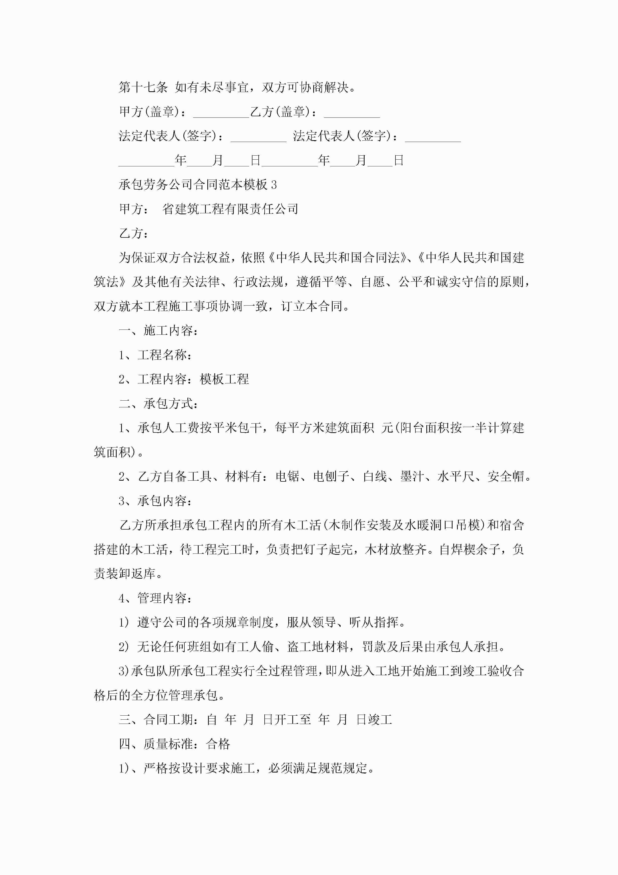 承包劳务公司合同范本模板jugei3月23日 01:35发布关注188 承包劳务公司合同范本模板此内容为付费资源,请付费后查看¥10.9 单篇文档限时特惠¥15个人会员开通企业会员开通立即下载无需登陆!可直接快捷下载单个模板付费资源© 版权声明THE ENDWord模板# 实用文档# 实用模板# 合同模板# 承包合同 如有问题,可点击最底部“联系我们”联系客服 分享QQ空间微博QQ好友海报分享复制链接收藏
