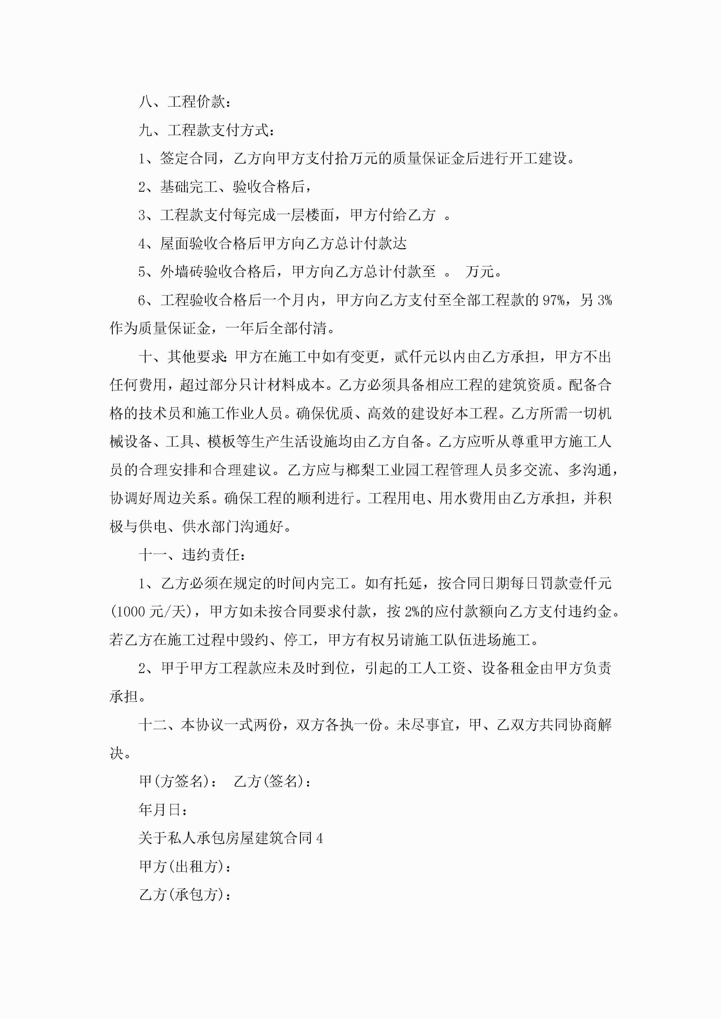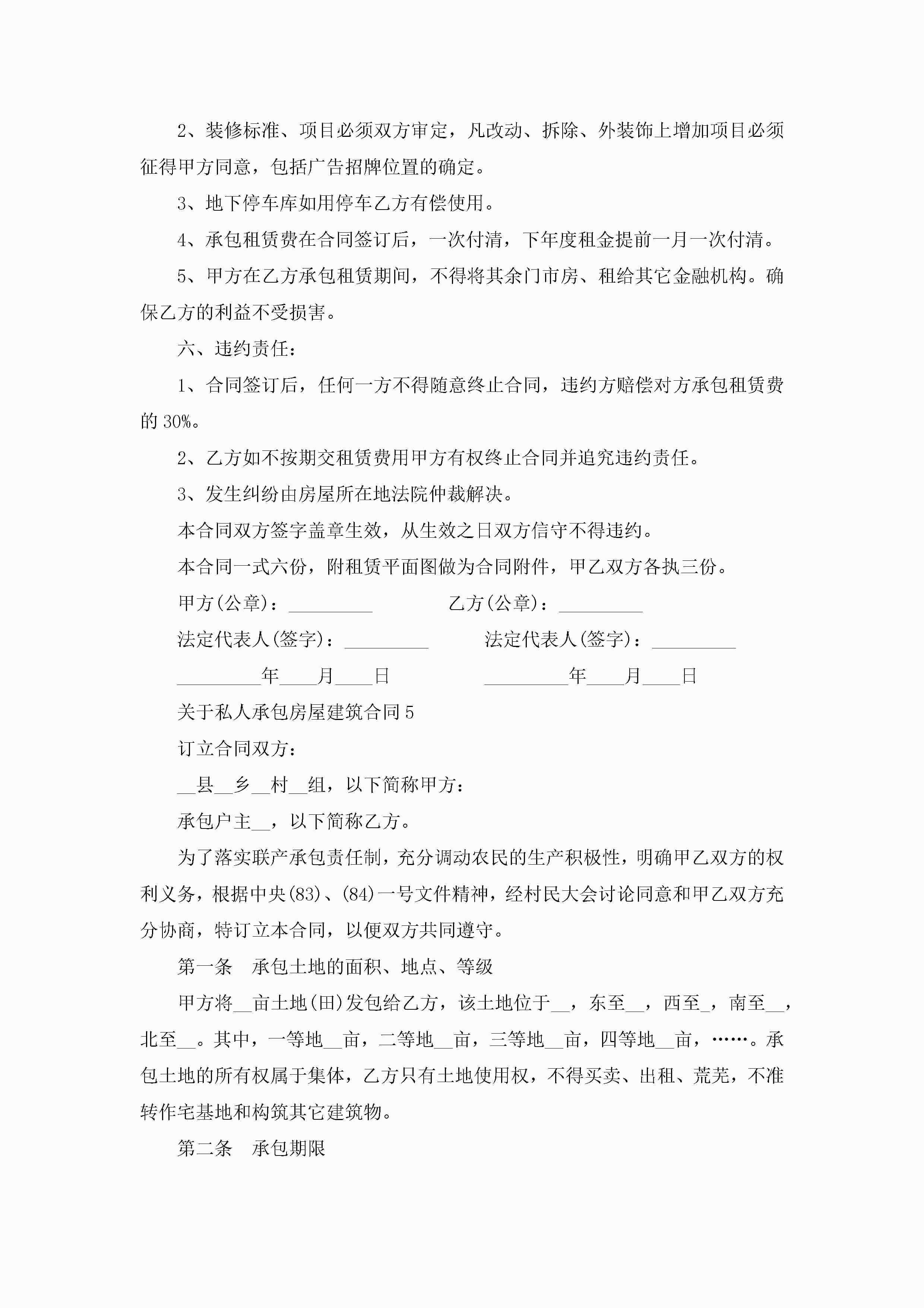 关于私人承包房屋建筑合同5篇jugei3月23日 01:35发布关注217 关于私人承包房屋建筑合同5篇此内容为付费资源,请付费后查看¥10.9 单篇文档限时特惠¥15个人会员开通企业会员开通立即下载无需登陆!可直接快捷下载单个模板付费资源© 版权声明THE ENDWord模板# 实用文档# 实用模板# 合同模板# 承包合同 如有问题,可点击最底部“联系我们”联系客服 分享QQ空间微博QQ好友海报分享复制链接收藏