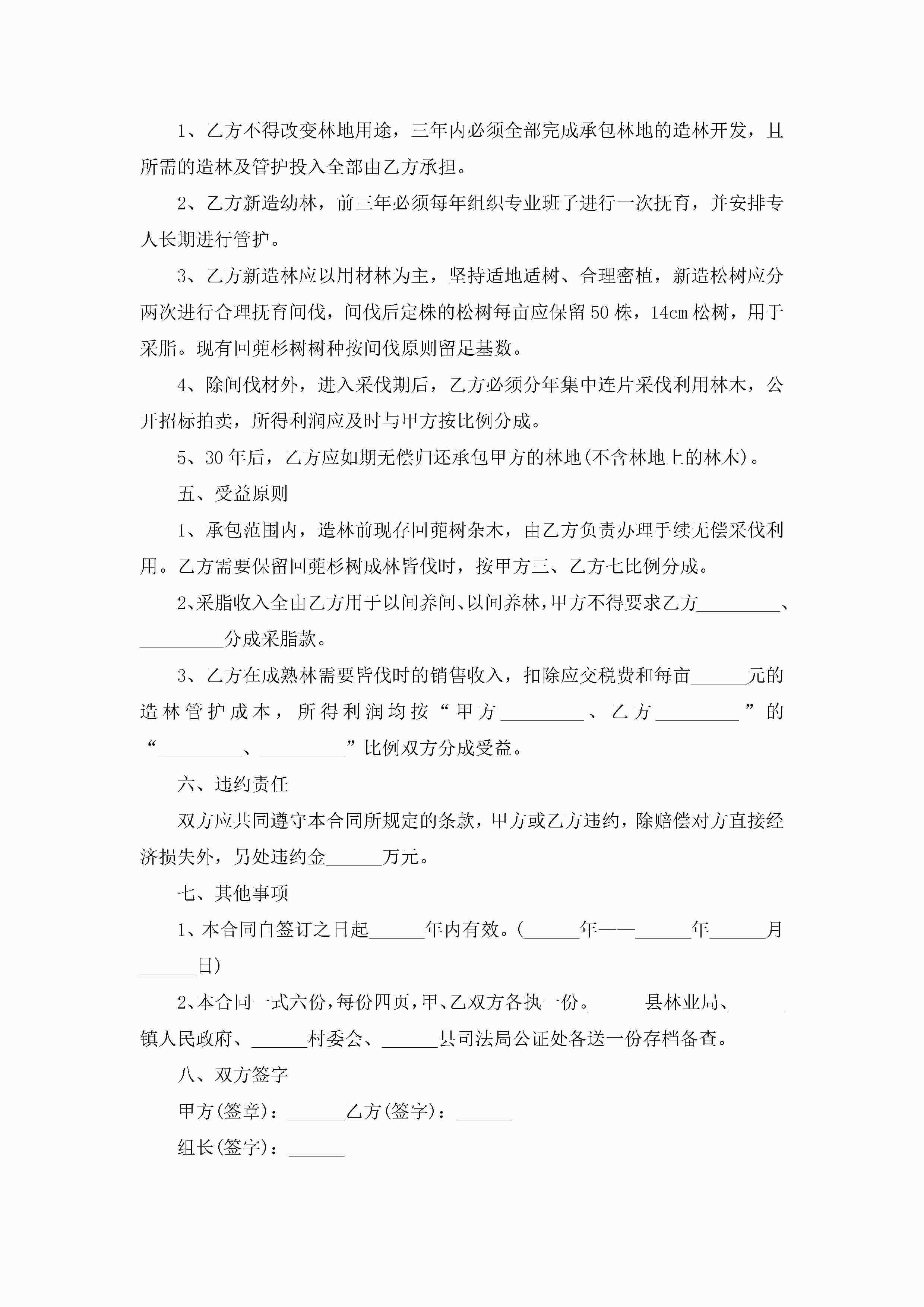 关于个人承包林地合同范本5篇jugei3月23日 01:35发布关注191 关于个人承包林地合同范本5篇此内容为付费资源,请付费后查看¥10.9 单篇文档限时特惠¥15个人会员开通企业会员开通立即下载无需登陆!可直接快捷下载单个模板付费资源© 版权声明THE ENDWord模板# 实用文档# 实用模板# 合同模板# 承包合同 如有问题,可点击最底部“联系我们”联系客服 分享QQ空间微博QQ好友海报分享复制链接收藏