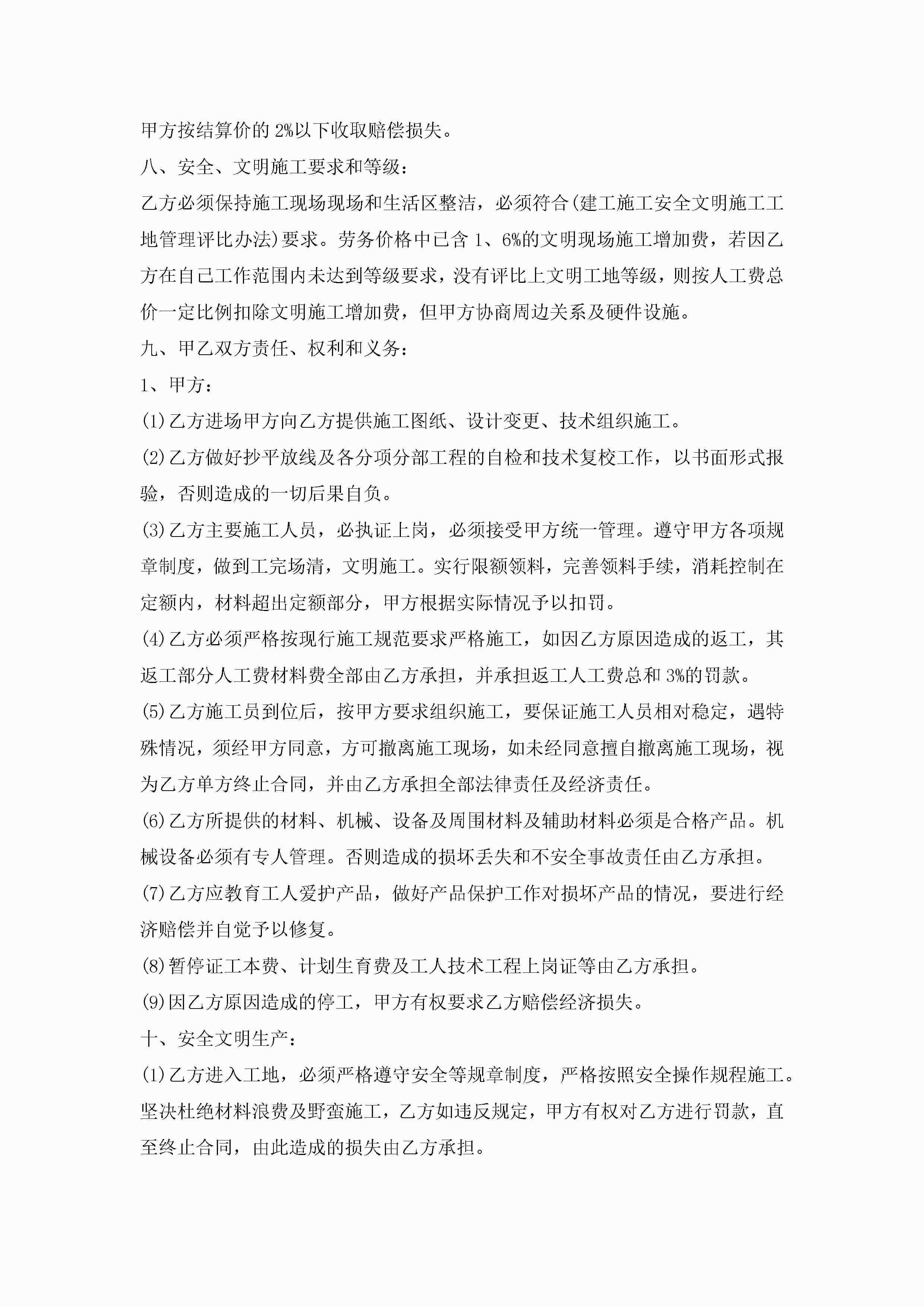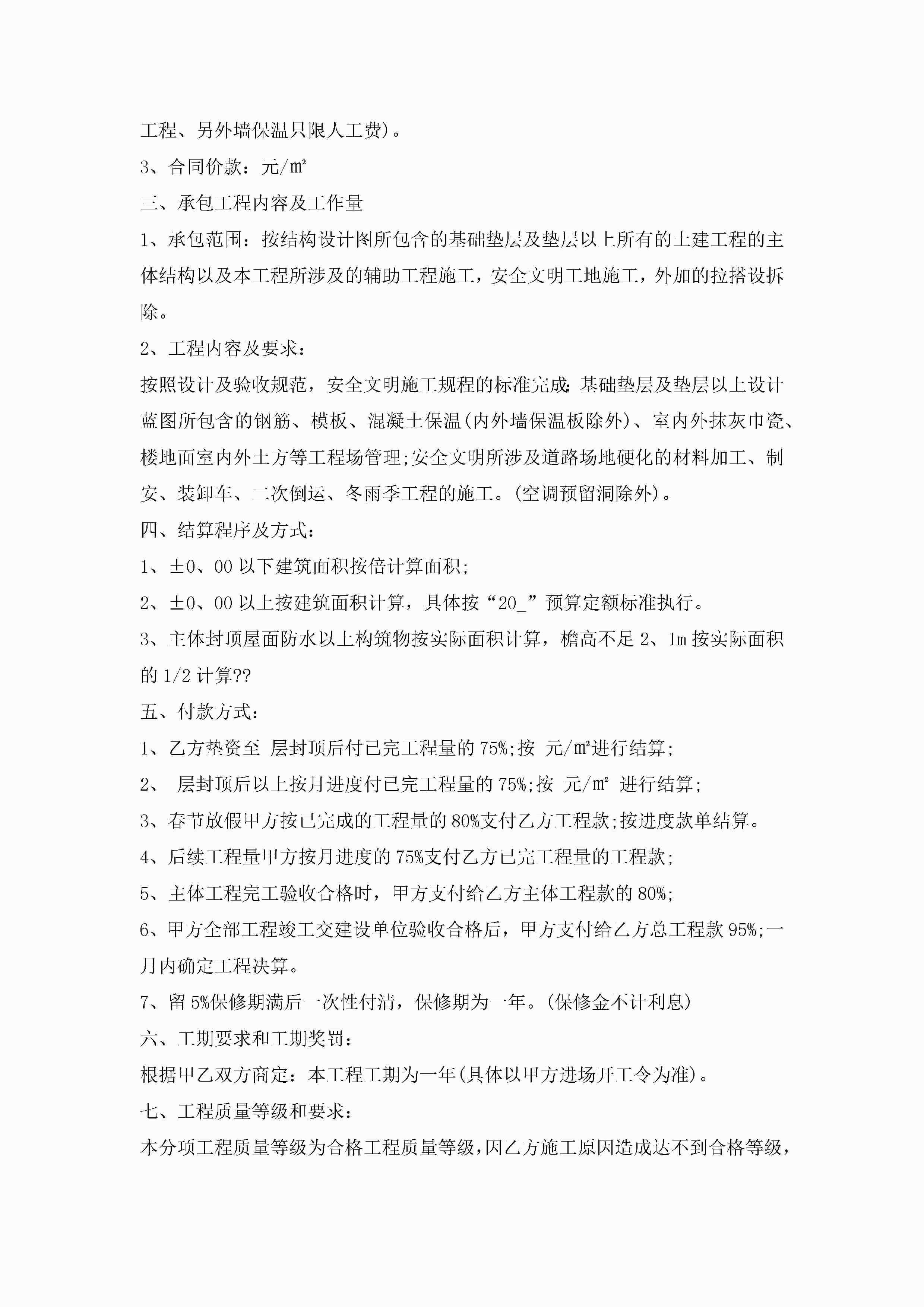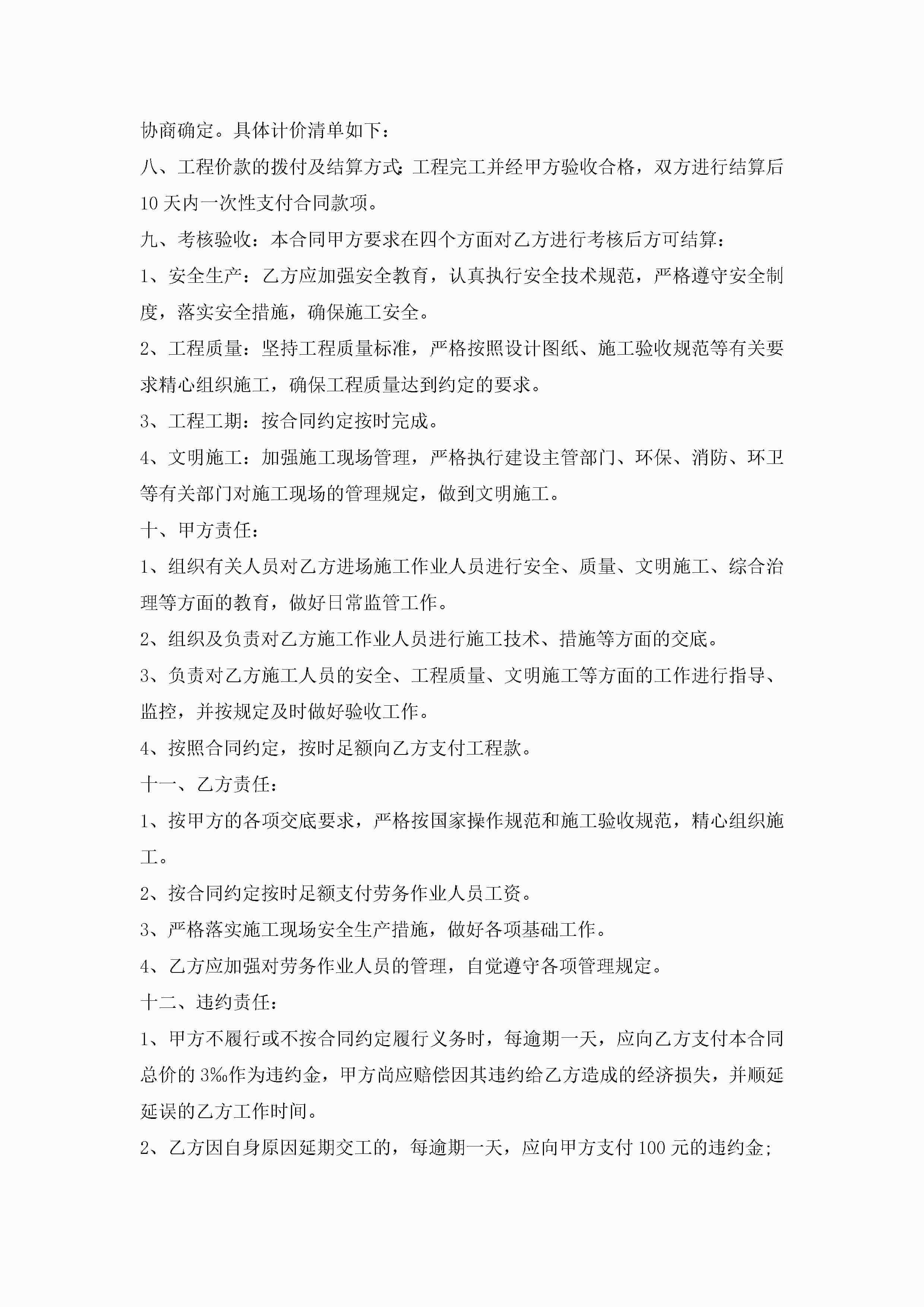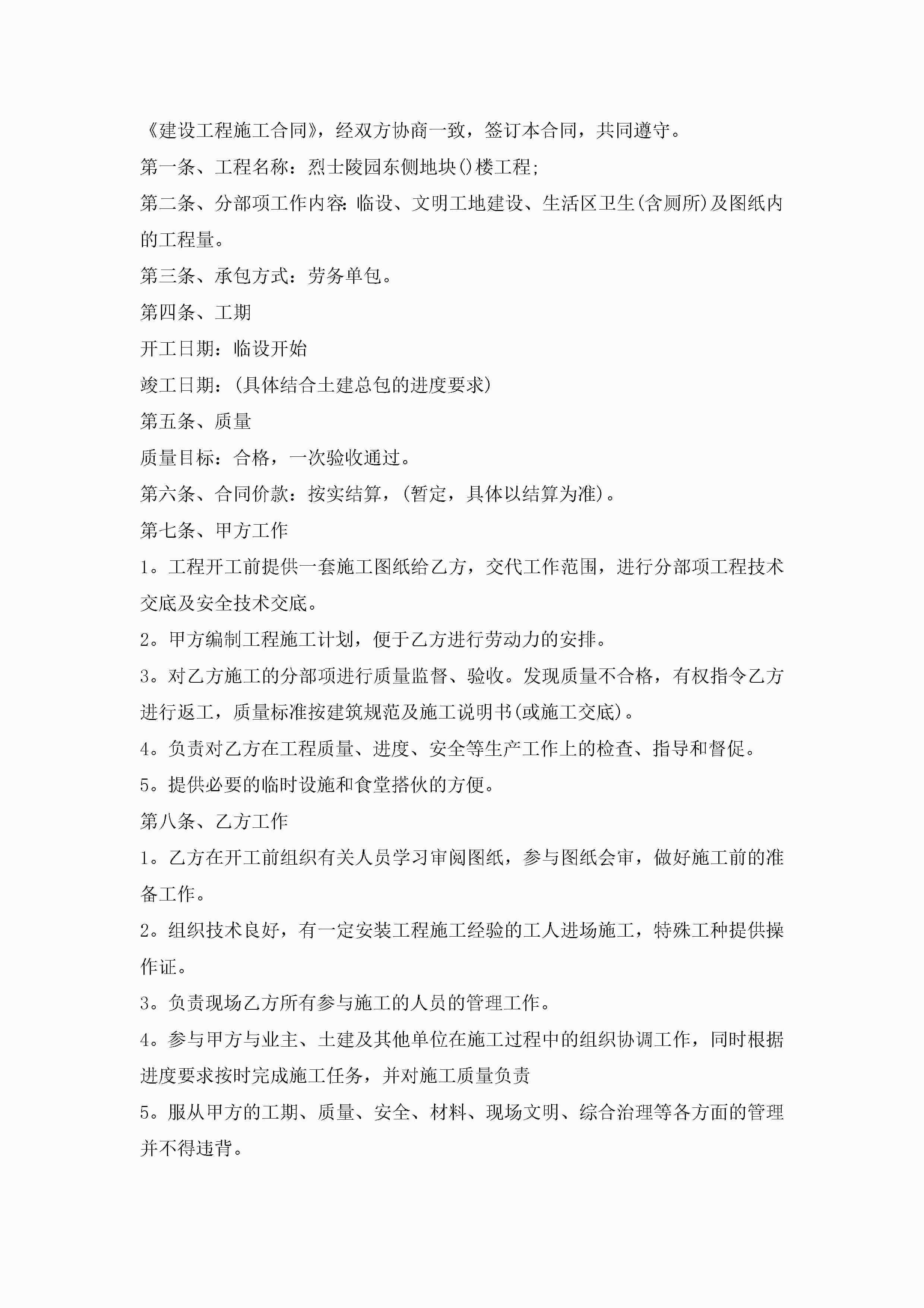 个人劳务总承包合同范文5篇jugei3月23日 01:35发布关注232 个人劳务总承包合同范文5篇此内容为付费资源,请付费后查看¥10.9 单篇文档限时特惠¥15个人会员开通企业会员开通立即下载无需登陆!可直接快捷下载单个模板付费资源© 版权声明THE ENDWord模板# 实用文档# 实用模板# 合同模板# 承包合同 如有问题,可点击最底部“联系我们”联系客服 分享QQ空间微博QQ好友海报分享复制链接收藏