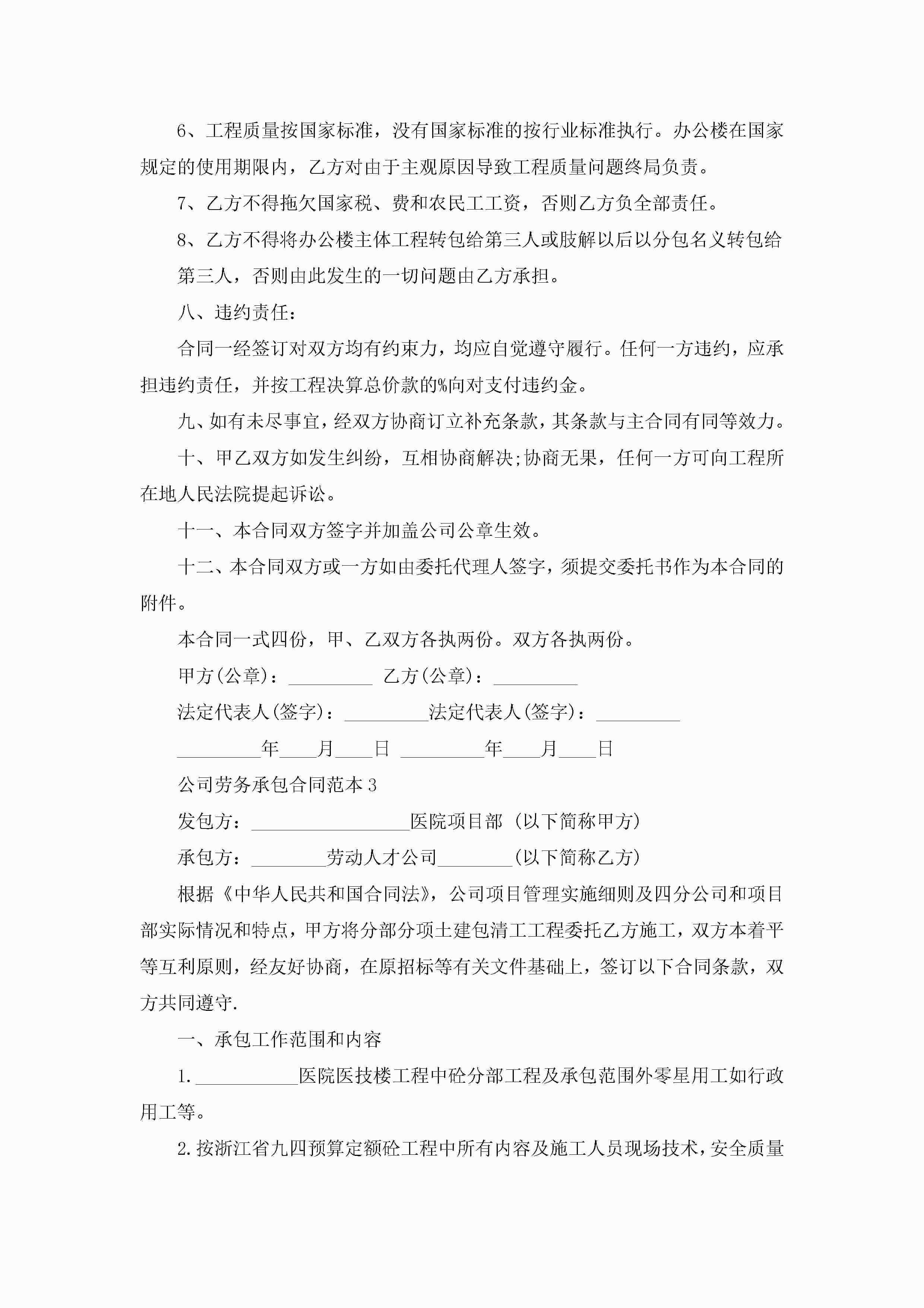 公司劳务承包合同范本5篇jugei3月23日 01:35发布关注202 公司劳务承包合同范本5篇此内容为付费资源,请付费后查看¥10.9 单篇文档限时特惠¥15个人会员开通企业会员开通立即下载无需登陆!可直接快捷下载单个模板付费资源© 版权声明THE ENDWord模板# 实用文档# 实用模板# 合同模板# 承包合同 如有问题,可点击最底部“联系我们”联系客服 分享QQ空间微博QQ好友海报分享复制链接收藏