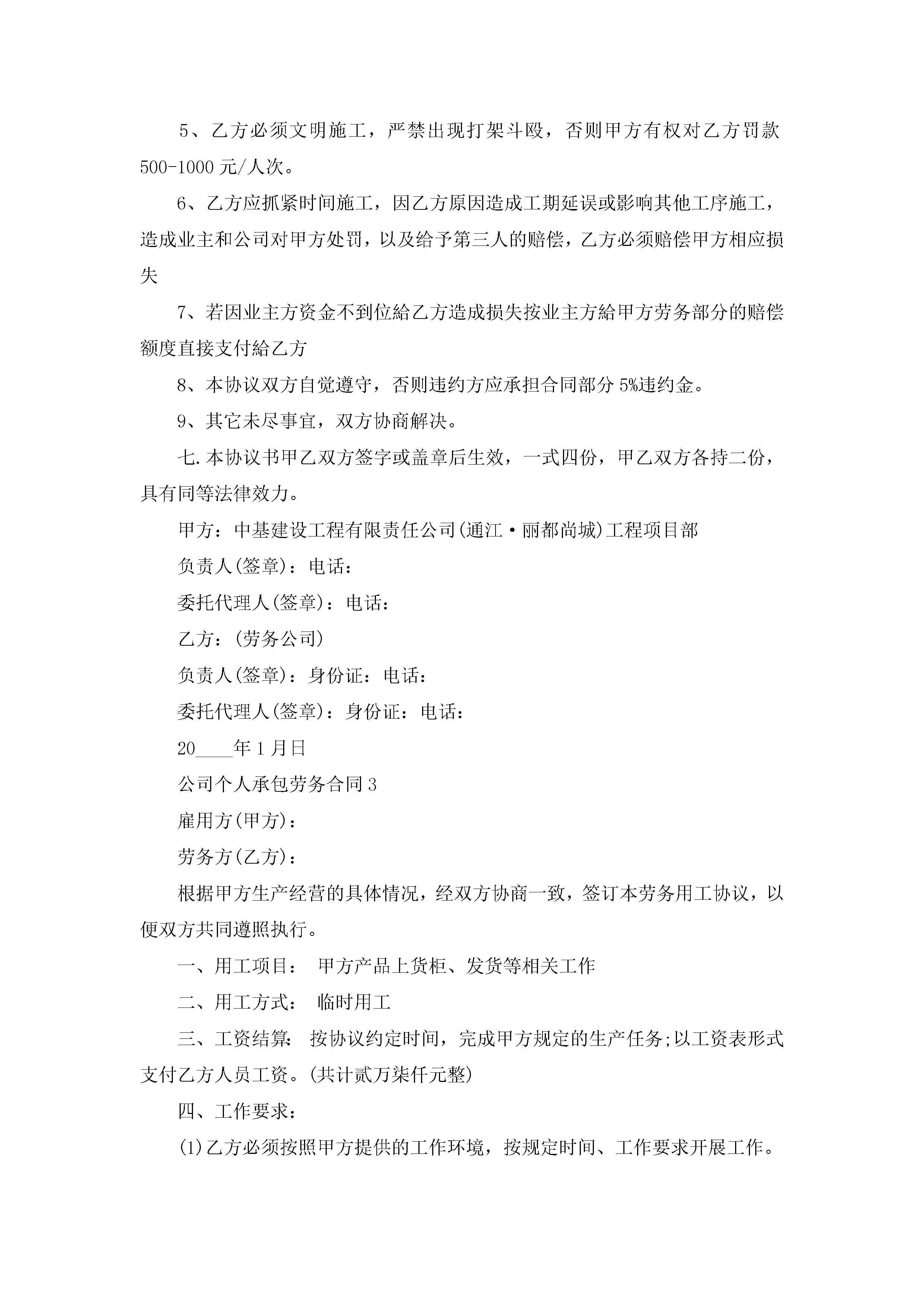 关于公司个人承包劳务合同5篇jugei3月23日 01:35发布关注198 关于公司个人承包劳务合同5篇此内容为付费资源,请付费后查看¥10.9 单篇文档限时特惠¥15个人会员开通企业会员开通立即下载无需登陆!可直接快捷下载单个模板付费资源© 版权声明THE ENDWord模板# 实用文档# 实用模板# 合同模板# 承包合同 如有问题,可点击最底部“联系我们”联系客服 分享QQ空间微博QQ好友海报分享复制链接收藏