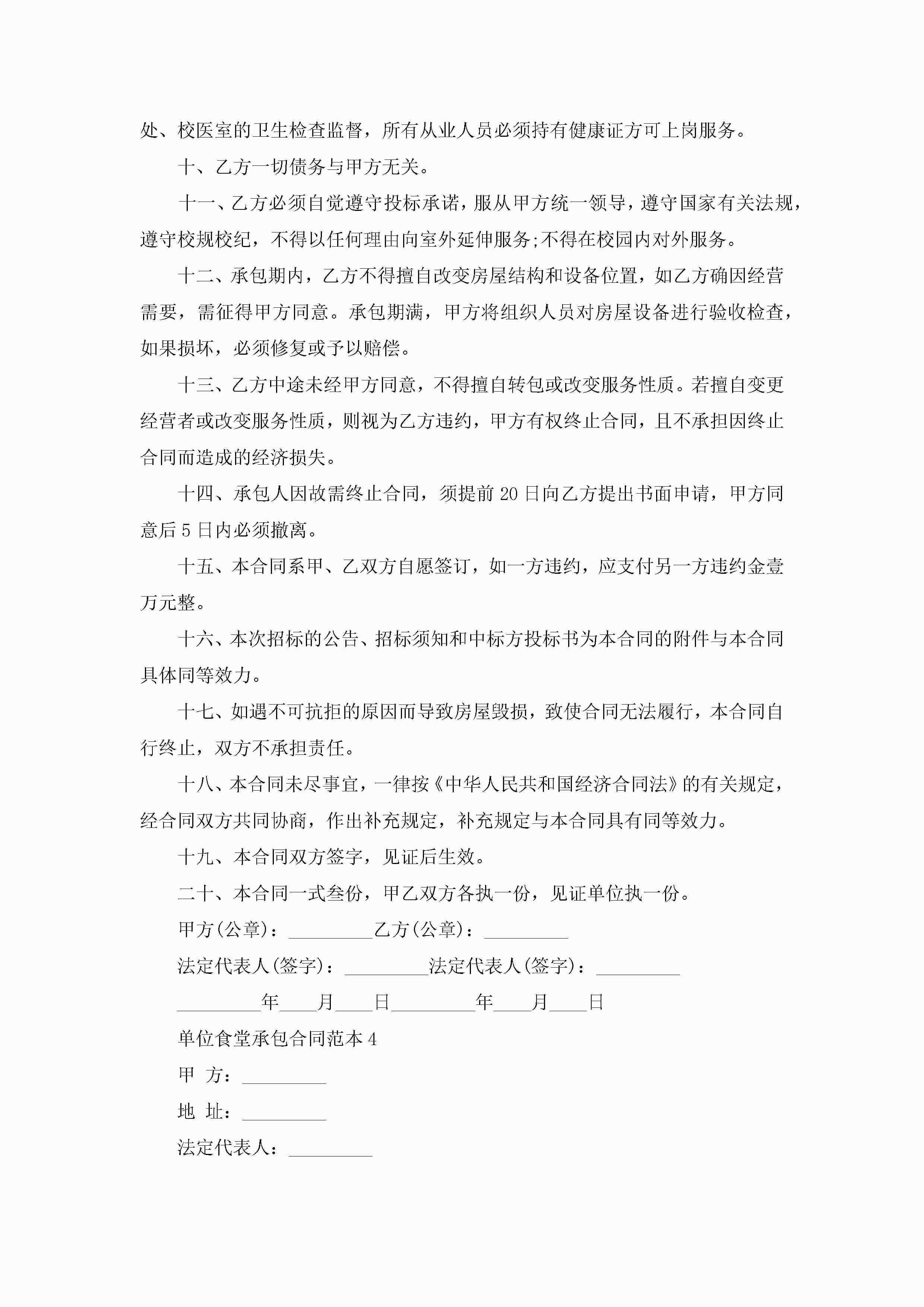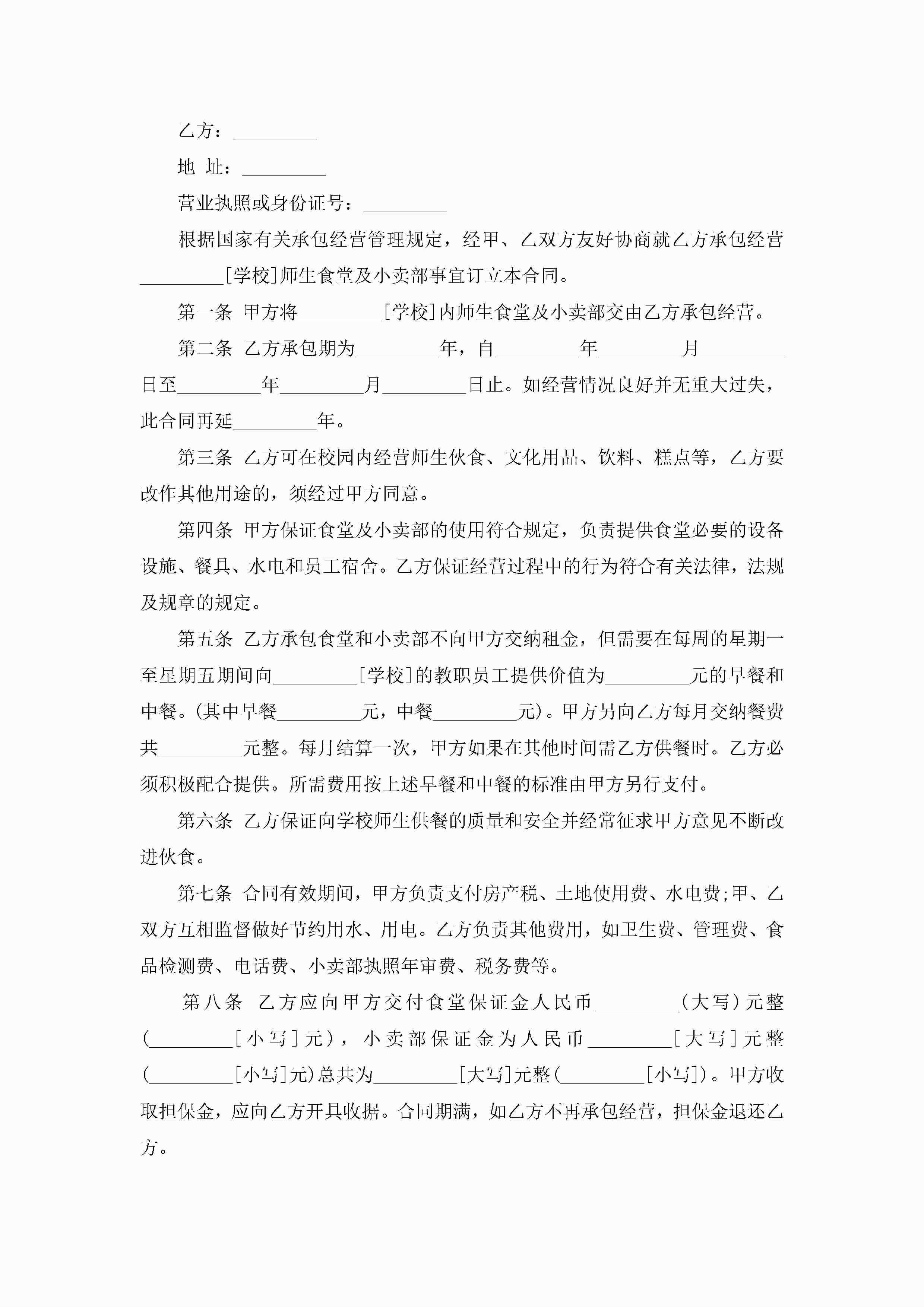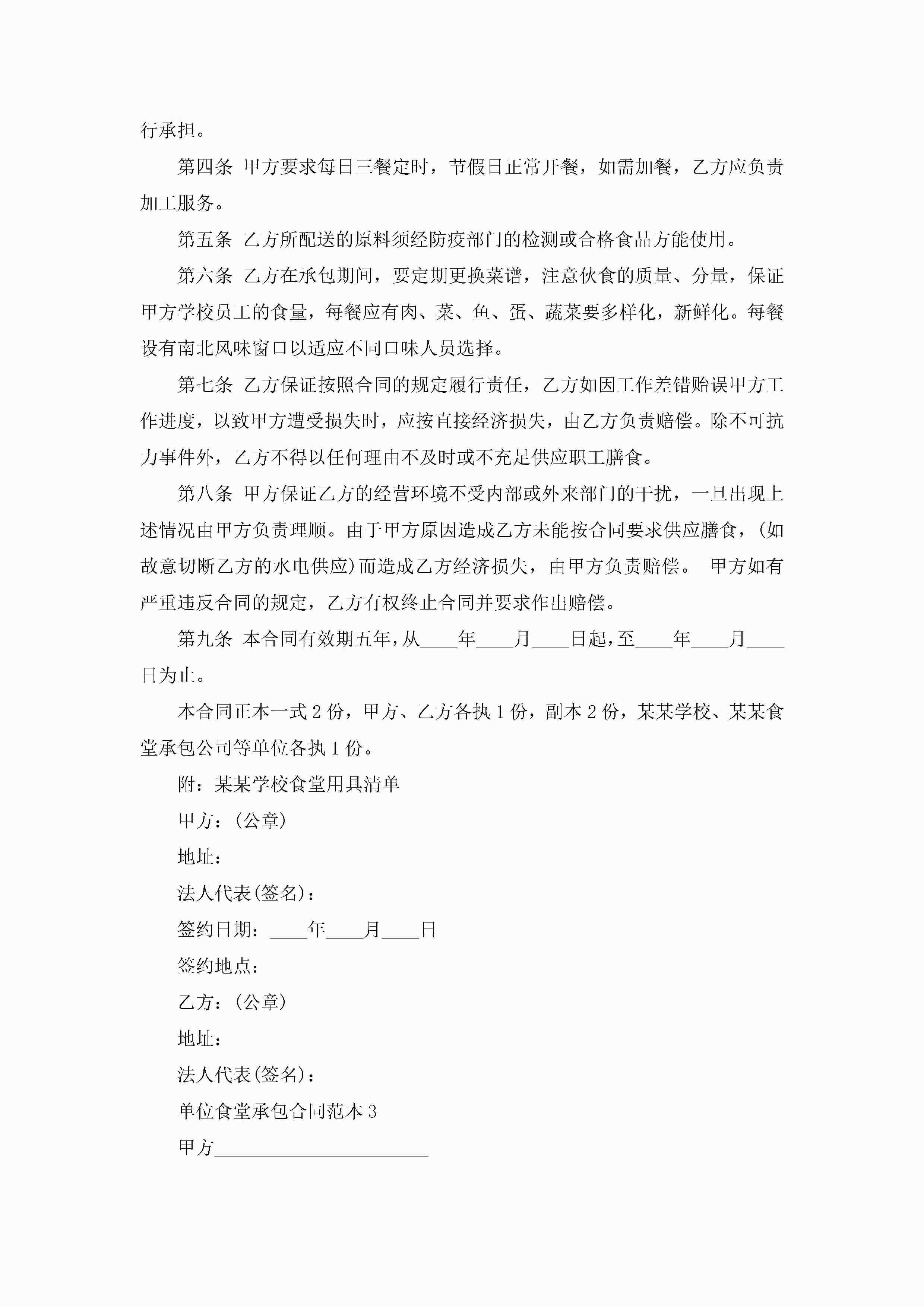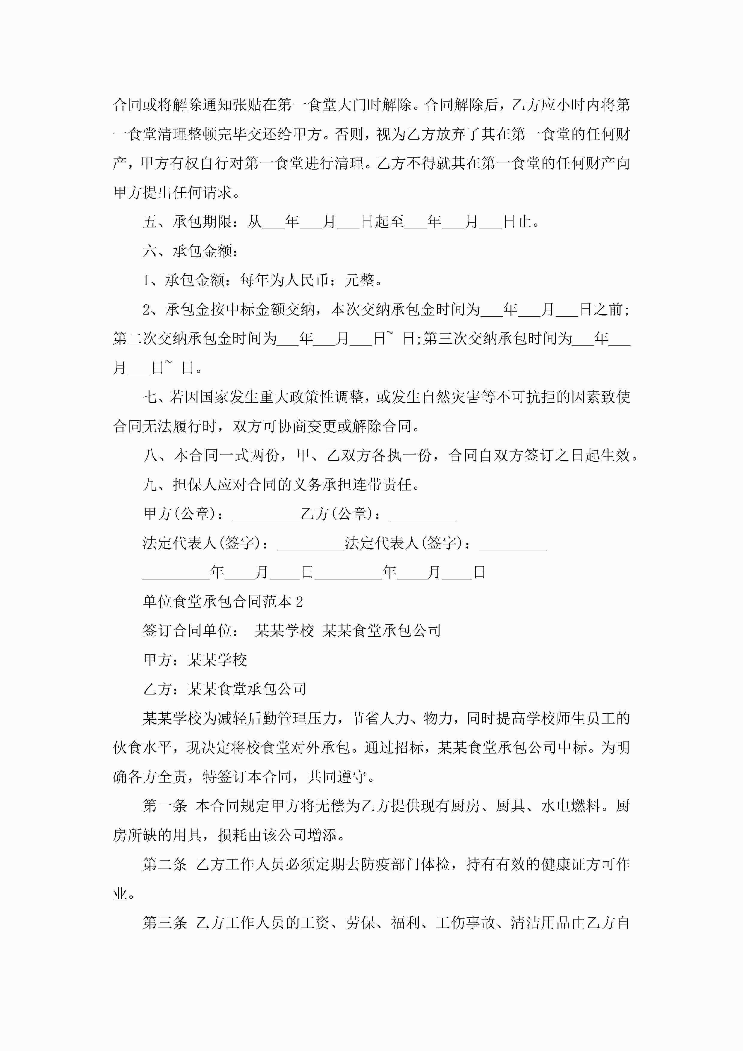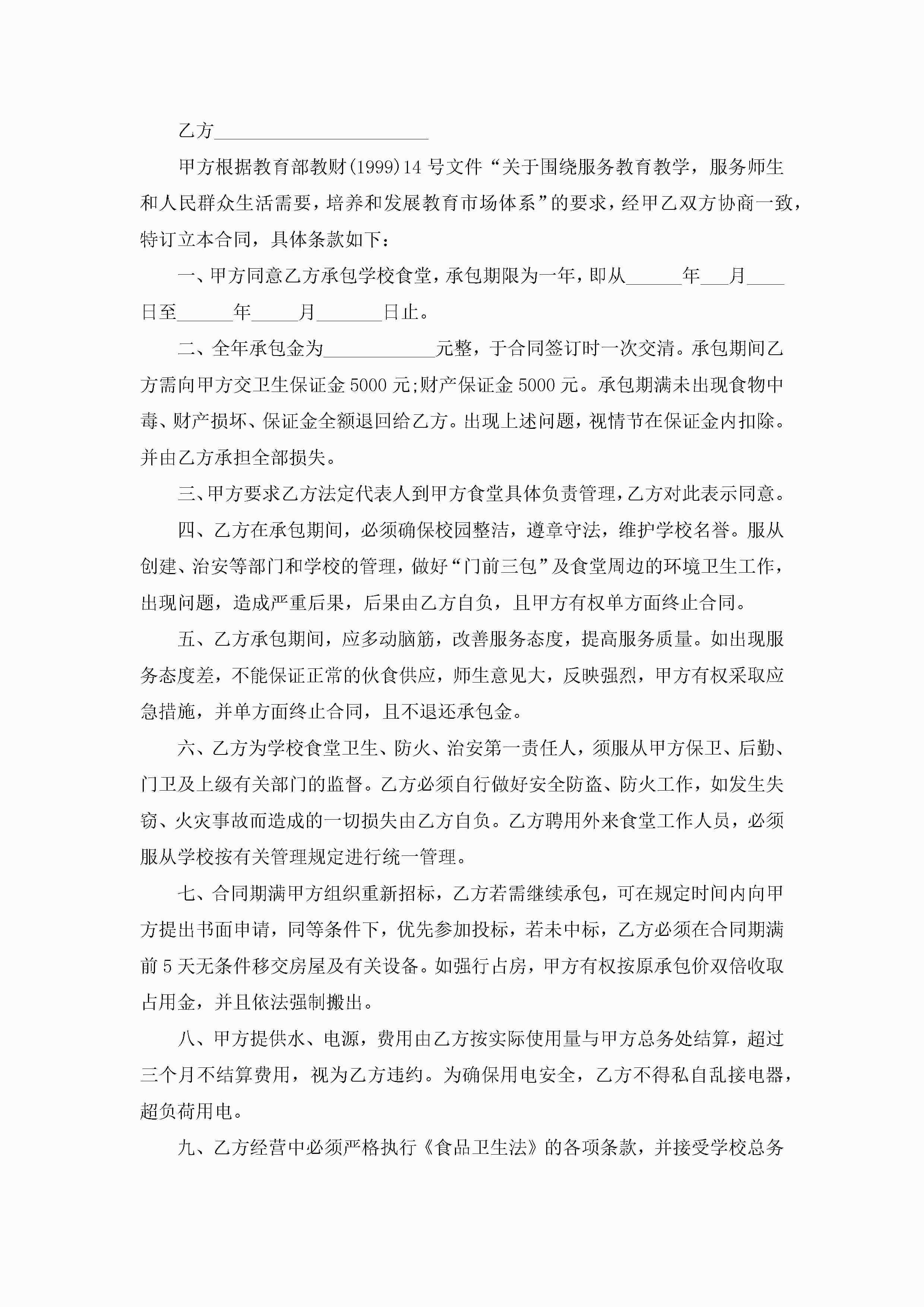 关于单位食堂承包合同范本5篇jugei3月23日 01:35发布关注192 关于单位食堂承包合同范本5篇此内容为付费资源,请付费后查看¥10.9 单篇文档限时特惠¥15个人会员开通企业会员开通立即下载无需登陆!可直接快捷下载单个模板付费资源© 版权声明THE ENDWord模板# 实用文档# 实用模板# 合同模板# 承包合同 如有问题,可点击最底部“联系我们”联系客服 分享QQ空间微博QQ好友海报分享复制链接收藏
