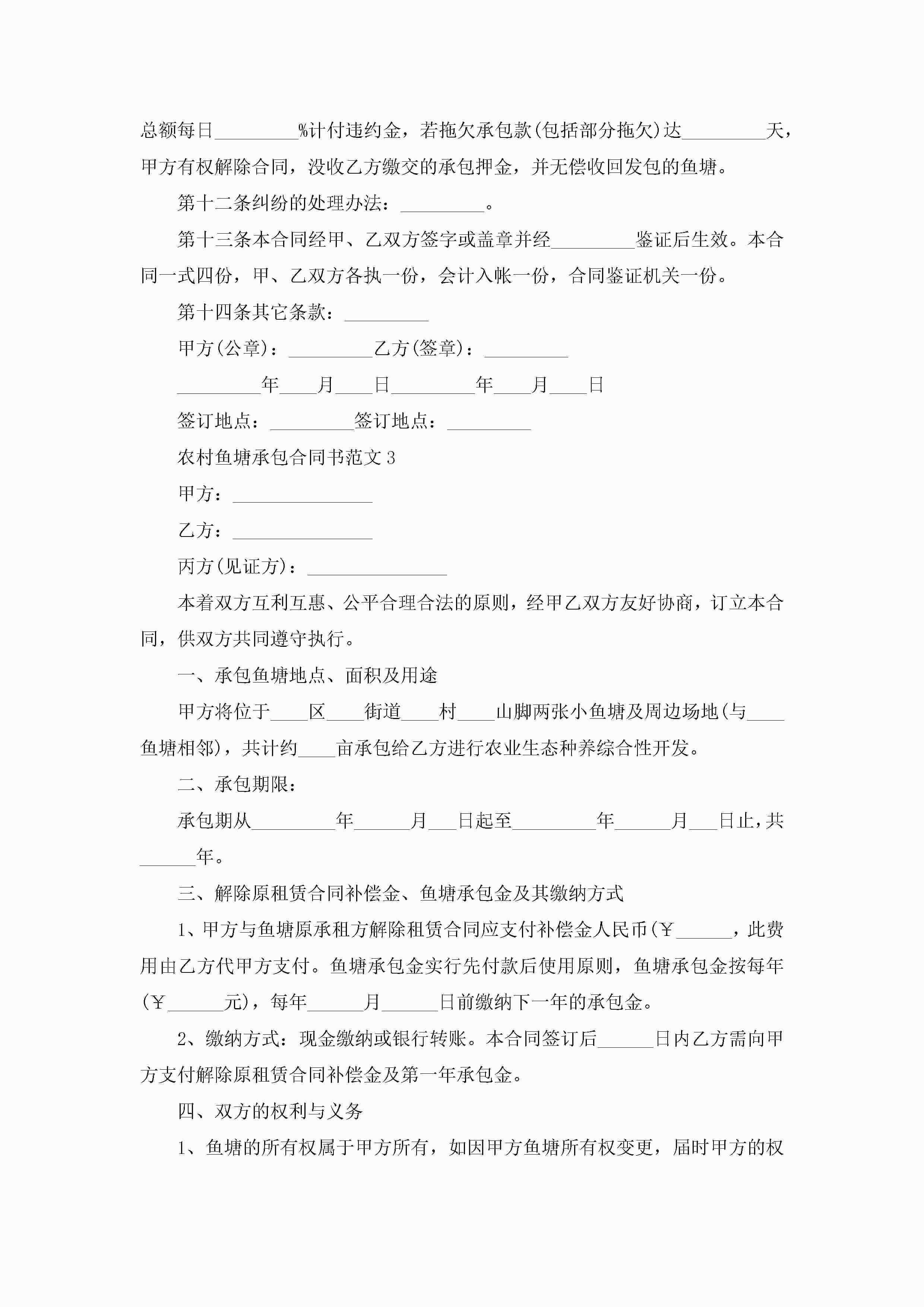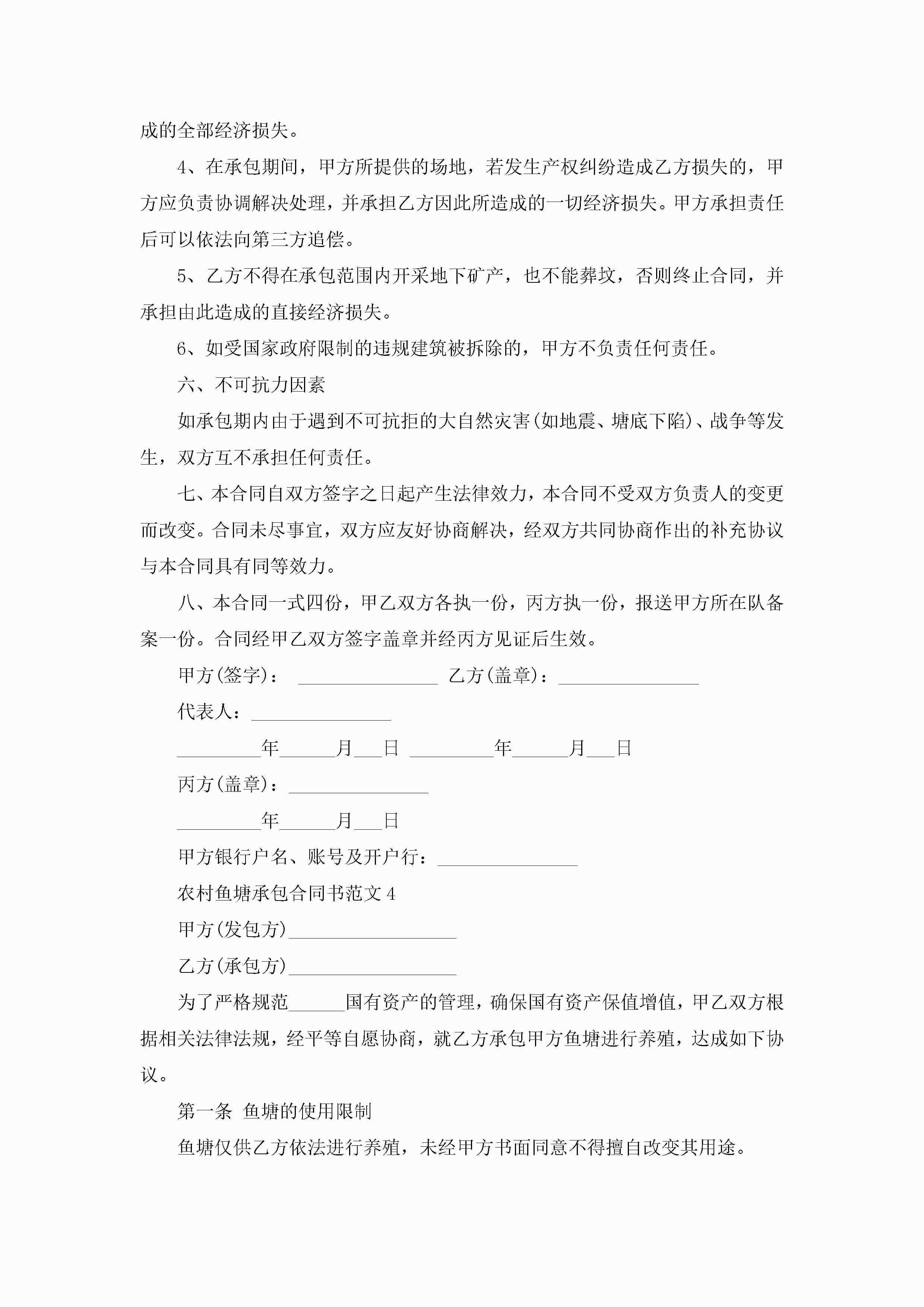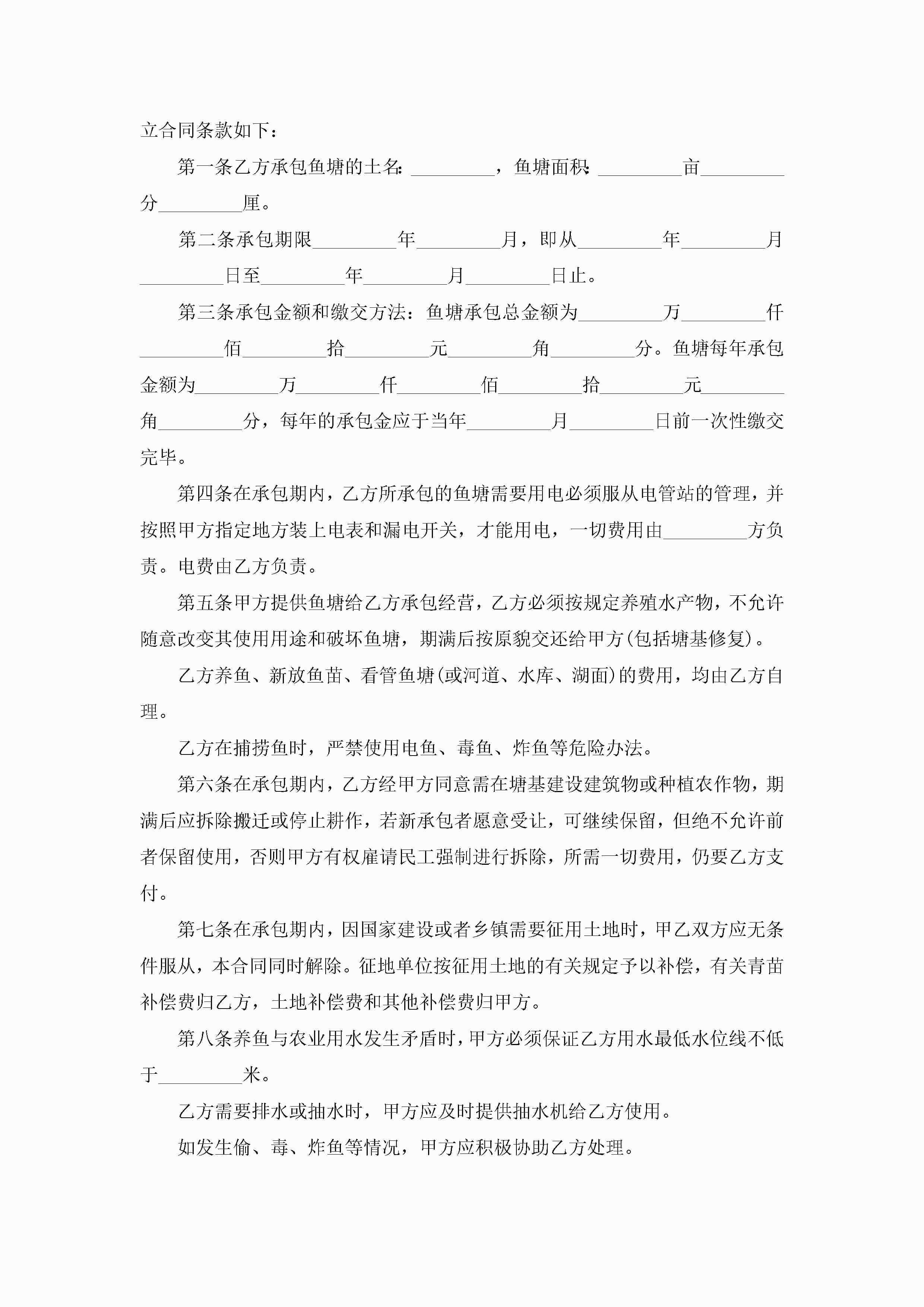 农村鱼塘承包合同书范文5篇jugei3月23日 01:35发布关注197 农村鱼塘承包合同书范文5篇此内容为付费资源,请付费后查看¥10.9 单篇文档限时特惠¥15个人会员开通企业会员开通立即下载无需登陆!可直接快捷下载单个模板付费资源© 版权声明THE ENDWord模板# 实用文档# 实用模板# 合同模板# 承包合同 如有问题,可点击最底部“联系我们”联系客服 分享QQ空间微博QQ好友海报分享复制链接收藏