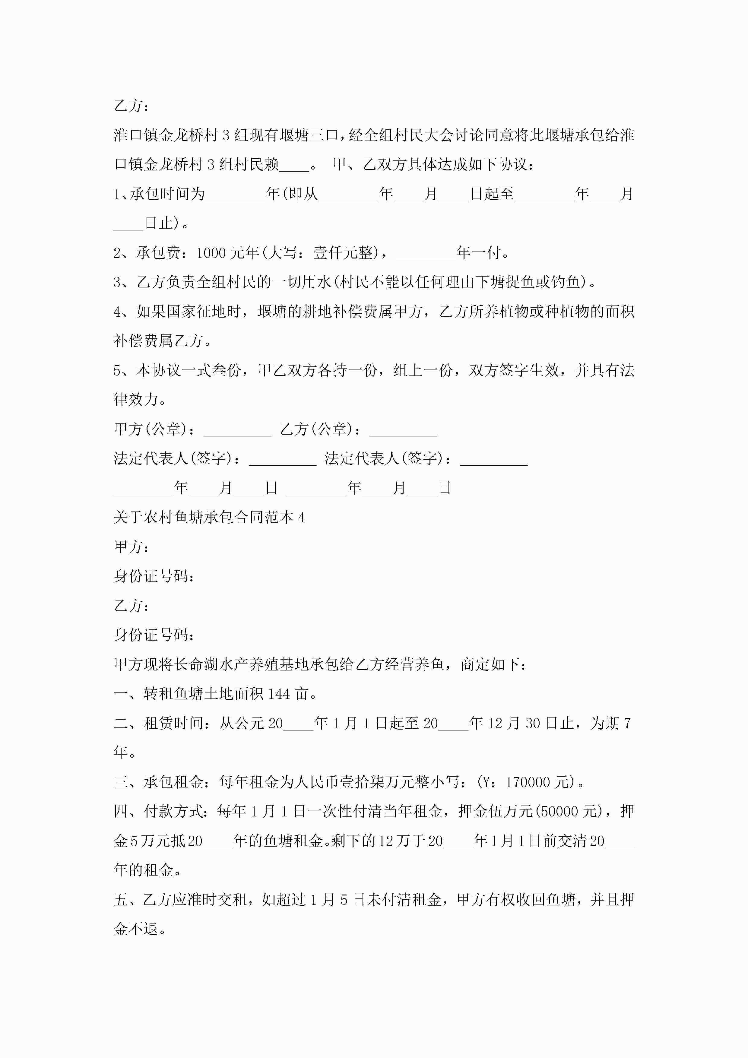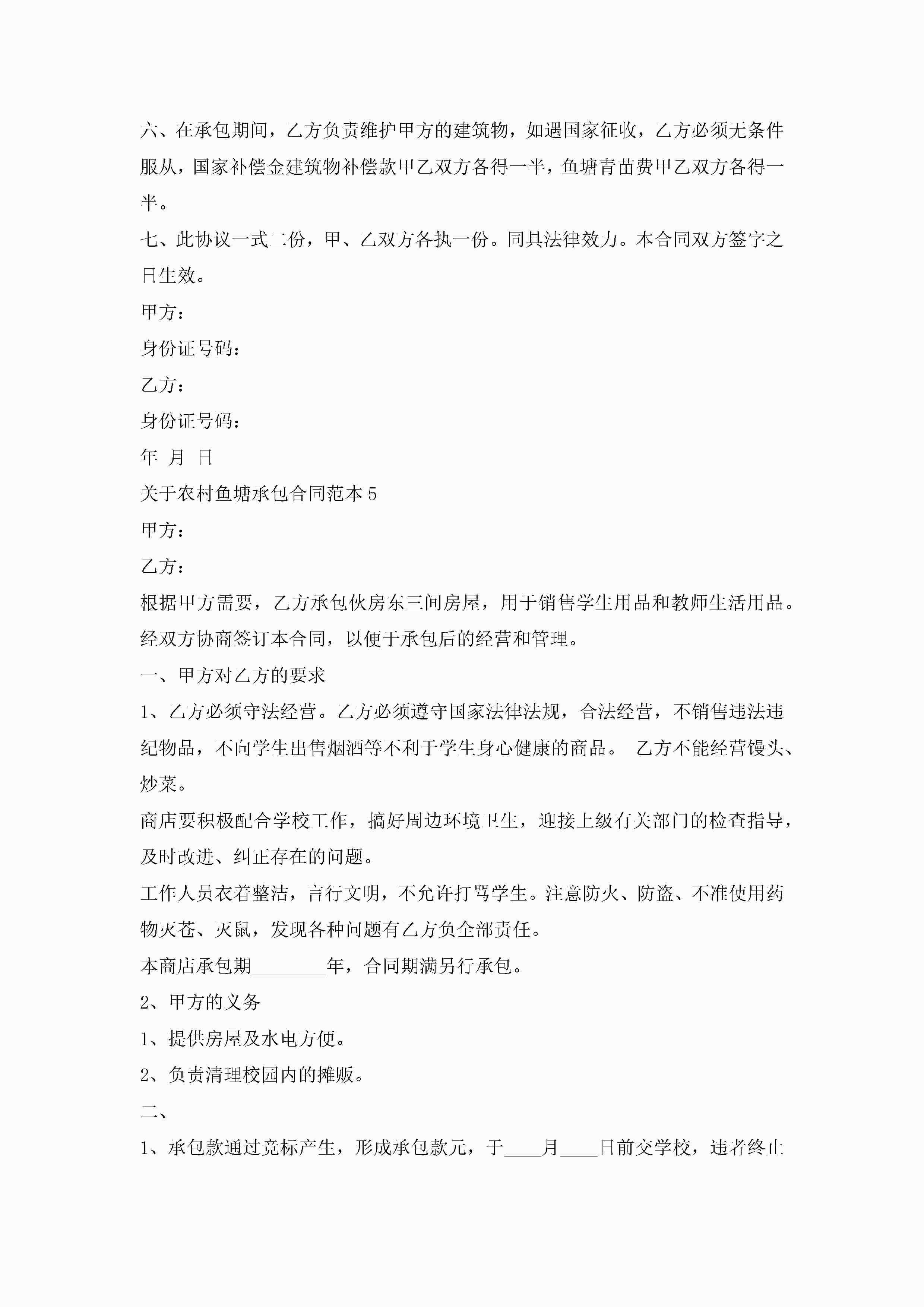 关于农村鱼塘承包合同范本5篇jugei3月23日 01:35发布关注243 关于农村鱼塘承包合同范本5篇此内容为付费资源,请付费后查看¥10.9 单篇文档限时特惠¥15个人会员开通企业会员开通立即下载无需登陆!可直接快捷下载单个模板付费资源© 版权声明THE ENDWord模板# 实用文档# 实用模板# 合同模板# 承包合同 如有问题,可点击最底部“联系我们”联系客服 分享QQ空间微博QQ好友海报分享复制链接收藏