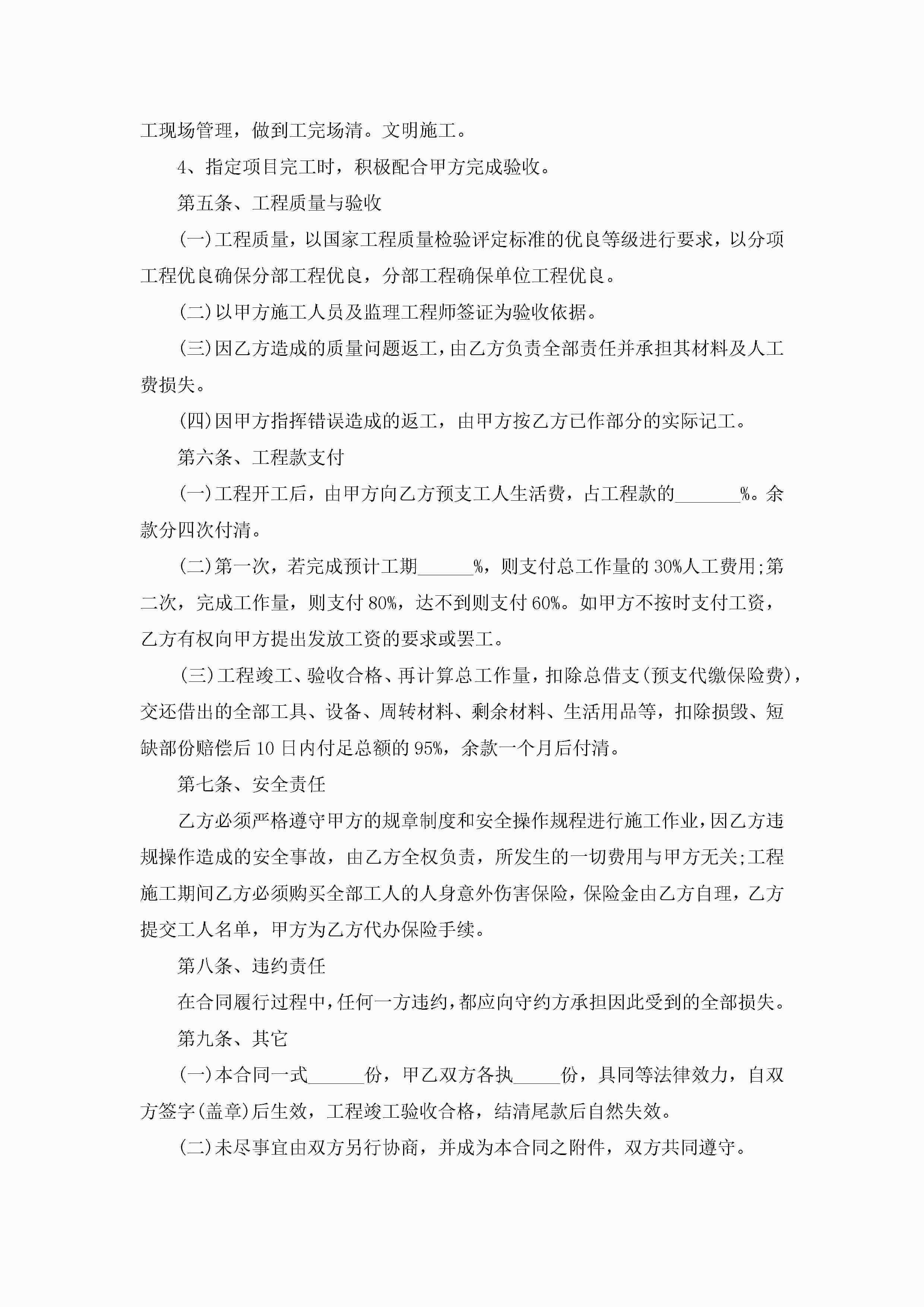 关于单位建筑工程承包合同5篇jugei3月23日 01:35发布关注327 关于单位建筑工程承包合同5篇此内容为付费资源,请付费后查看¥10.9 单篇文档限时特惠¥15个人会员开通企业会员开通立即下载无需登陆!可直接快捷下载单个模板付费资源© 版权声明THE ENDWord模板# 实用文档# 实用模板# 合同模板# 承包合同 如有问题,可点击最底部“联系我们”联系客服 分享QQ空间微博QQ好友海报分享复制链接收藏