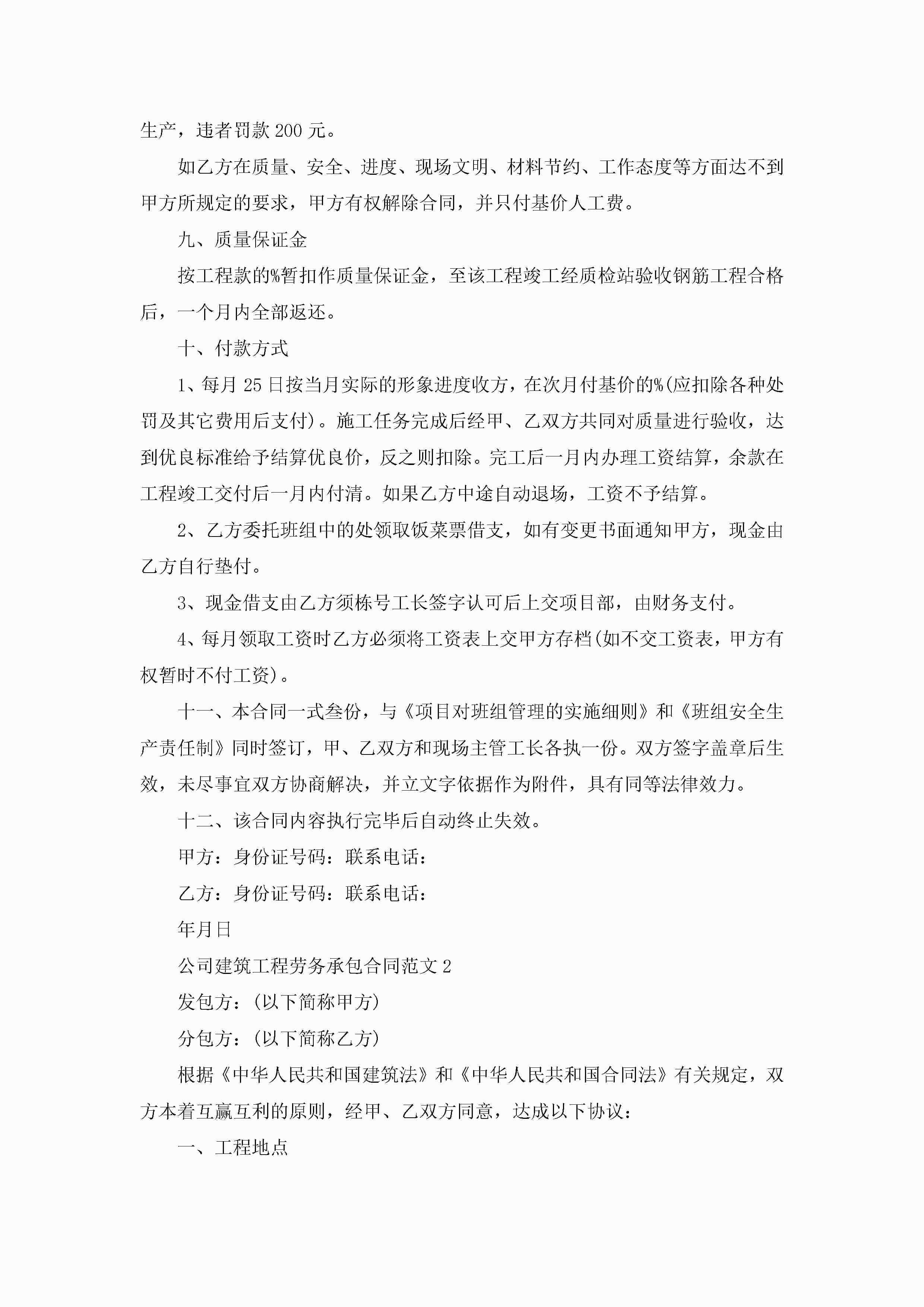 关于公司建筑工程劳务承包合同范文5篇jugei3月23日 01:35发布关注359 关于公司建筑工程劳务承包合同范文5篇此内容为付费资源,请付费后查看¥10.9 单篇文档限时特惠¥15个人会员开通企业会员开通立即下载无需登陆!可直接快捷下载单个模板付费资源© 版权声明THE ENDWord模板# 实用文档# 实用模板# 合同模板# 承包合同 如有问题,可点击最底部“联系我们”联系客服 分享QQ空间微博QQ好友海报分享复制链接收藏