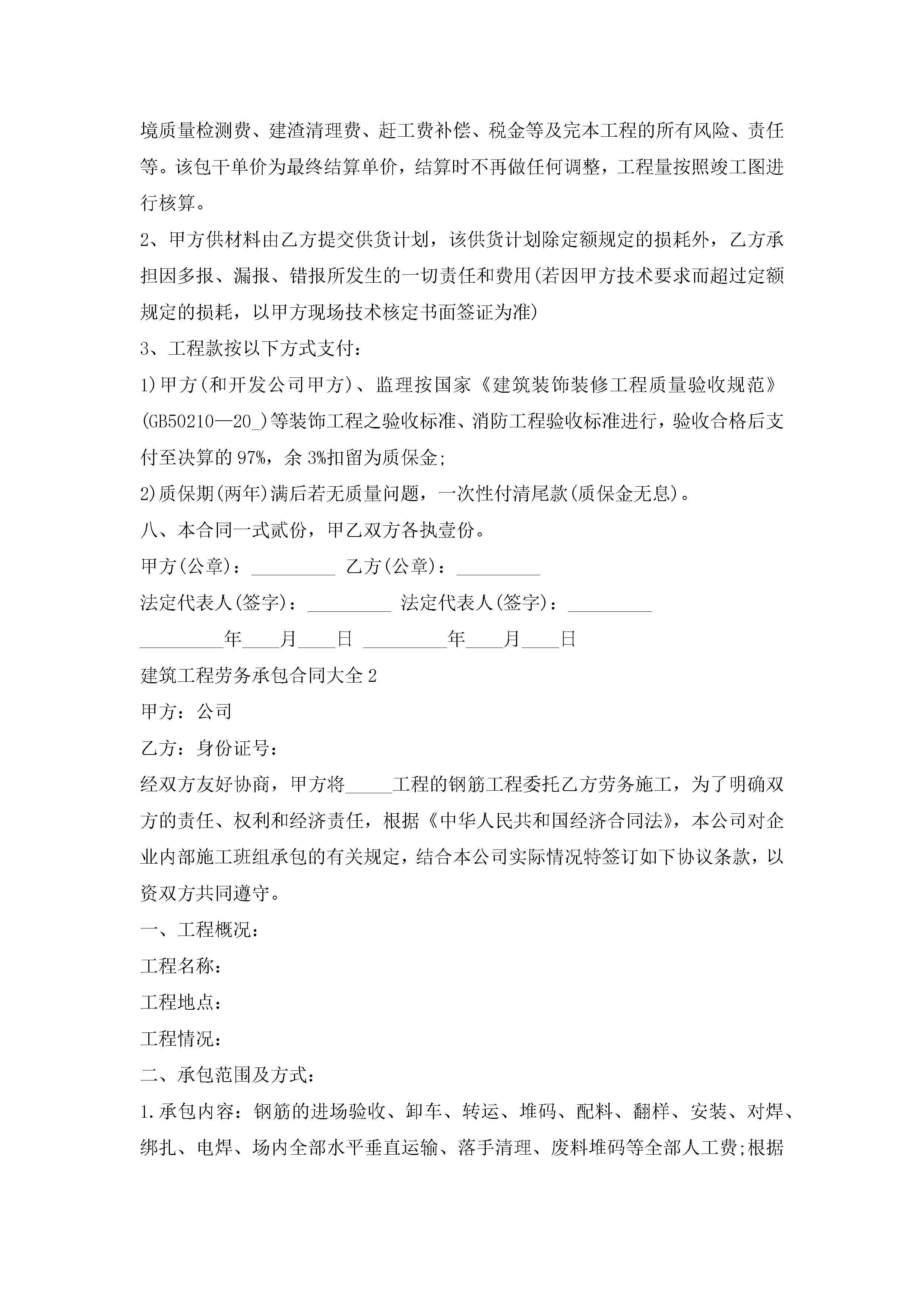 建筑工程劳务承包合同大全5篇jugei3月23日 01:35发布关注227 建筑工程劳务承包合同大全5篇此内容为付费资源,请付费后查看¥10.9 单篇文档限时特惠¥15个人会员开通企业会员开通立即下载无需登陆!可直接快捷下载单个模板付费资源© 版权声明THE ENDWord模板# 实用文档# 实用模板# 合同模板# 承包合同 如有问题,可点击最底部“联系我们”联系客服 分享QQ空间微博QQ好友海报分享复制链接收藏