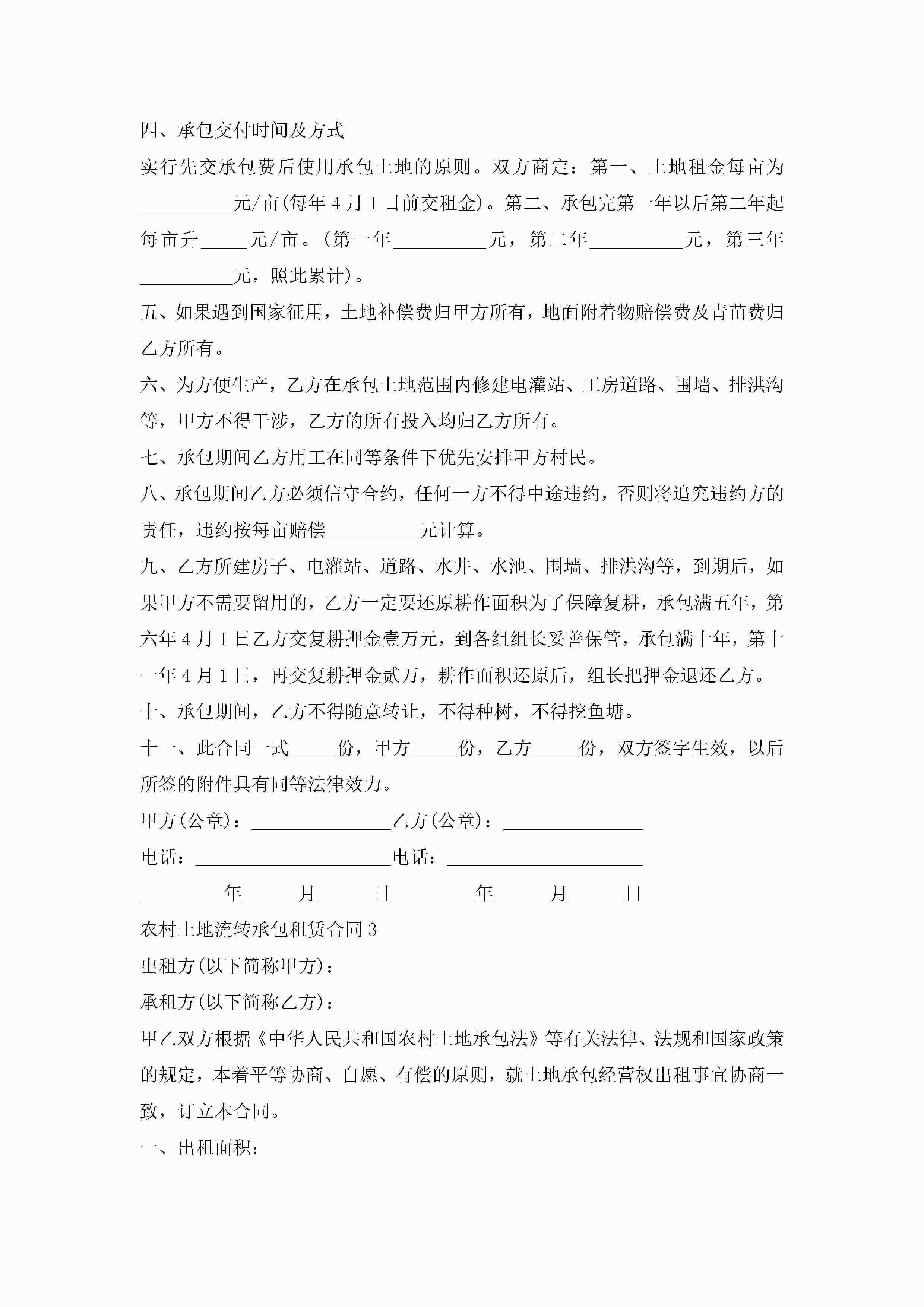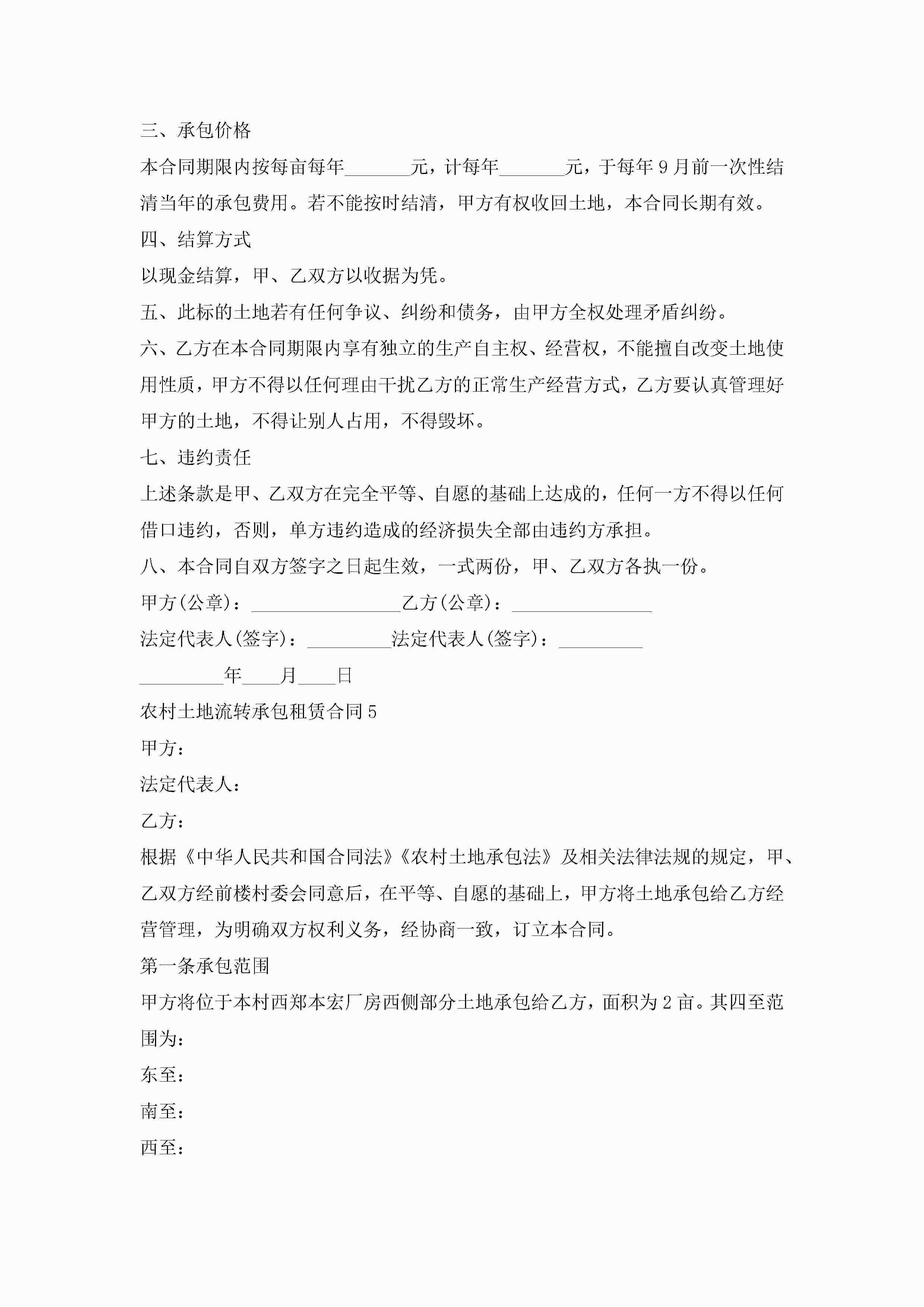 关于农村土地流转承包租赁合同5篇jugei3月23日 01:35发布关注223 关于农村土地流转承包租赁合同5篇此内容为付费资源,请付费后查看¥10.9 单篇文档限时特惠¥15个人会员开通企业会员开通立即下载无需登陆!可直接快捷下载单个模板付费资源© 版权声明THE ENDWord模板# 实用文档# 实用模板# 合同模板# 承包合同 如有问题,可点击最底部“联系我们”联系客服 分享QQ空间微博QQ好友海报分享复制链接收藏