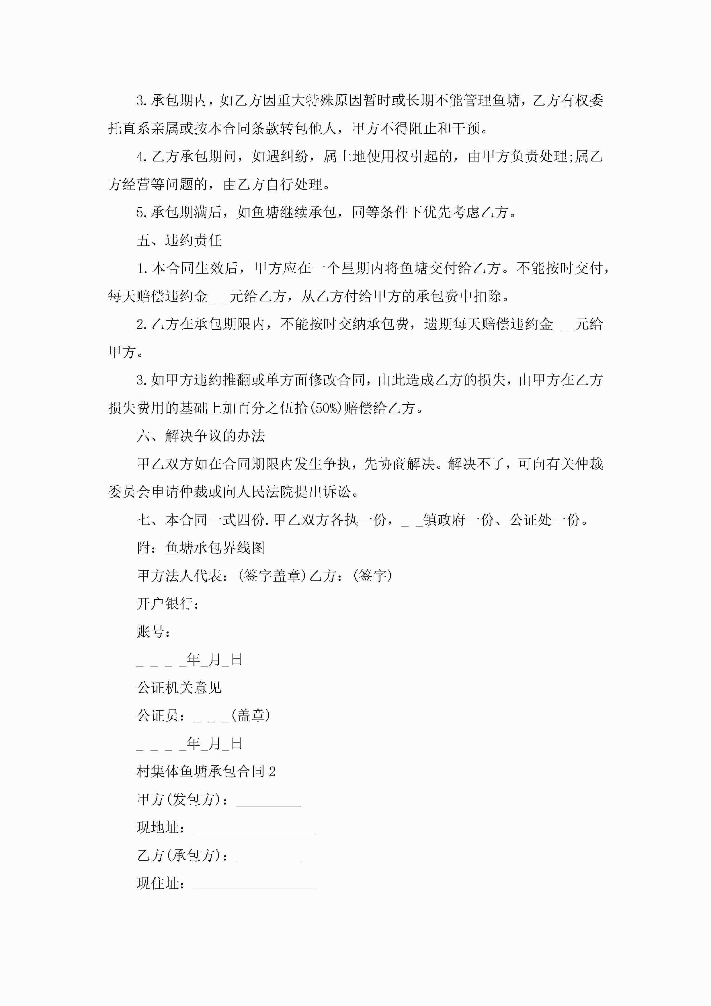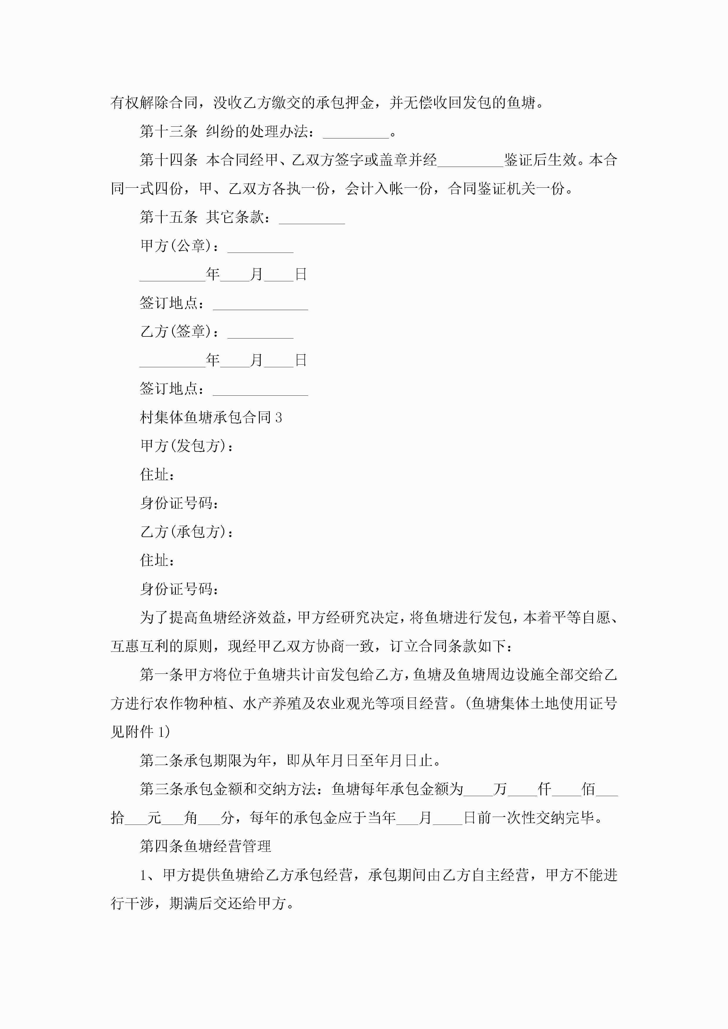 关于村集体鱼塘承包合同5篇jugei3月23日 01:35发布关注189 关于村集体鱼塘承包合同5篇此内容为付费资源,请付费后查看¥10.9 单篇文档限时特惠¥15个人会员开通企业会员开通立即下载无需登陆!可直接快捷下载单个模板付费资源© 版权声明THE ENDWord模板# 实用文档# 实用模板# 合同模板# 承包合同 如有问题,可点击最底部“联系我们”联系客服 分享QQ空间微博QQ好友海报分享复制链接收藏