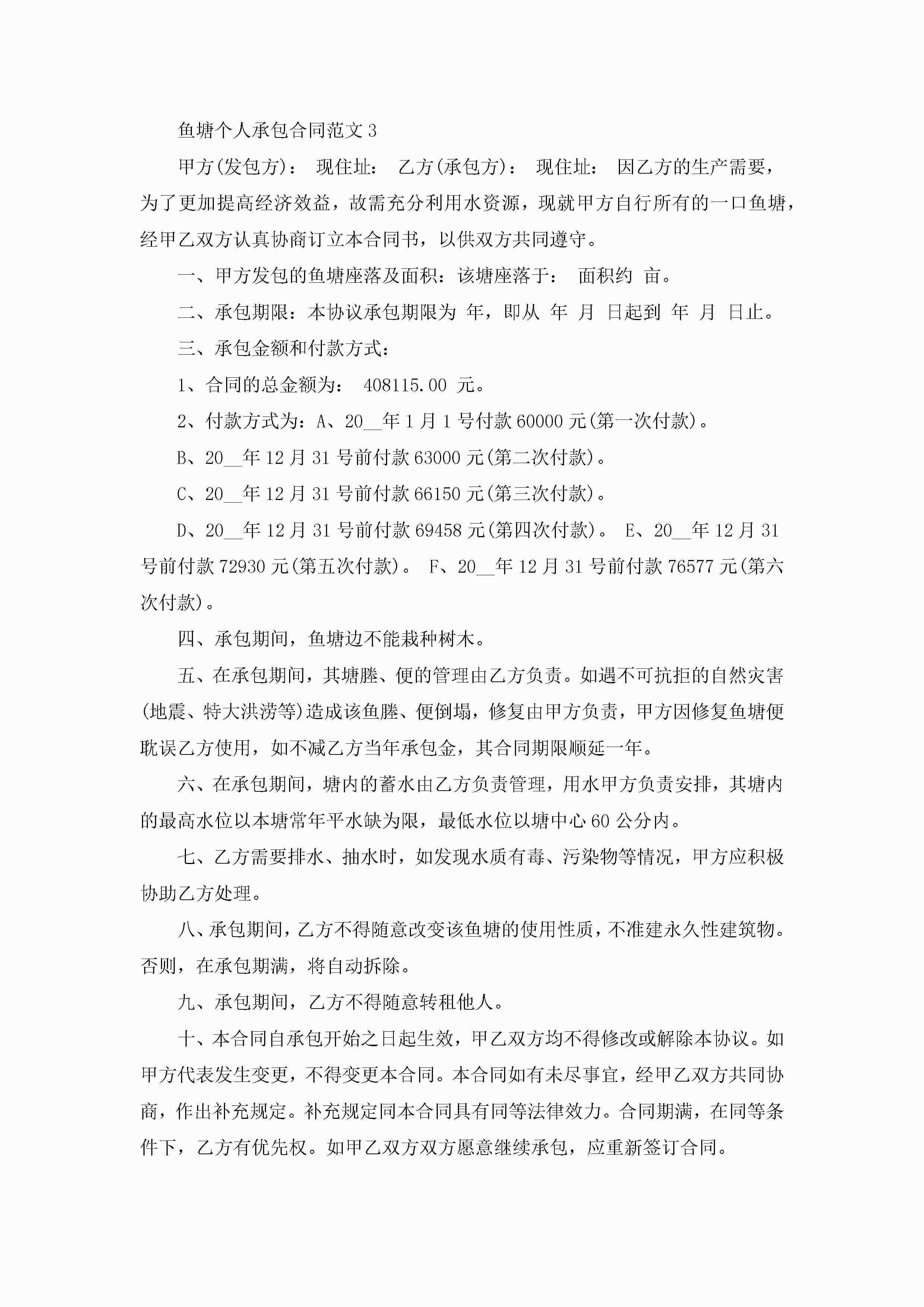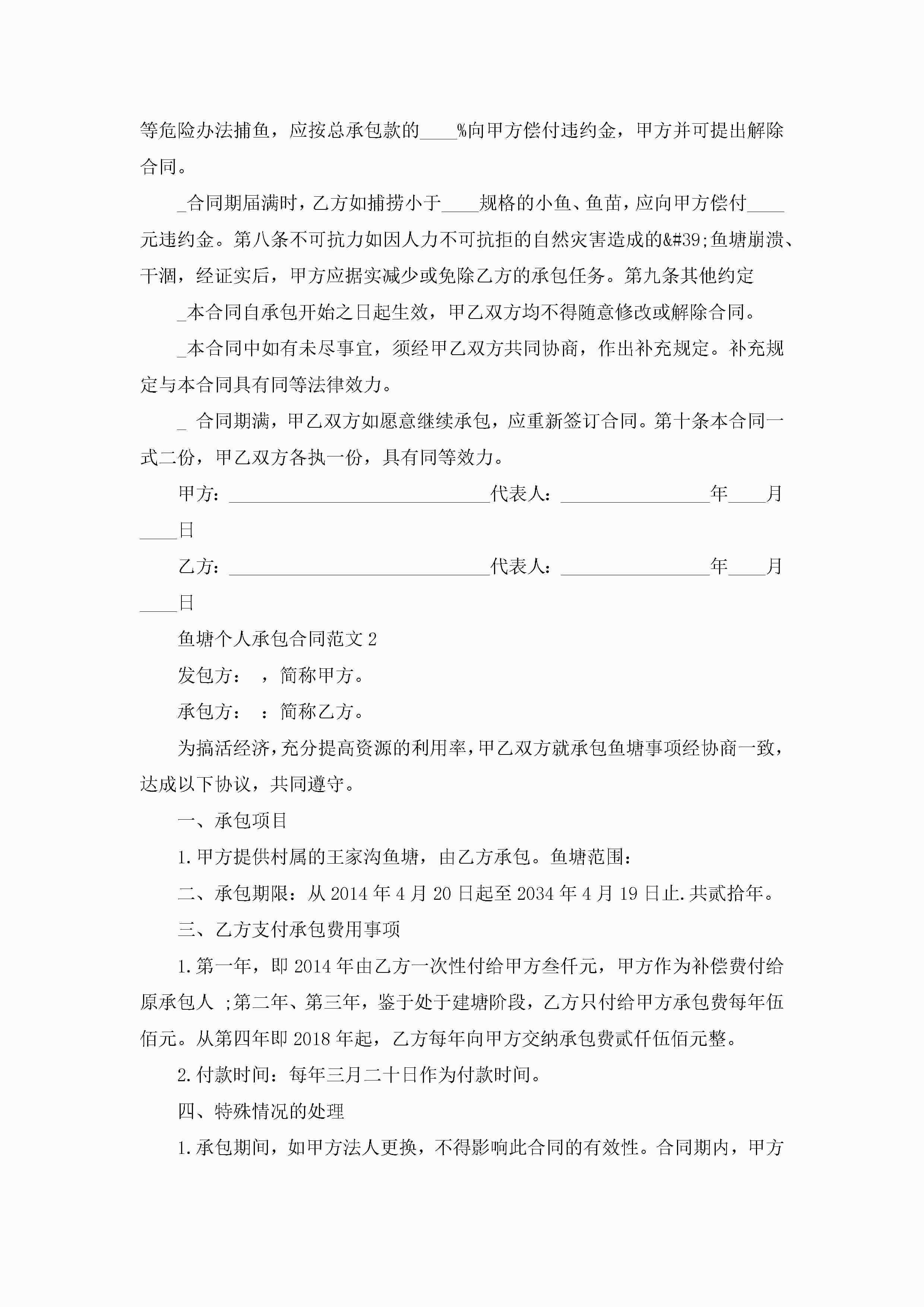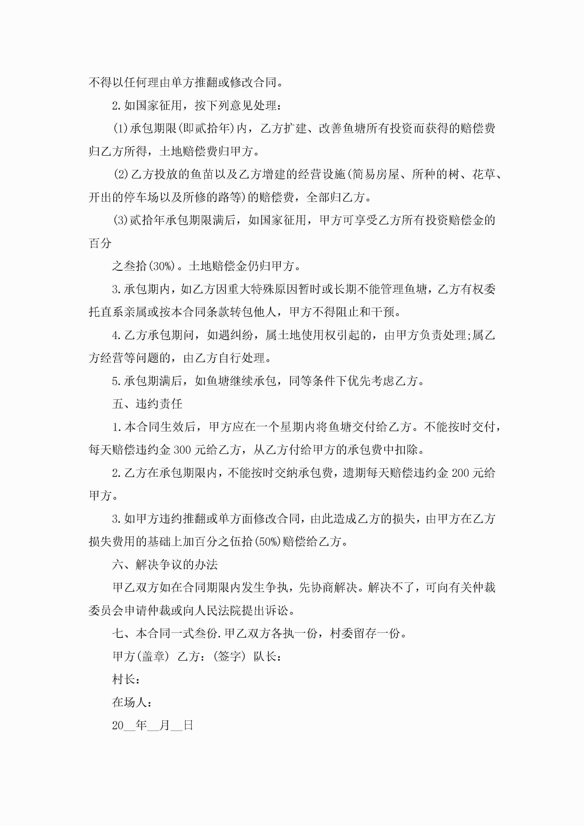关于鱼塘个人承包合同范文5篇jugei3月23日 01:35发布关注268 关于鱼塘个人承包合同范文5篇此内容为付费资源,请付费后查看¥10.9 单篇文档限时特惠¥15个人会员开通企业会员开通立即下载无需登陆!可直接快捷下载单个模板付费资源© 版权声明THE ENDWord模板# 实用文档# 实用模板# 合同模板# 承包合同 如有问题,可点击最底部“联系我们”联系客服 分享QQ空间微博QQ好友海报分享复制链接收藏