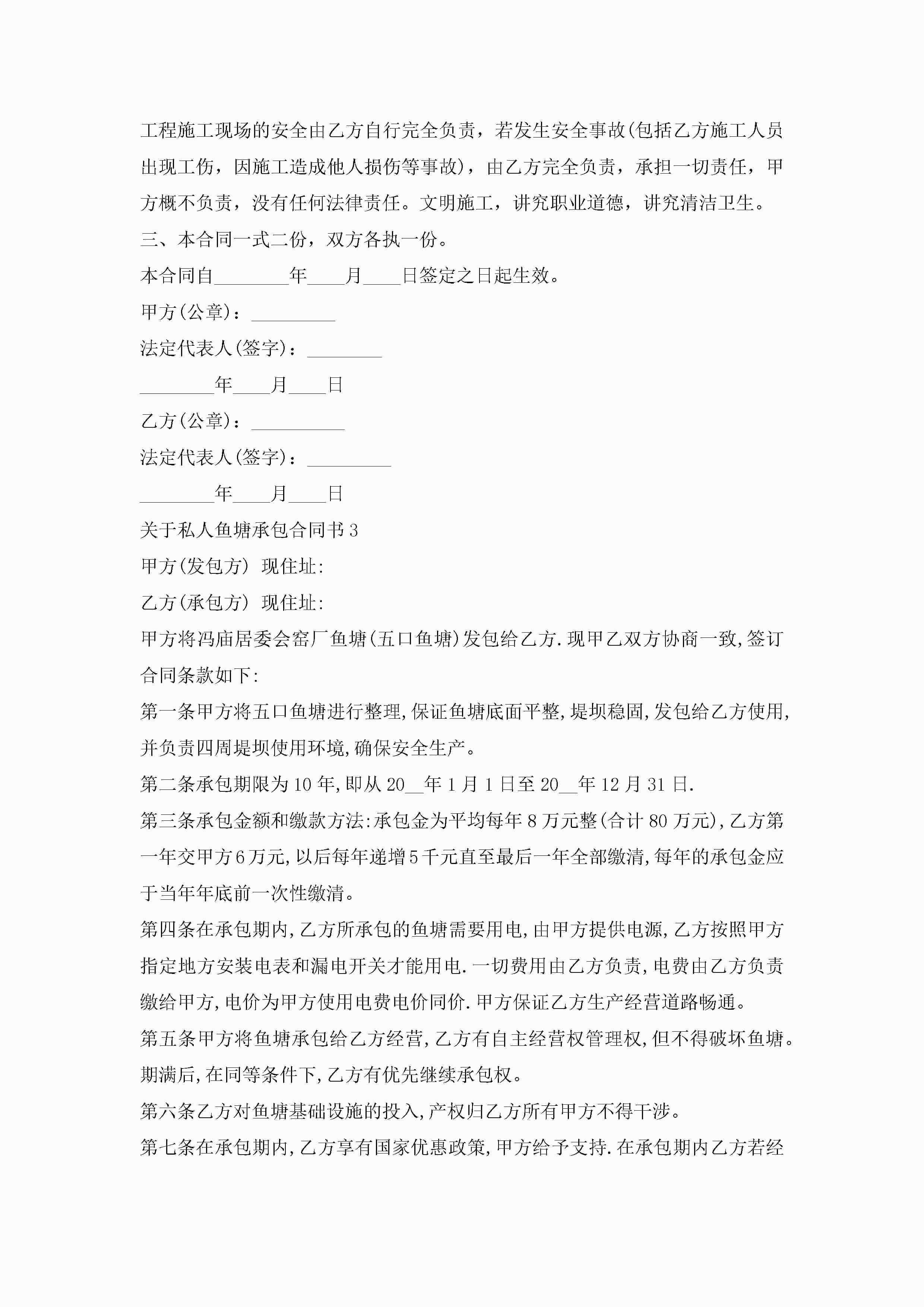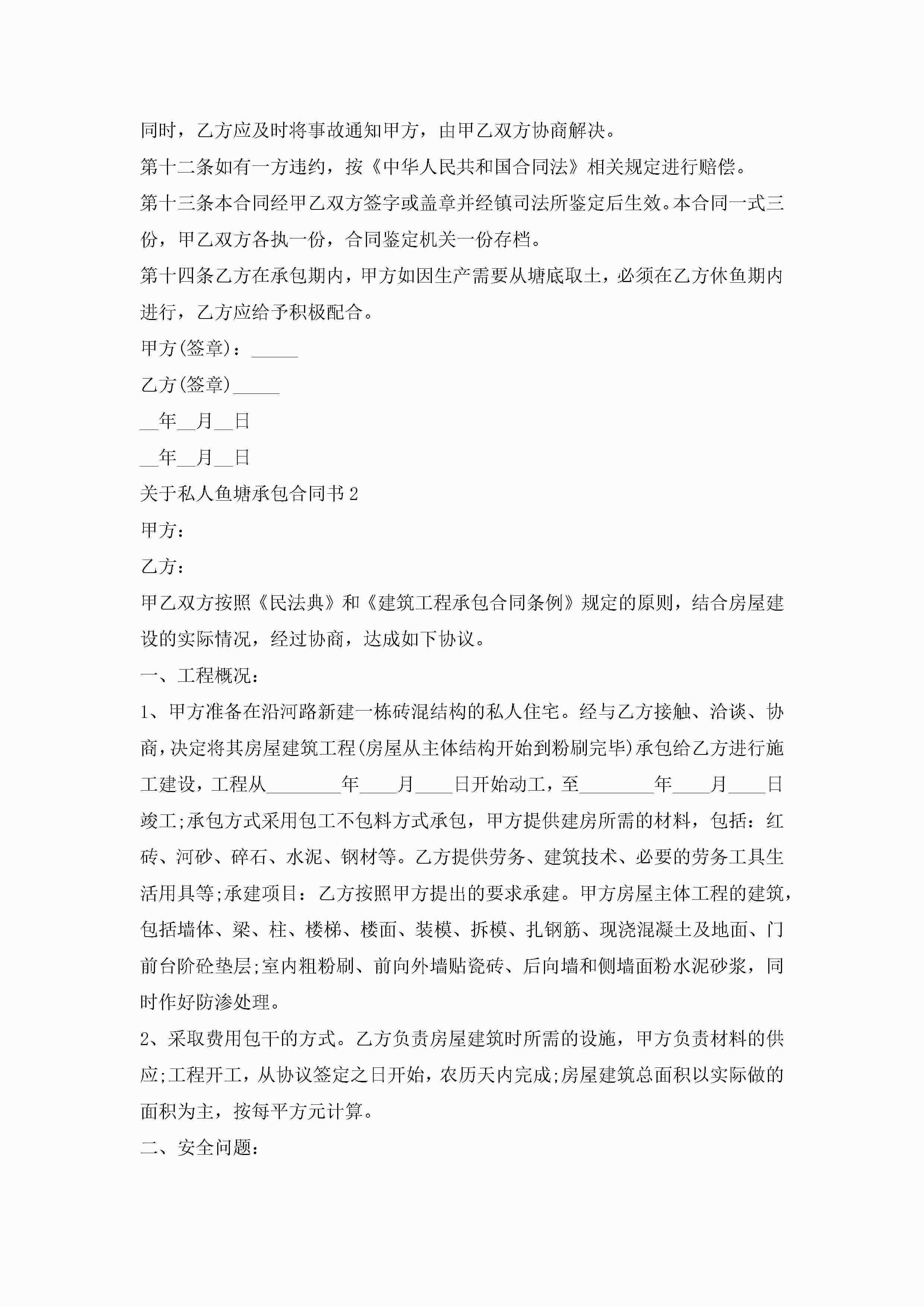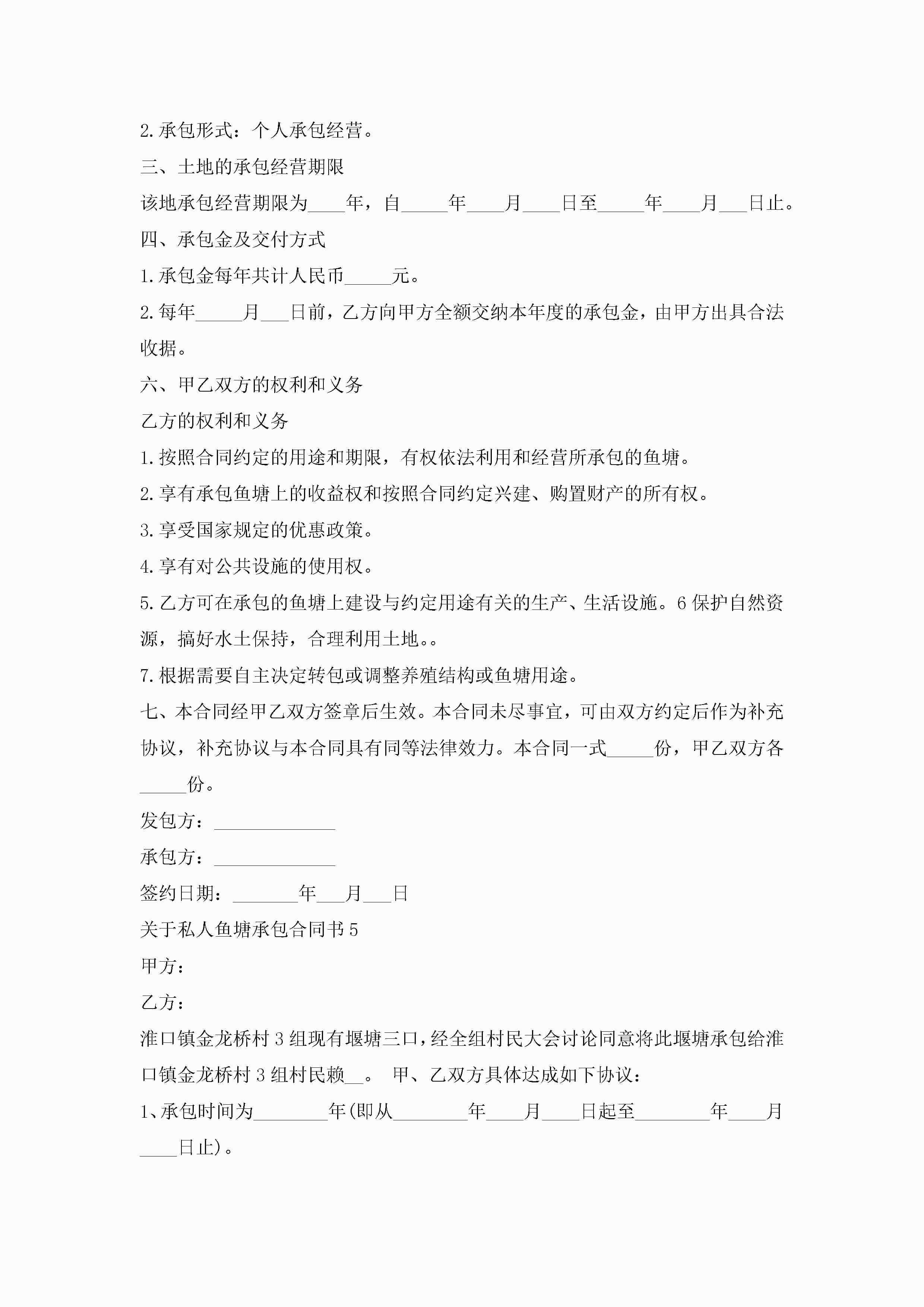 关于私人鱼塘承包合同书范文5篇jugei3月23日 01:35发布关注202 关于私人鱼塘承包合同书范文5篇此内容为付费资源,请付费后查看¥10.9 单篇文档限时特惠¥15个人会员开通企业会员开通立即下载无需登陆!可直接快捷下载单个模板付费资源© 版权声明THE ENDWord模板# 实用文档# 实用模板# 合同模板# 承包合同 如有问题,可点击最底部“联系我们”联系客服 分享QQ空间微博QQ好友海报分享复制链接收藏