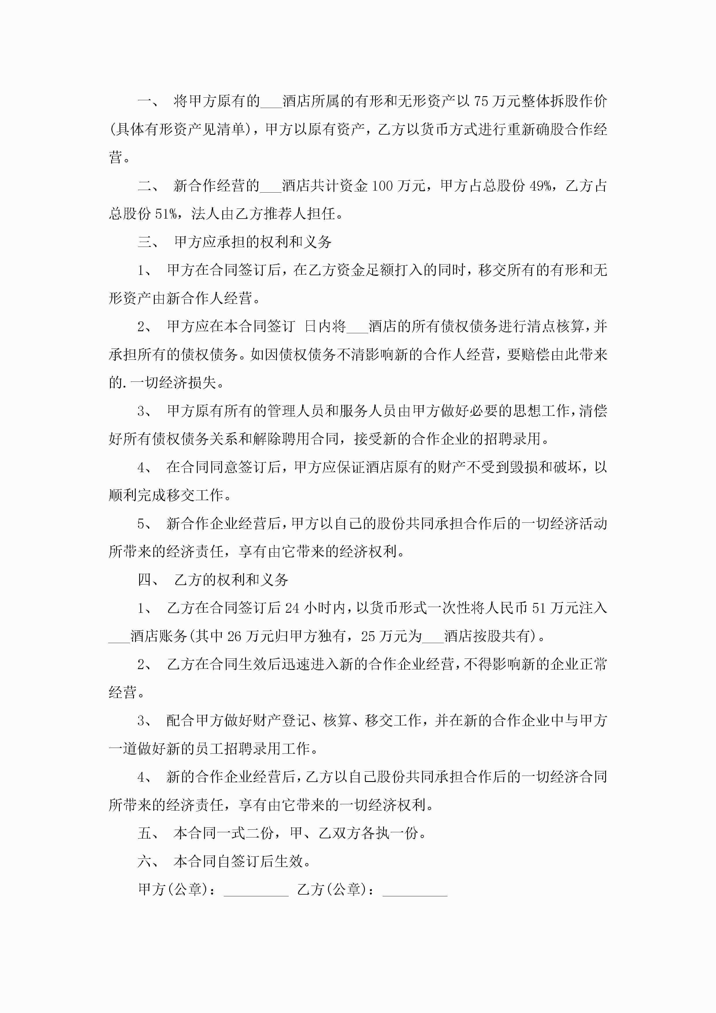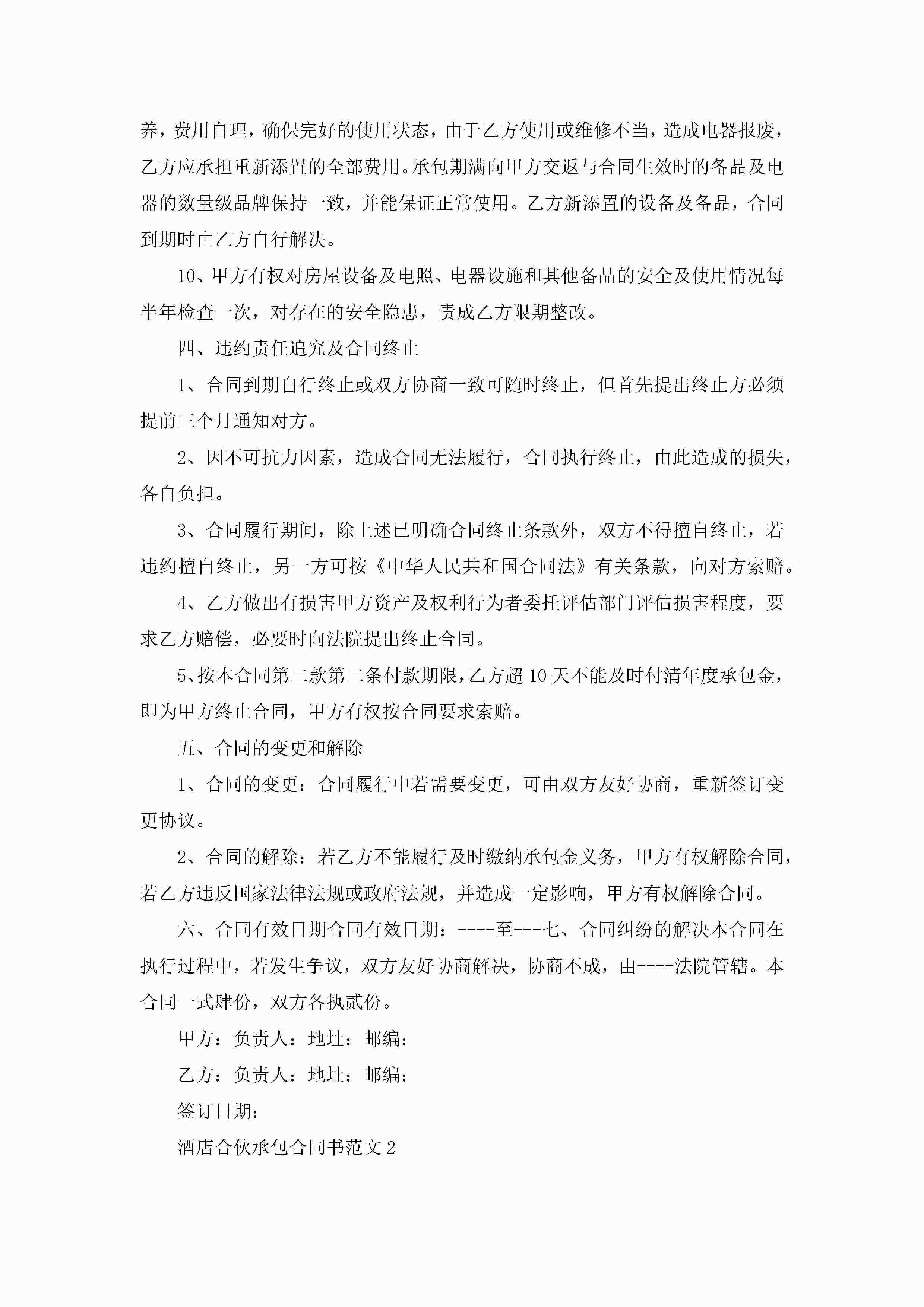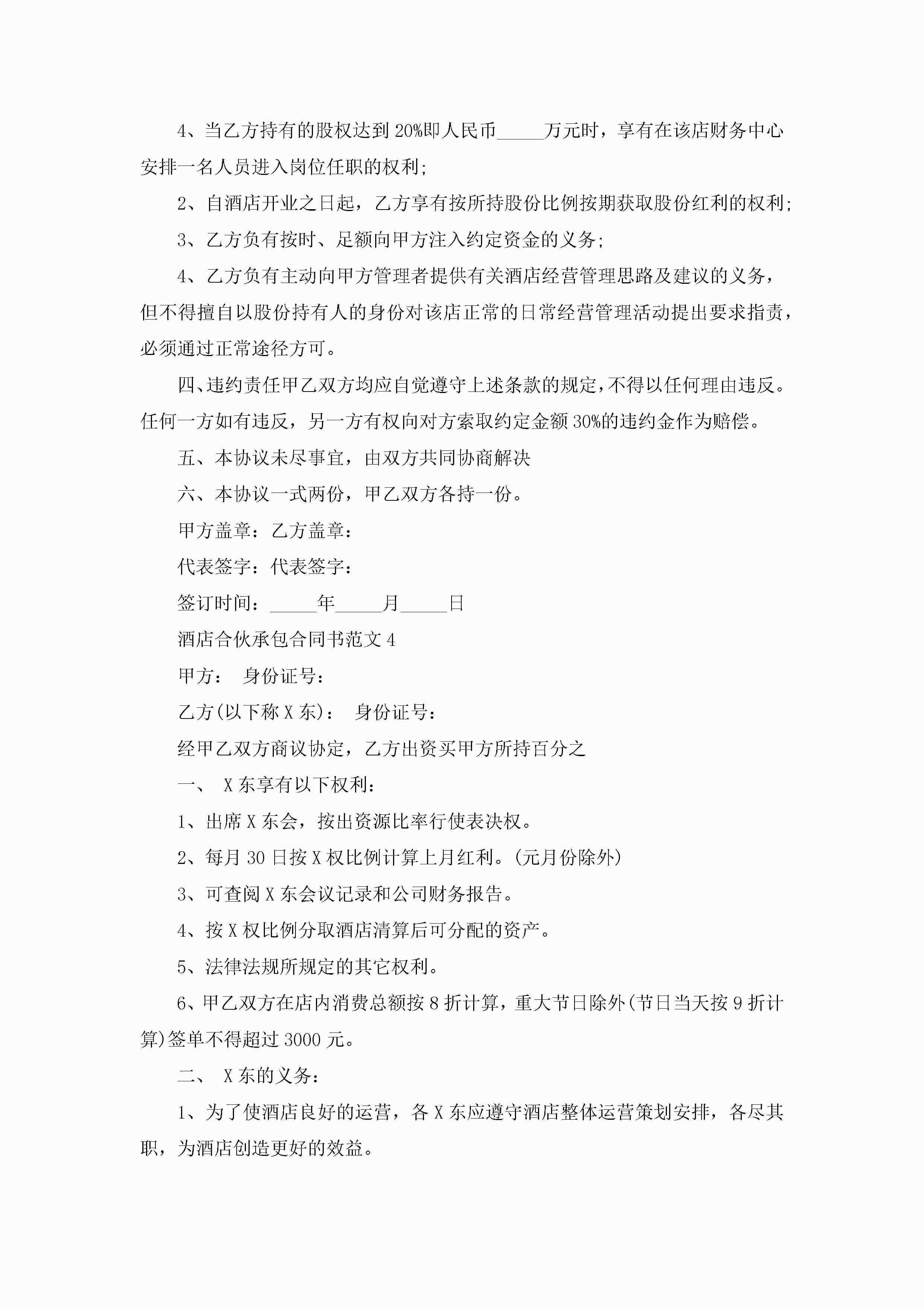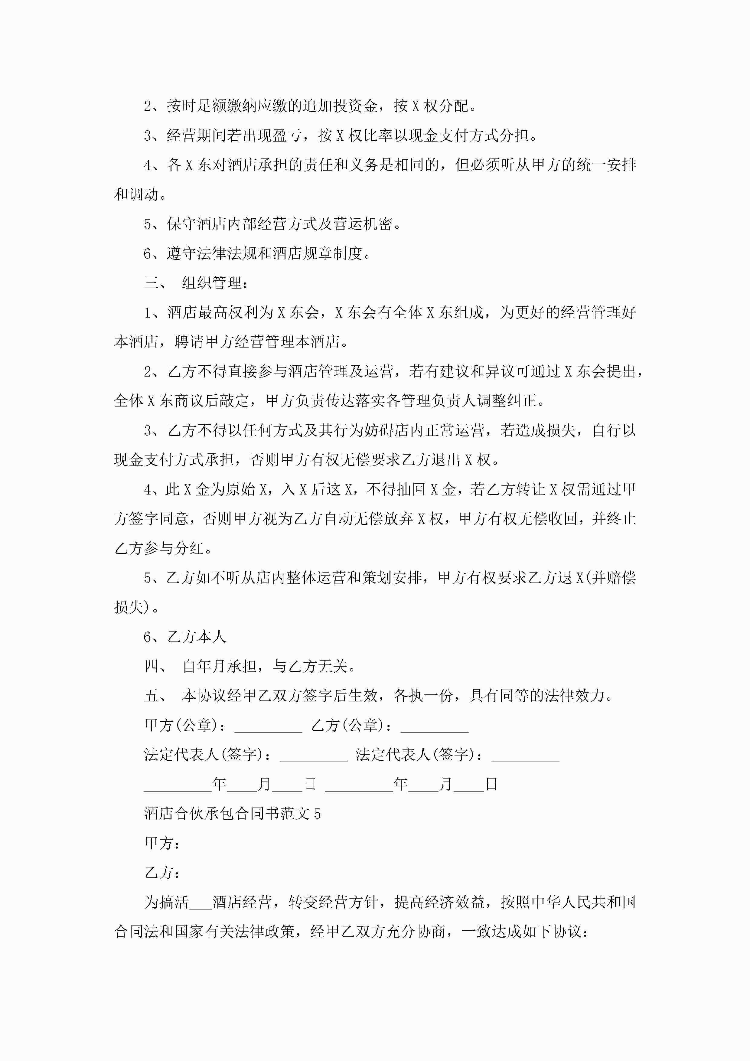 酒店合伙承包合同书范文5篇jugei3月23日 01:35发布关注209 酒店合伙承包合同书范文5篇此内容为付费资源,请付费后查看¥10.9 单篇文档限时特惠¥15个人会员开通企业会员开通立即下载无需登陆!可直接快捷下载单个模板付费资源© 版权声明THE ENDWord模板# 实用文档# 实用模板# 合同模板# 承包合同 如有问题,可点击最底部“联系我们”联系客服 分享QQ空间微博QQ好友海报分享复制链接收藏