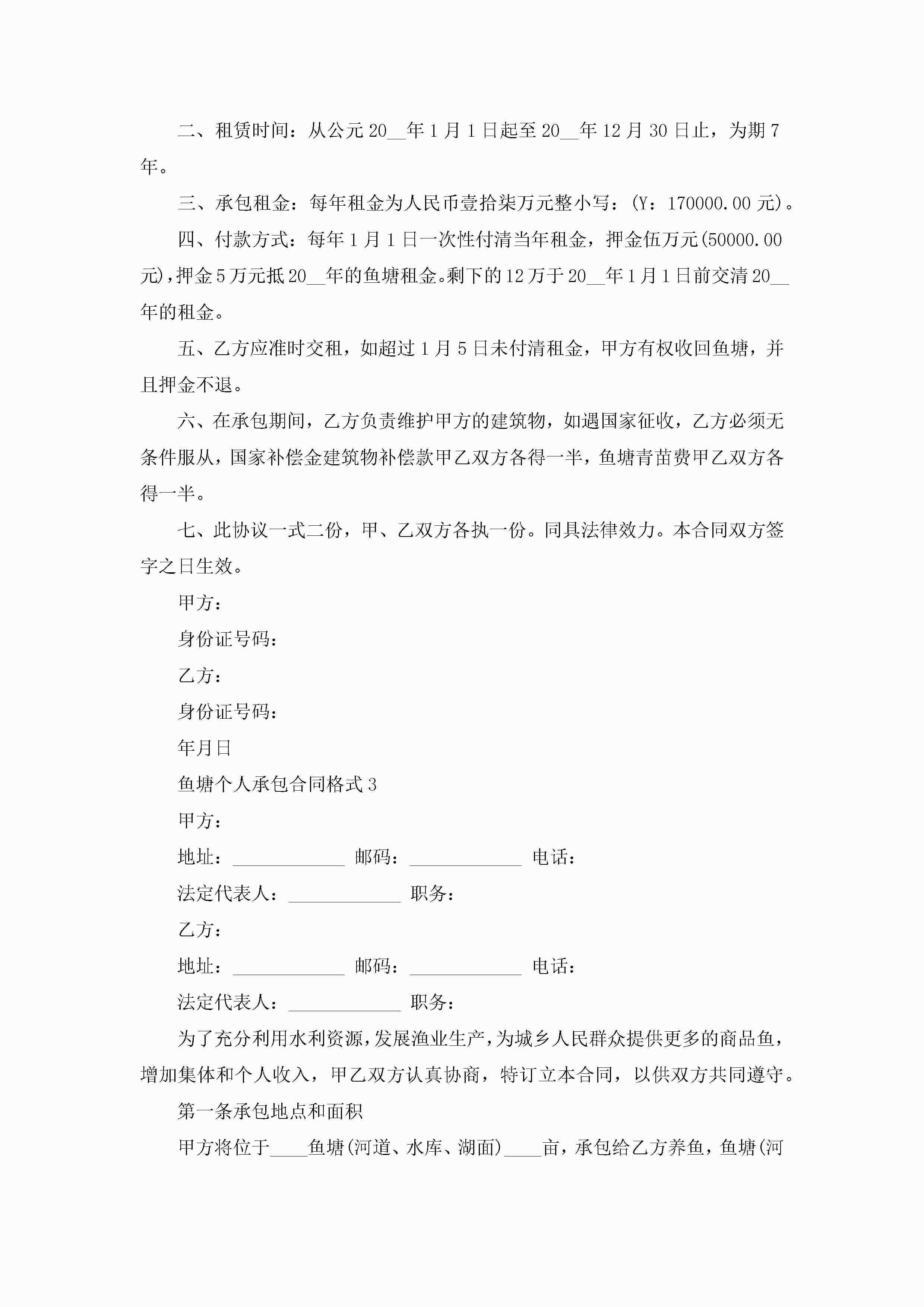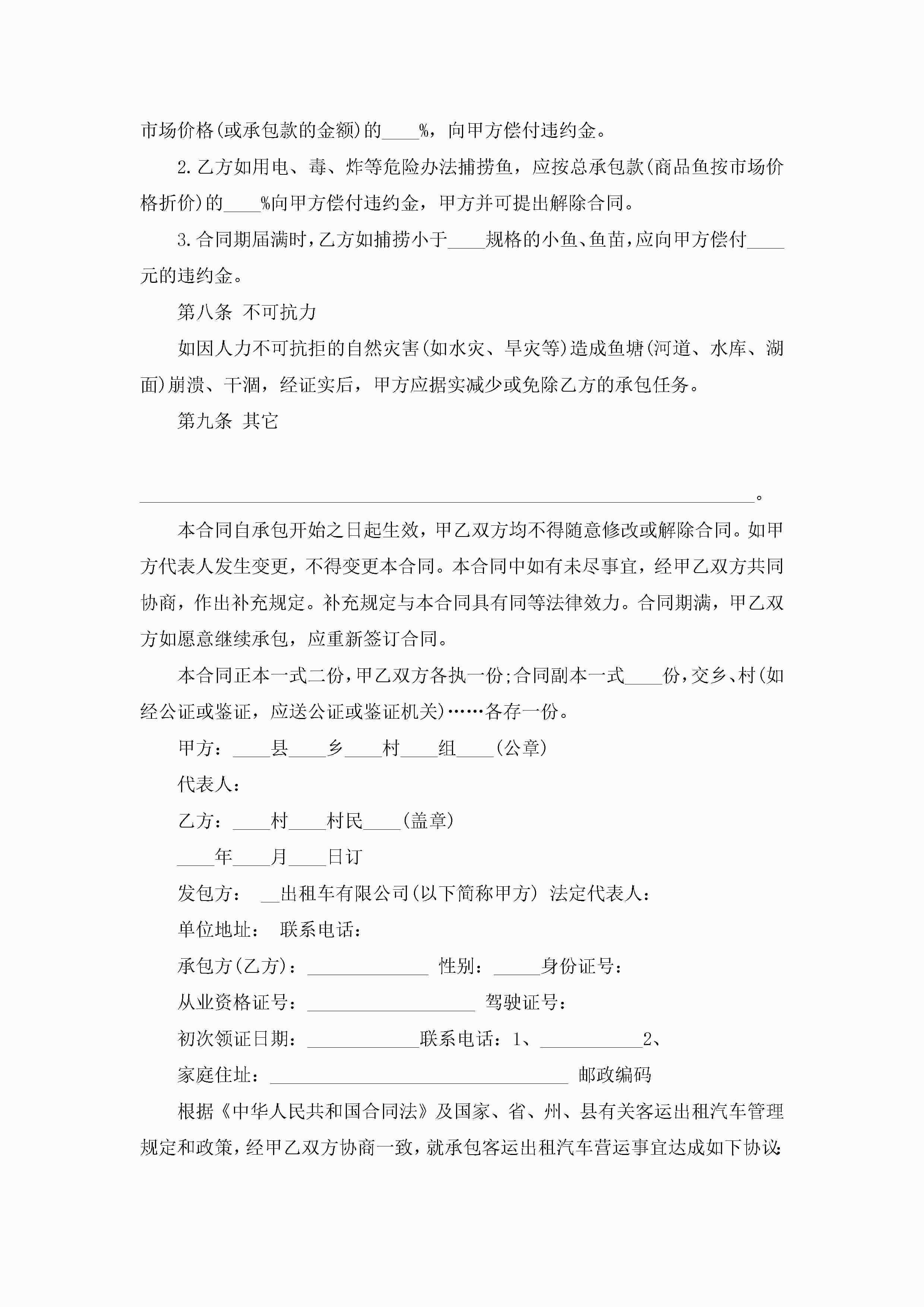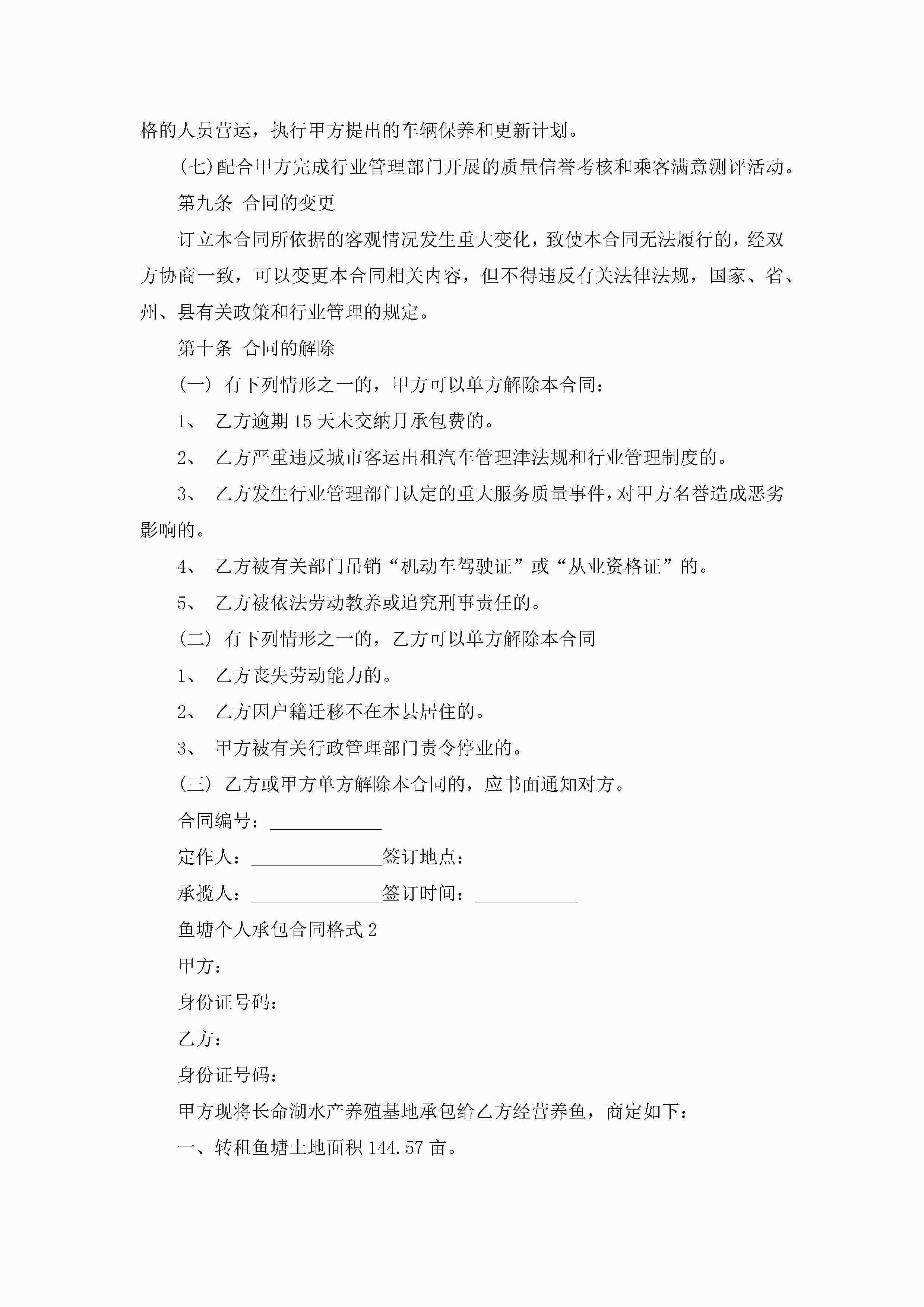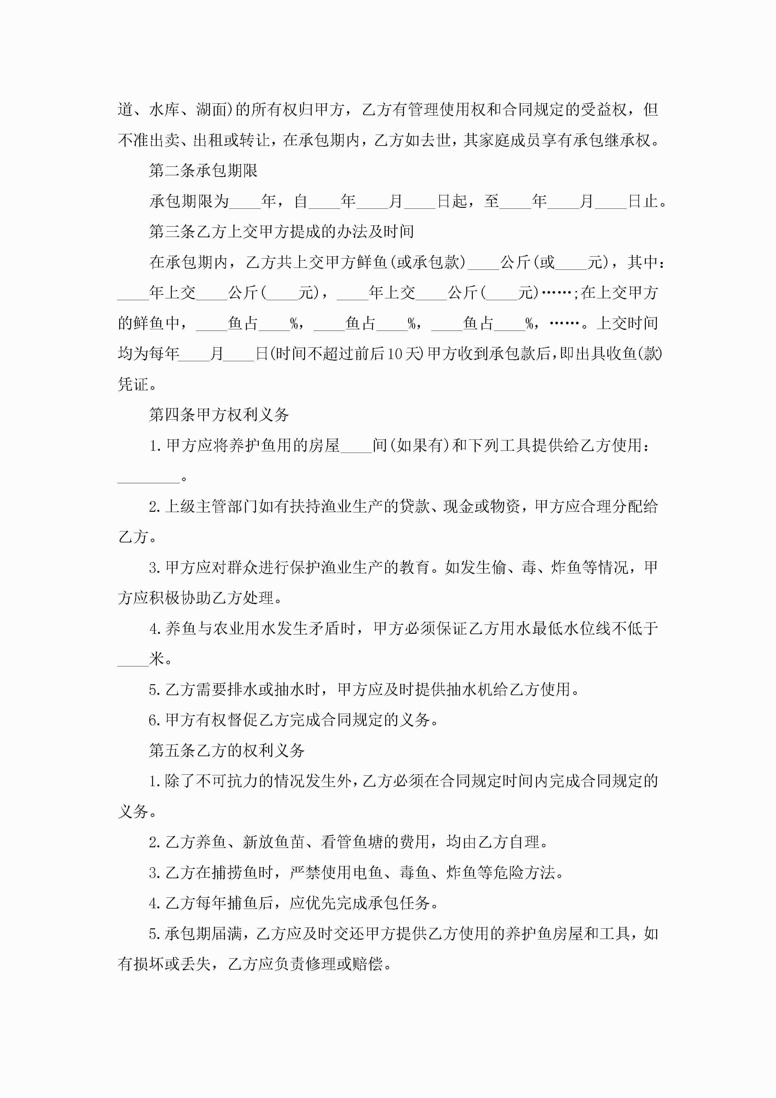 关于鱼塘个人承包合同格式5篇jugei3月23日 01:35发布关注194 关于鱼塘个人承包合同格式5篇此内容为付费资源,请付费后查看¥10.9 单篇文档限时特惠¥15个人会员开通企业会员开通立即下载无需登陆!可直接快捷下载单个模板付费资源© 版权声明THE ENDWord模板# 实用文档# 实用模板# 合同模板# 承包合同 如有问题,可点击最底部“联系我们”联系客服 分享QQ空间微博QQ好友海报分享复制链接收藏