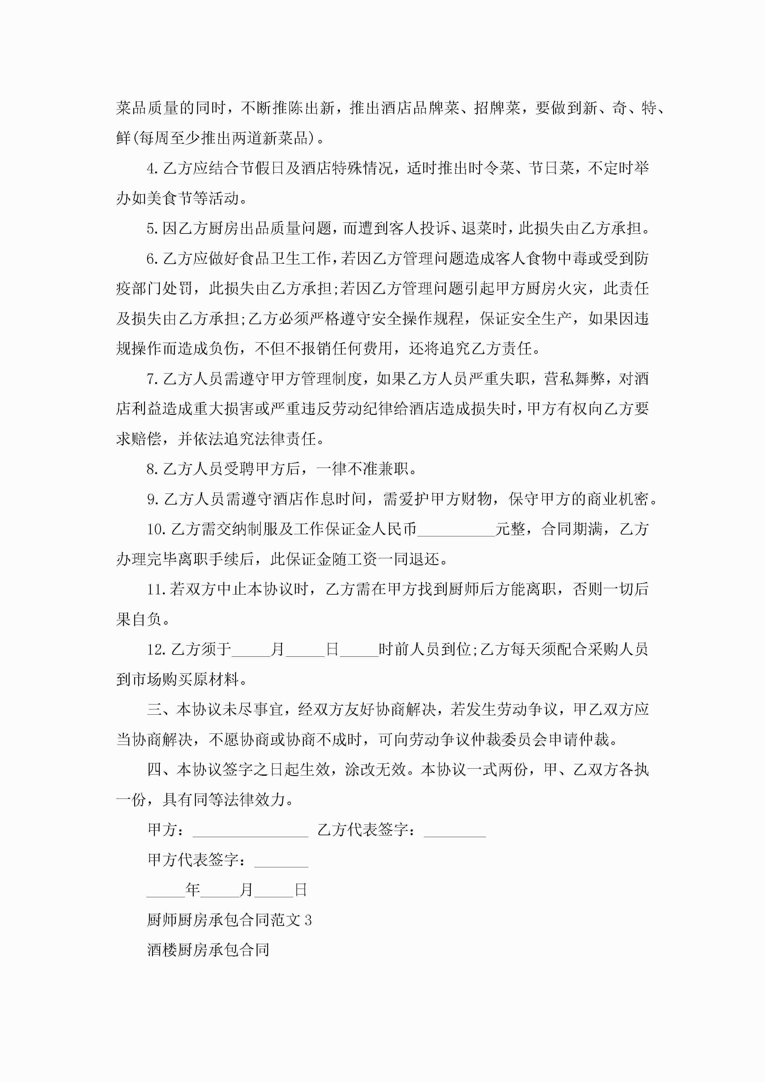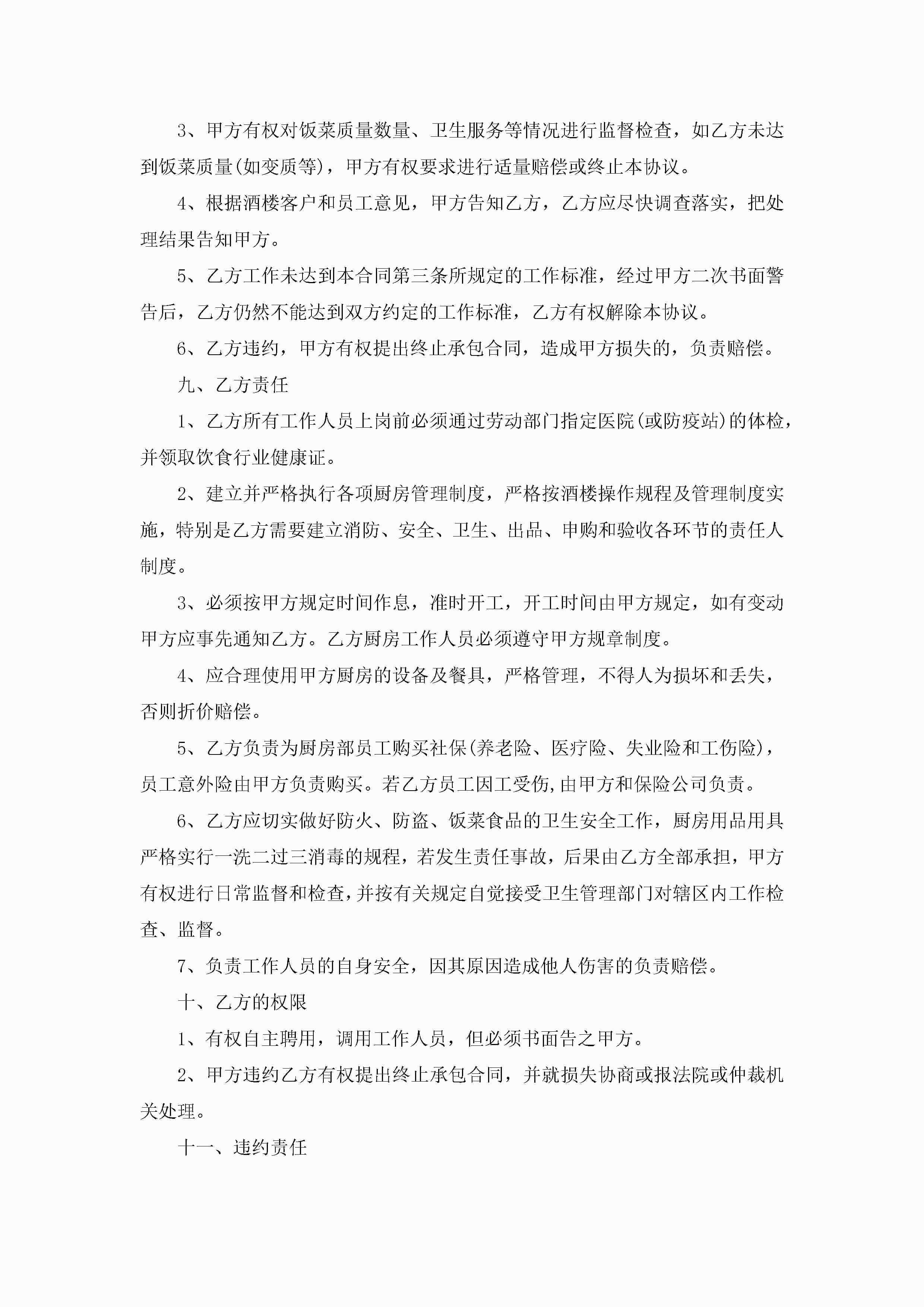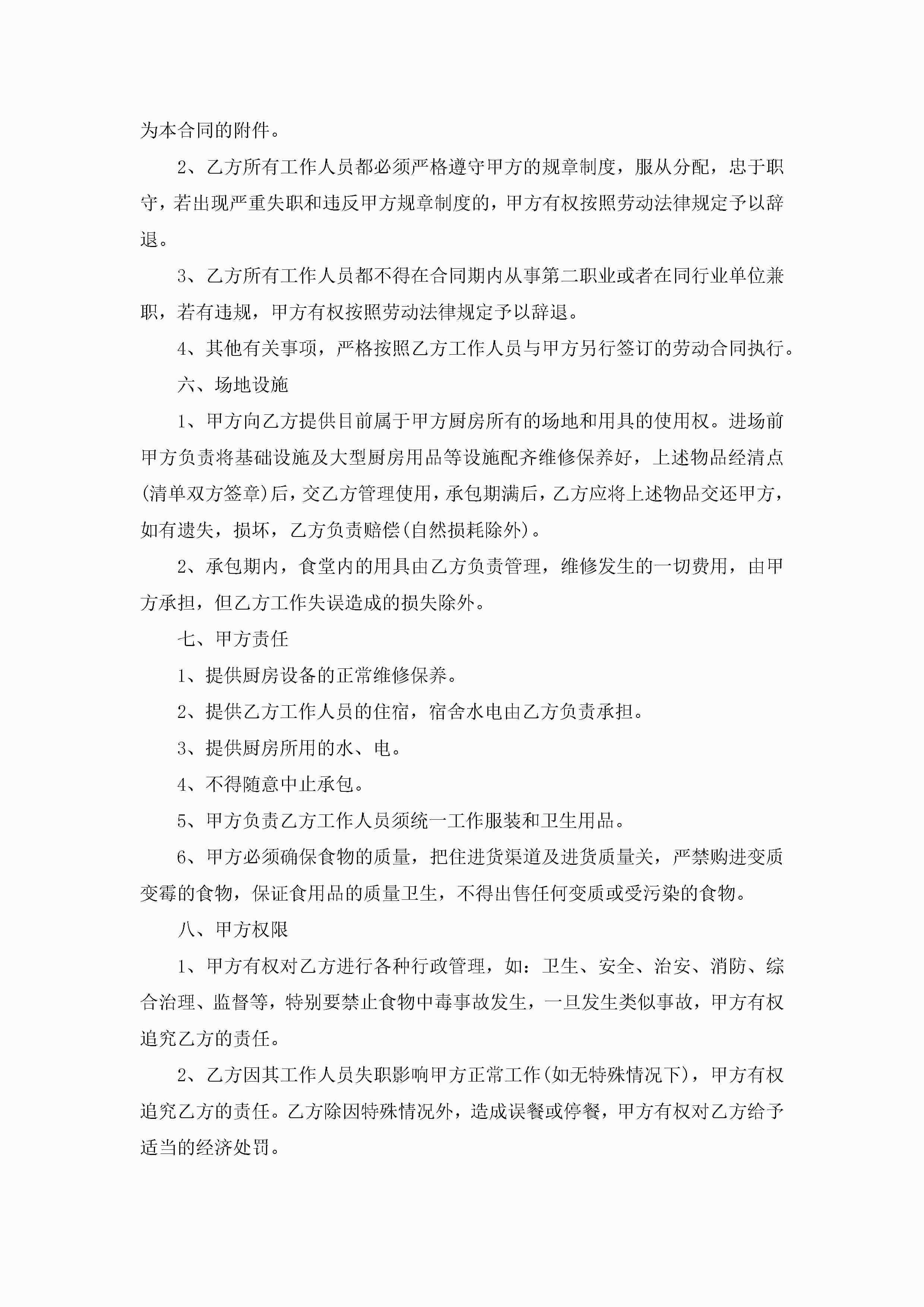 厨师厨房承包合同范文5篇jugei3月23日 01:35发布关注204 厨师厨房承包合同范文5篇此内容为付费资源,请付费后查看¥10.9 单篇文档限时特惠¥15个人会员开通企业会员开通立即下载无需登陆!可直接快捷下载单个模板付费资源© 版权声明THE ENDWord模板# 实用文档# 实用模板# 合同模板# 承包合同 如有问题,可点击最底部“联系我们”联系客服 分享QQ空间微博QQ好友海报分享复制链接收藏