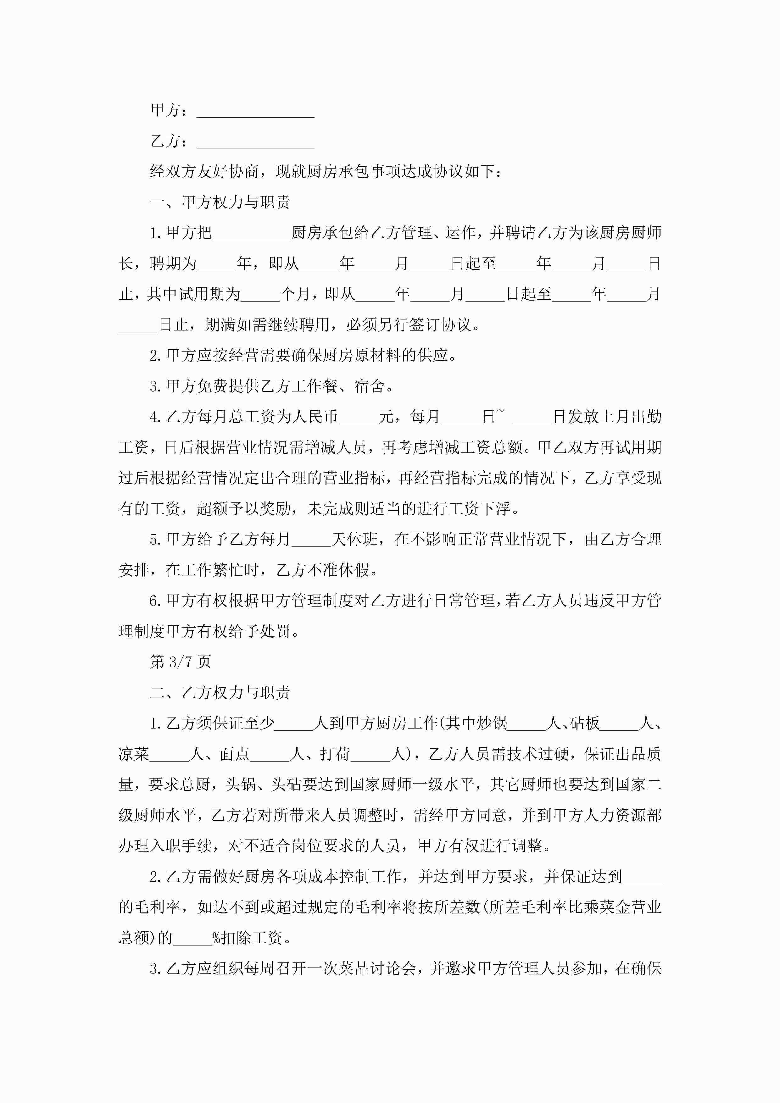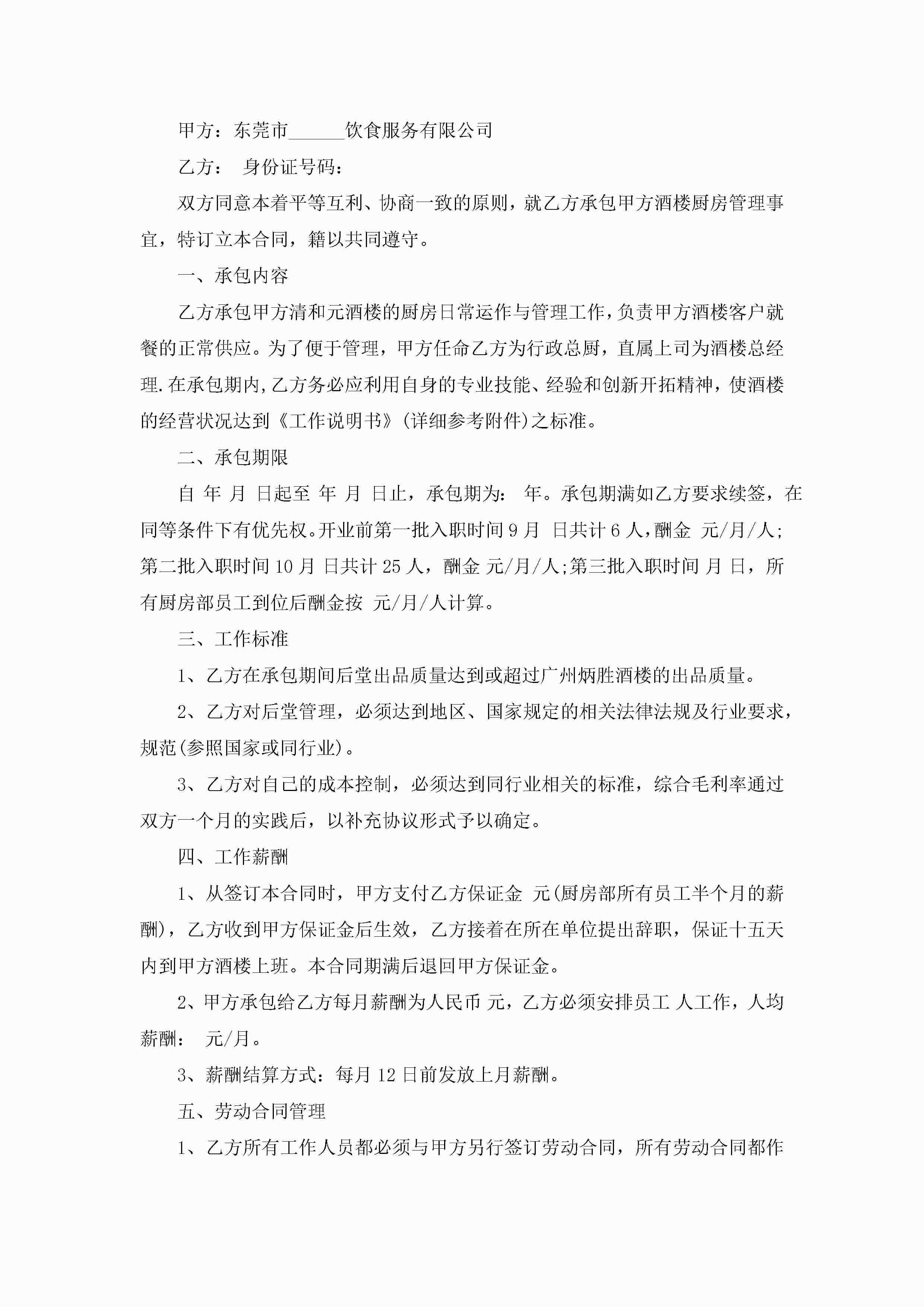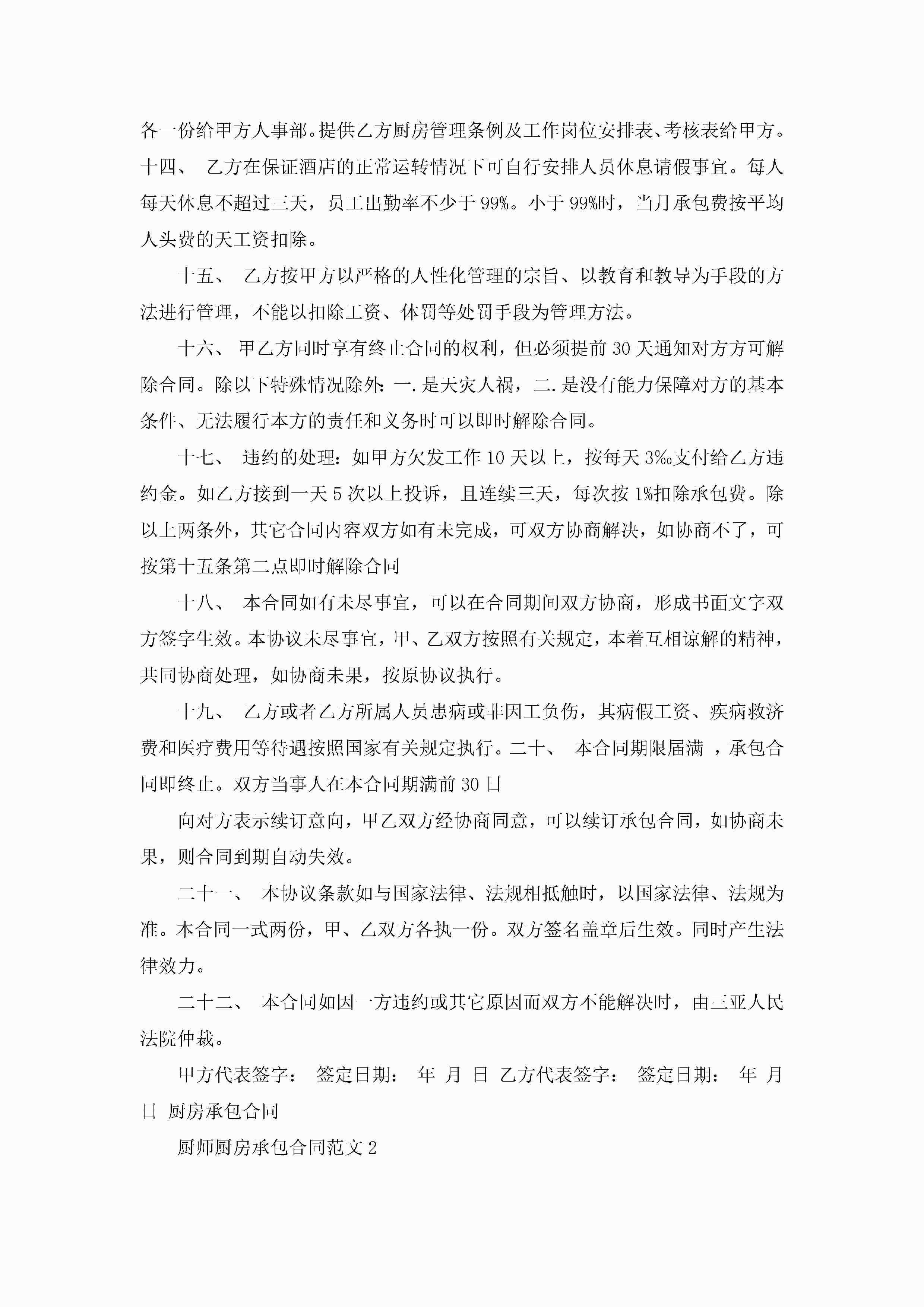 厨师厨房承包合同范文5篇jugei3月23日 01:35发布关注204 厨师厨房承包合同范文5篇此内容为付费资源,请付费后查看¥10.9 单篇文档限时特惠¥15个人会员开通企业会员开通立即下载无需登陆!可直接快捷下载单个模板付费资源© 版权声明THE ENDWord模板# 实用文档# 实用模板# 合同模板# 承包合同 如有问题,可点击最底部“联系我们”联系客服 分享QQ空间微博QQ好友海报分享复制链接收藏