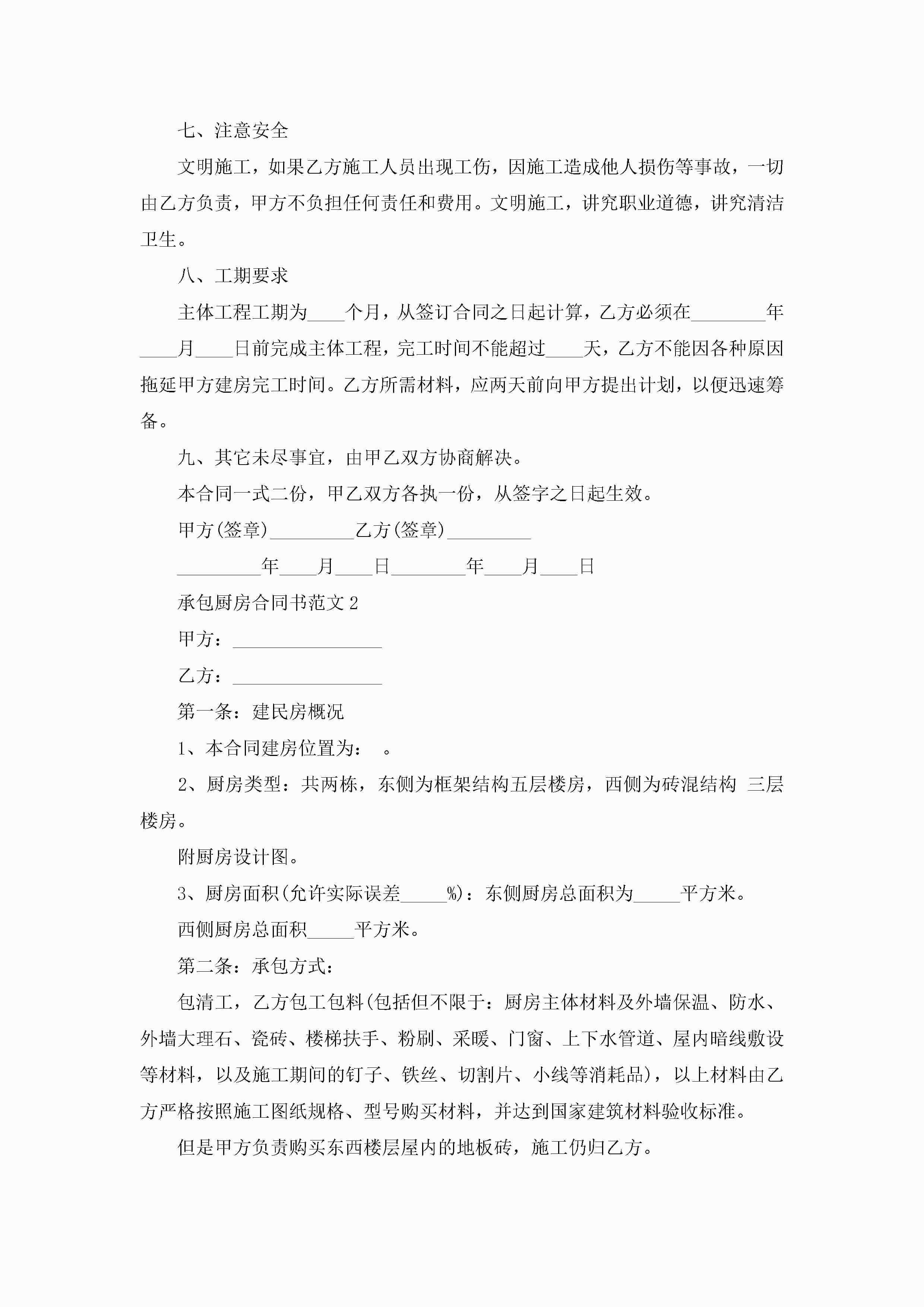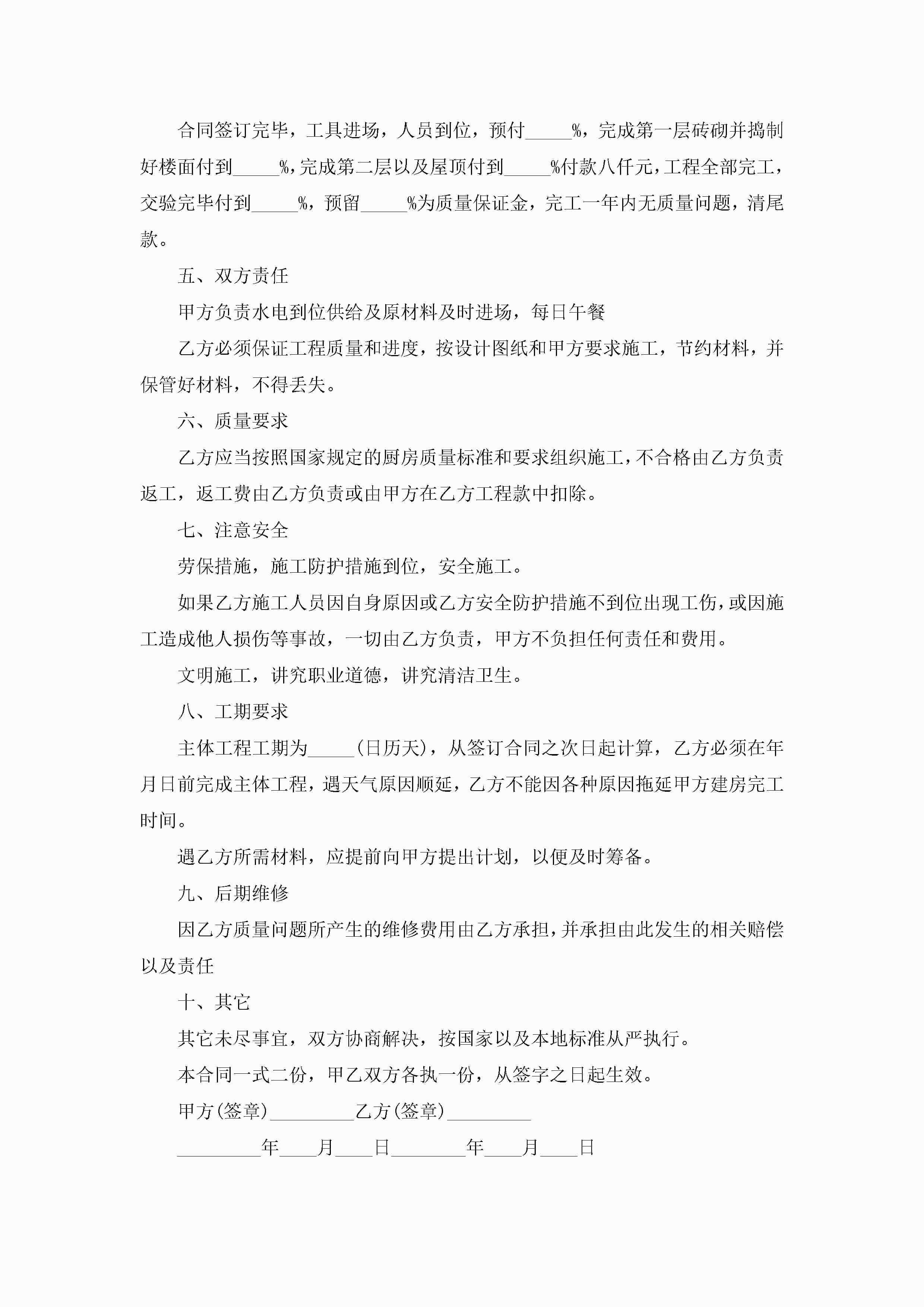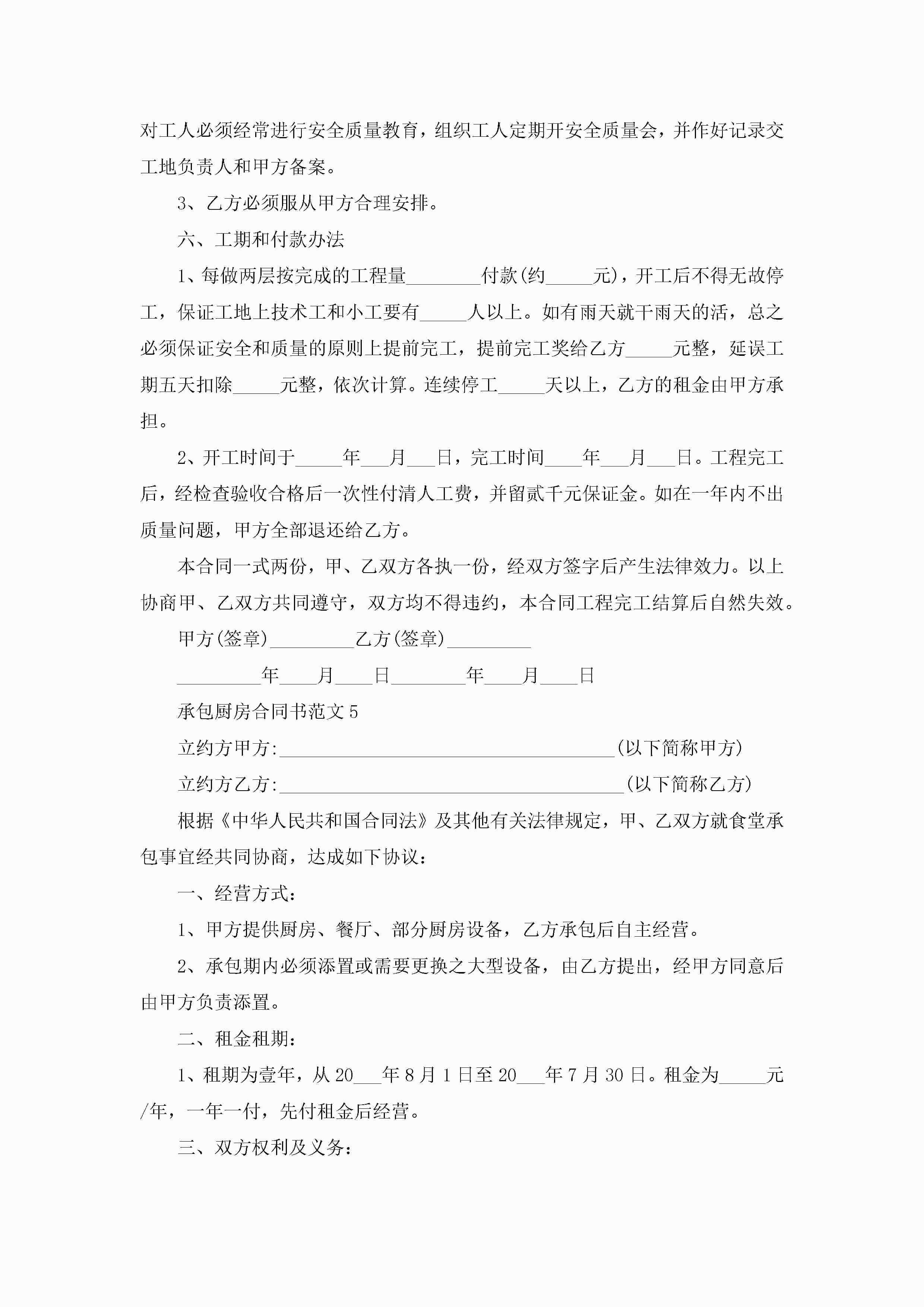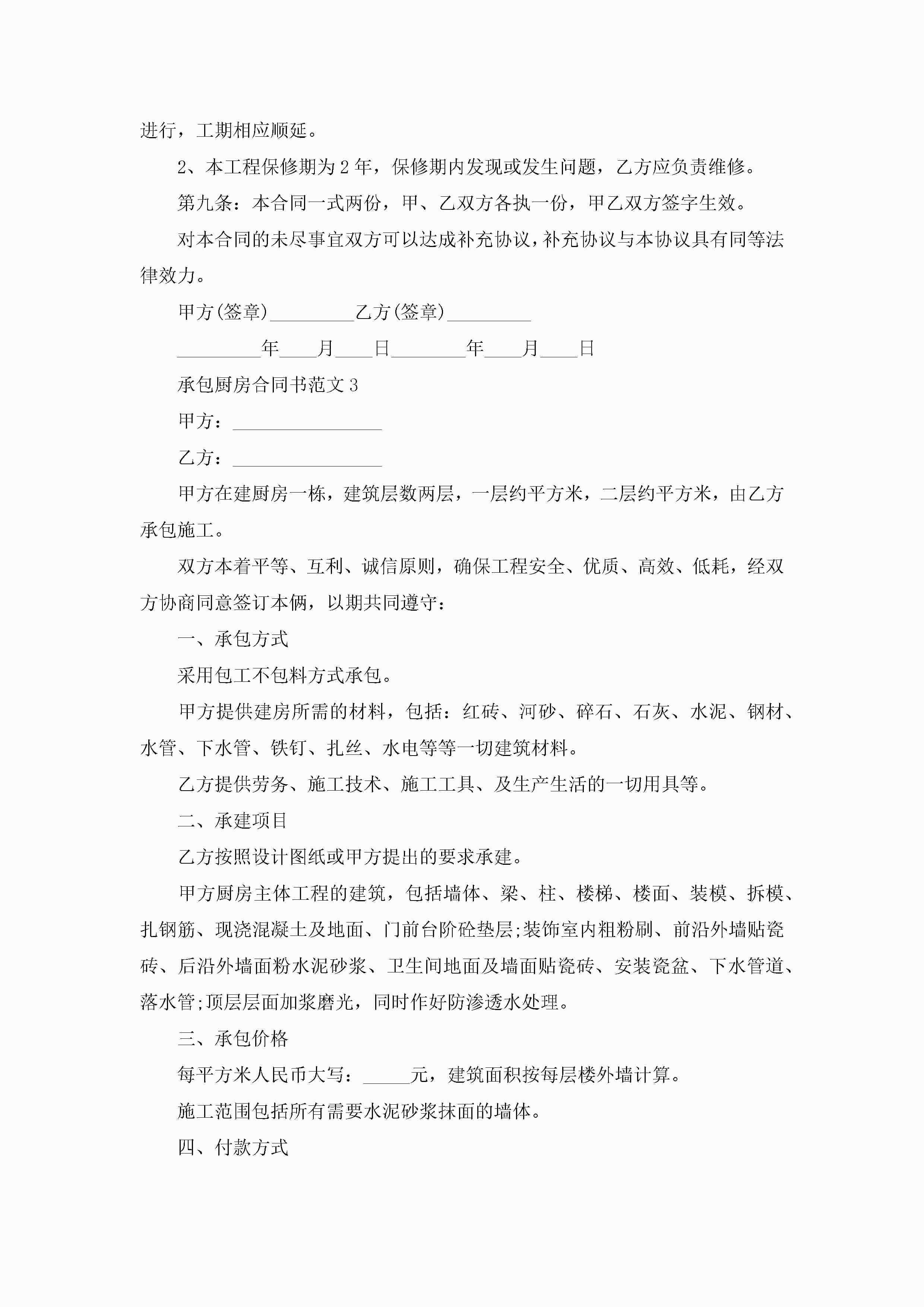 承包厨房合同书范文5篇jugei3月23日 01:35发布关注196 承包厨房合同书范文5篇此内容为付费资源,请付费后查看¥10.9 单篇文档限时特惠¥15个人会员开通企业会员开通立即下载无需登陆!可直接快捷下载单个模板付费资源© 版权声明THE ENDWord模板# 实用文档# 实用模板# 合同模板# 承包合同 如有问题,可点击最底部“联系我们”联系客服 分享QQ空间微博QQ好友海报分享复制链接收藏