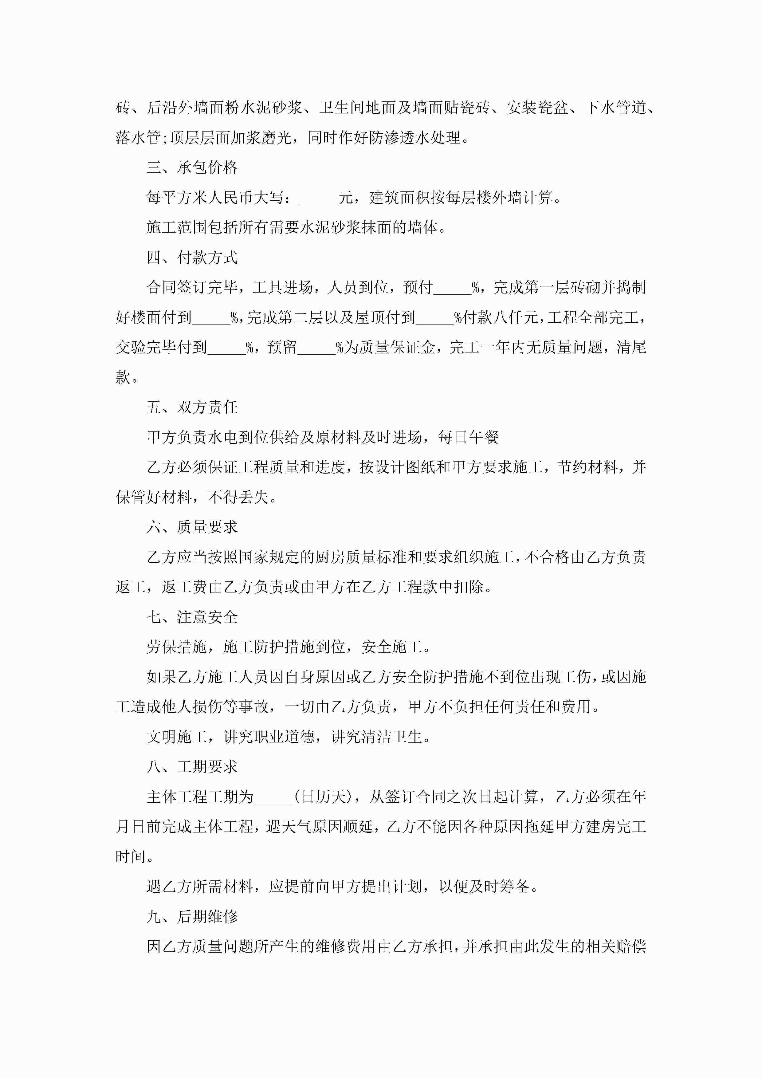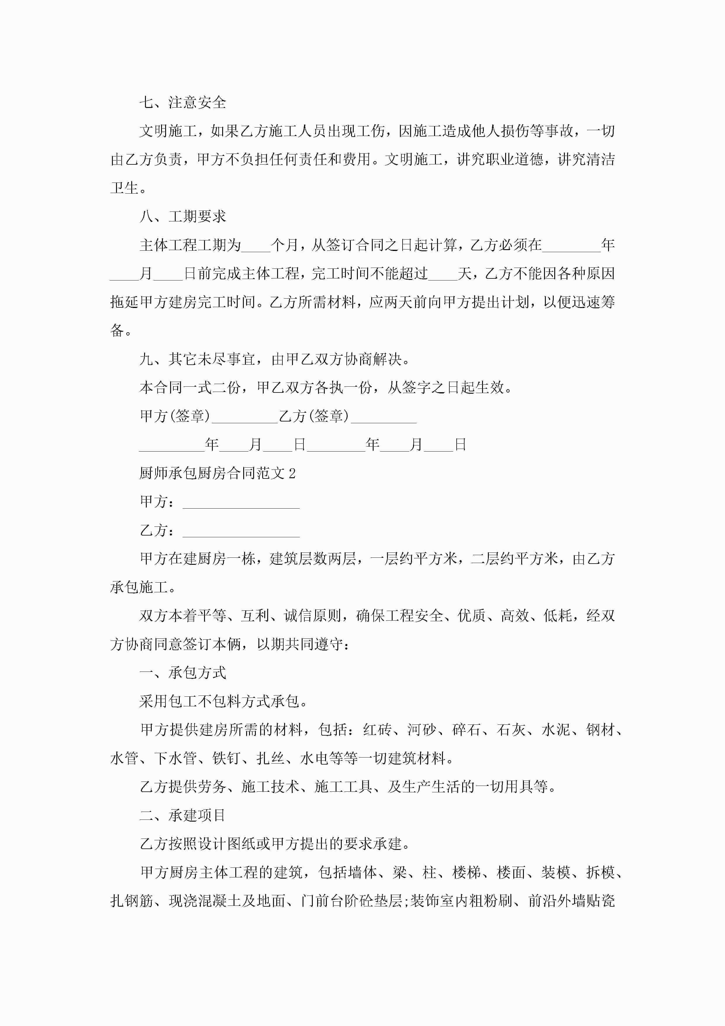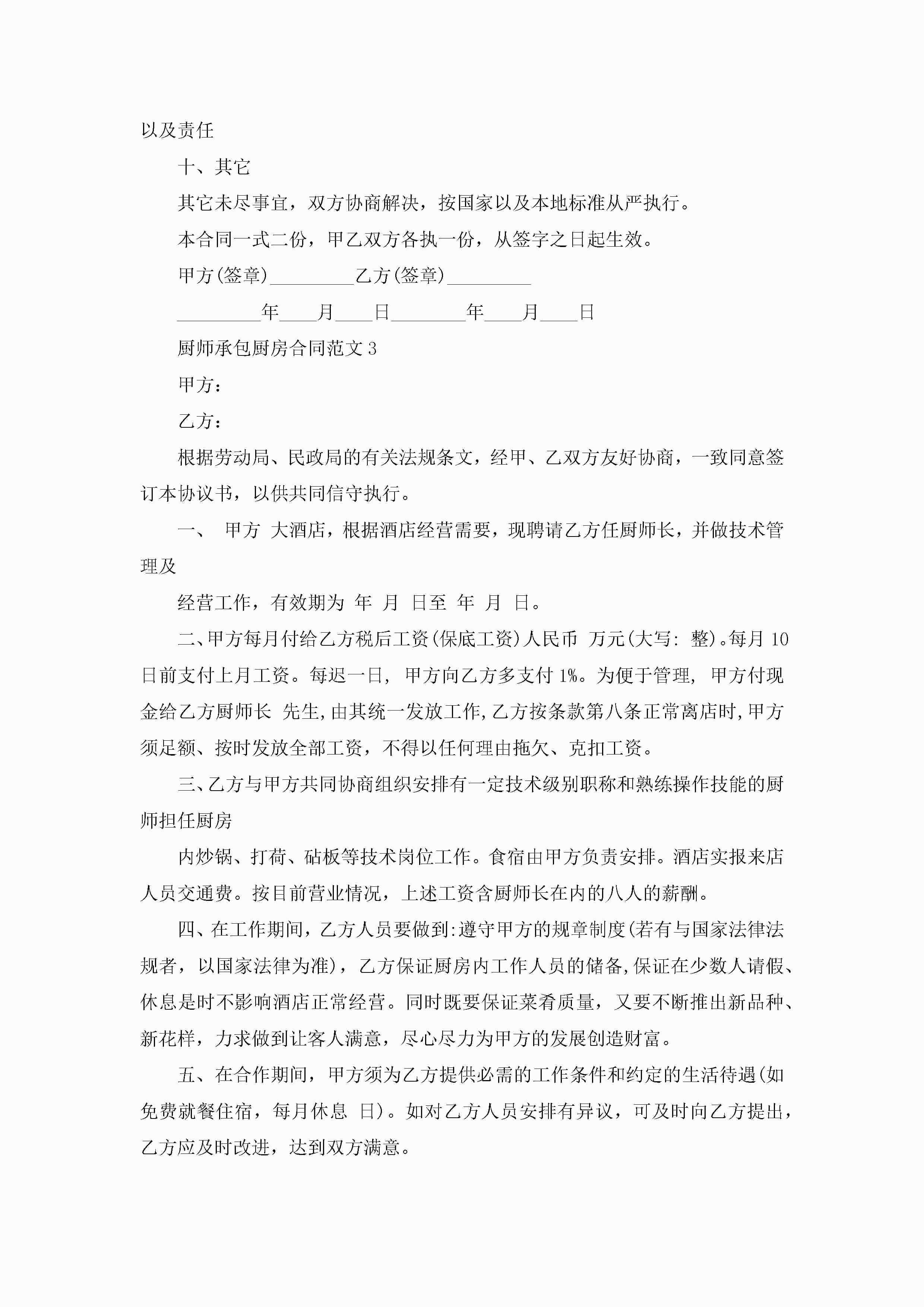 厨师承包厨房合同范文5篇jugei3月23日 01:35发布关注189 厨师承包厨房合同范文5篇此内容为付费资源,请付费后查看¥10.9 单篇文档限时特惠¥15个人会员开通企业会员开通立即下载无需登陆!可直接快捷下载单个模板付费资源© 版权声明THE ENDWord模板# 实用文档# 实用模板# 合同模板# 承包合同 如有问题,可点击最底部“联系我们”联系客服 分享QQ空间微博QQ好友海报分享复制链接收藏
