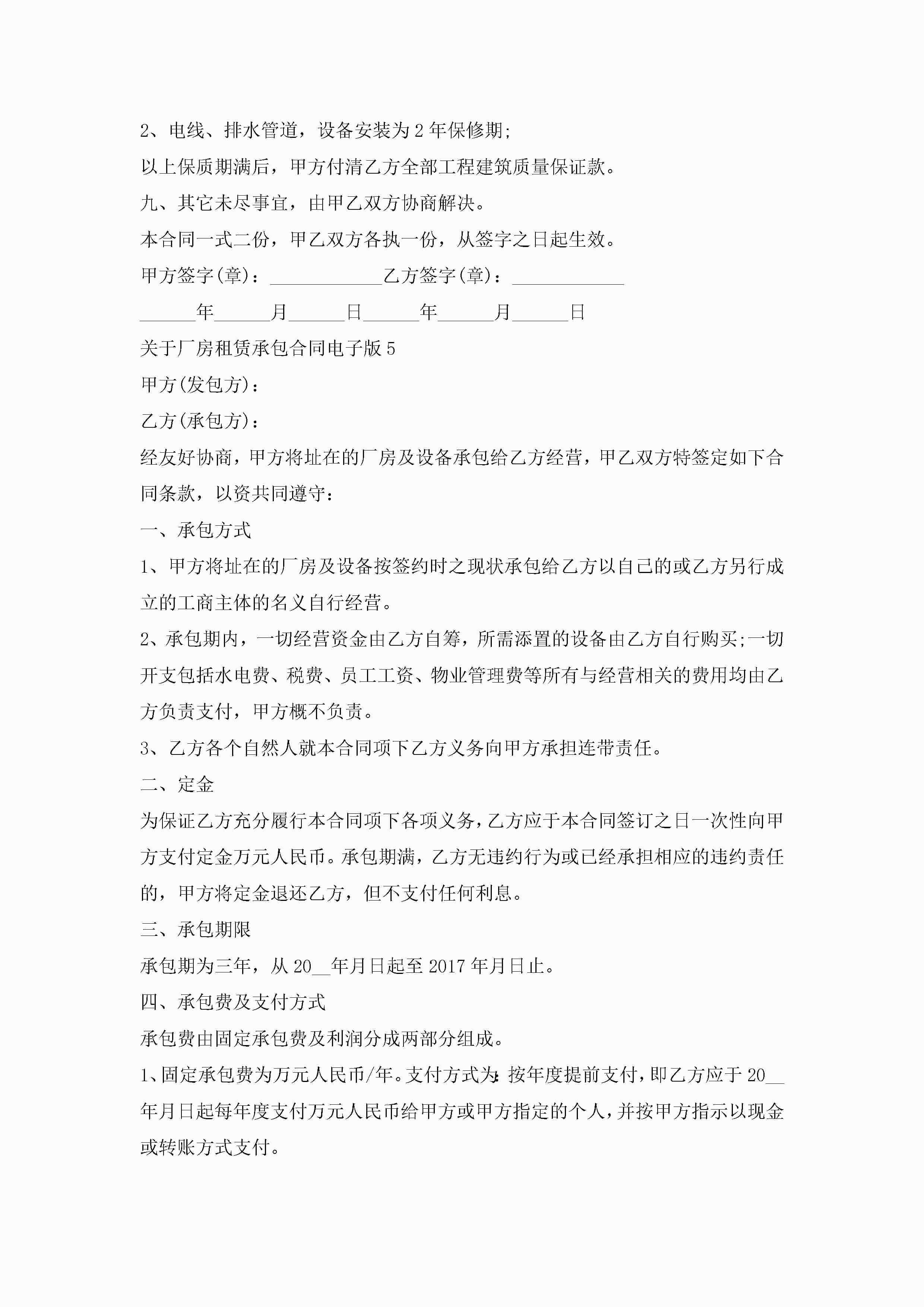关于厂房租赁承包合同电子版5篇jugei3月23日 01:35发布关注247 关于厂房租赁承包合同电子版5篇此内容为付费资源,请付费后查看¥10.9 单篇文档限时特惠¥15个人会员开通企业会员开通立即下载无需登陆!可直接快捷下载单个模板付费资源© 版权声明THE ENDWord模板# 实用文档# 实用模板# 合同模板# 承包合同 如有问题,可点击最底部“联系我们”联系客服 分享QQ空间微博QQ好友海报分享复制链接收藏