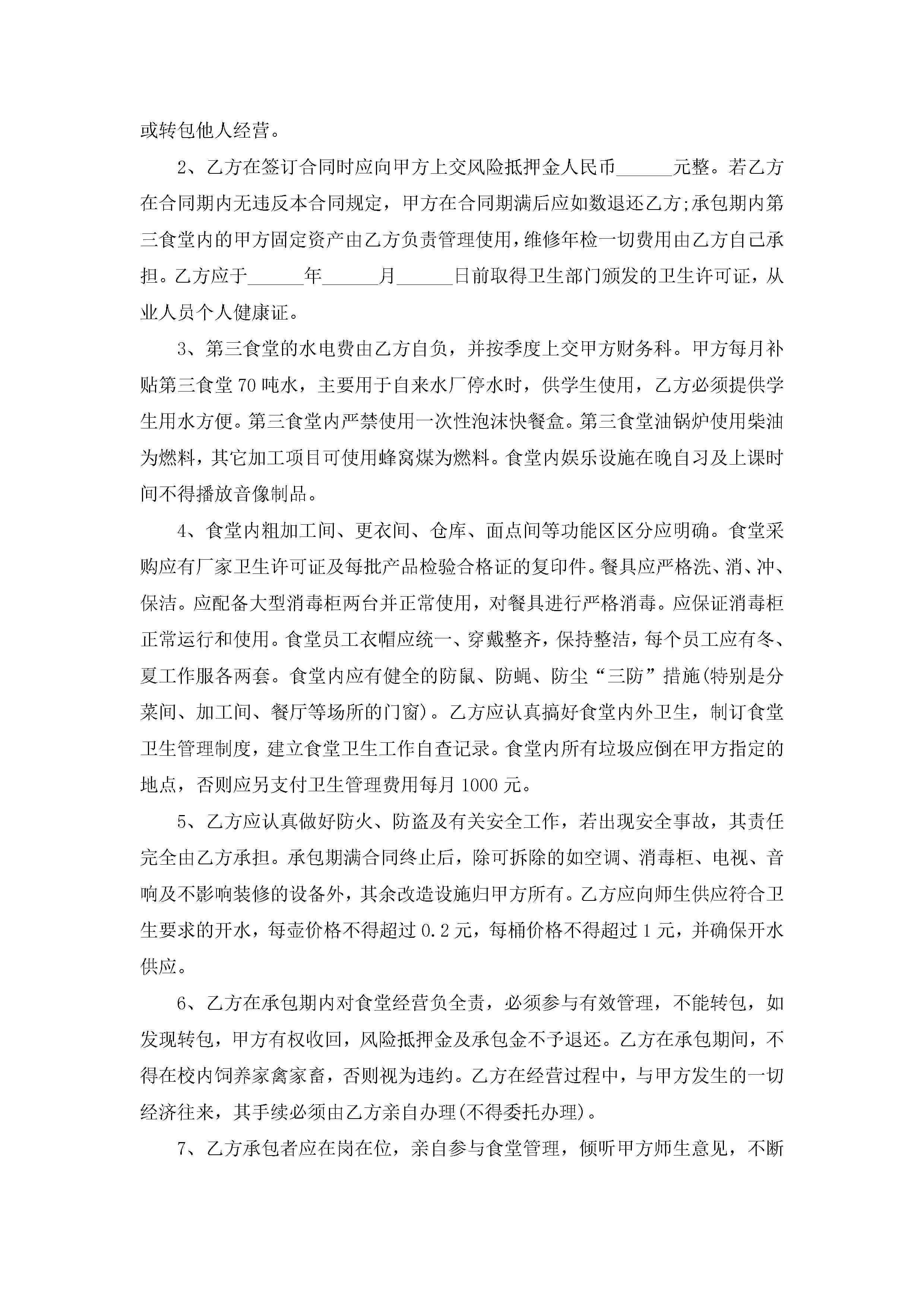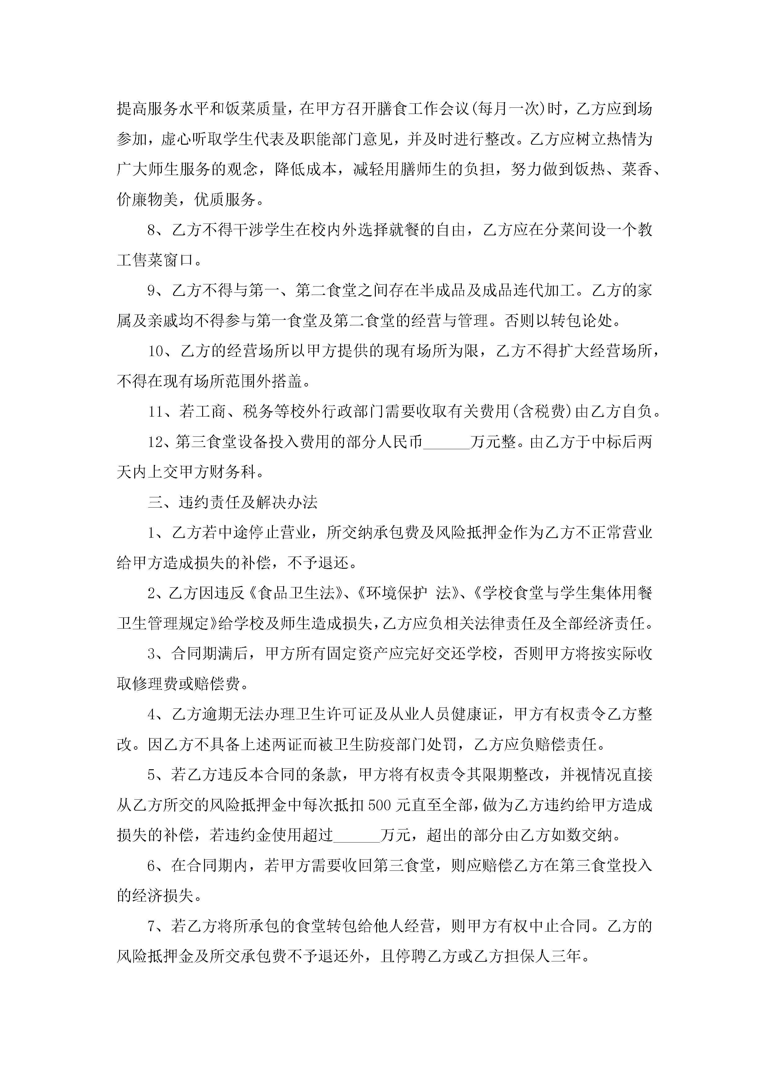 最新学校食堂承包合同5篇jugei3月23日 01:35发布关注251 最新学校食堂承包合同5篇此内容为付费资源,请付费后查看¥10.9 单篇文档限时特惠¥15个人会员开通企业会员开通立即下载无需登陆!可直接快捷下载单个模板付费资源© 版权声明THE ENDWord模板# 实用文档# 实用模板# 合同模板# 承包合同 如有问题,可点击最底部“联系我们”联系客服 分享QQ空间微博QQ好友海报分享复制链接收藏