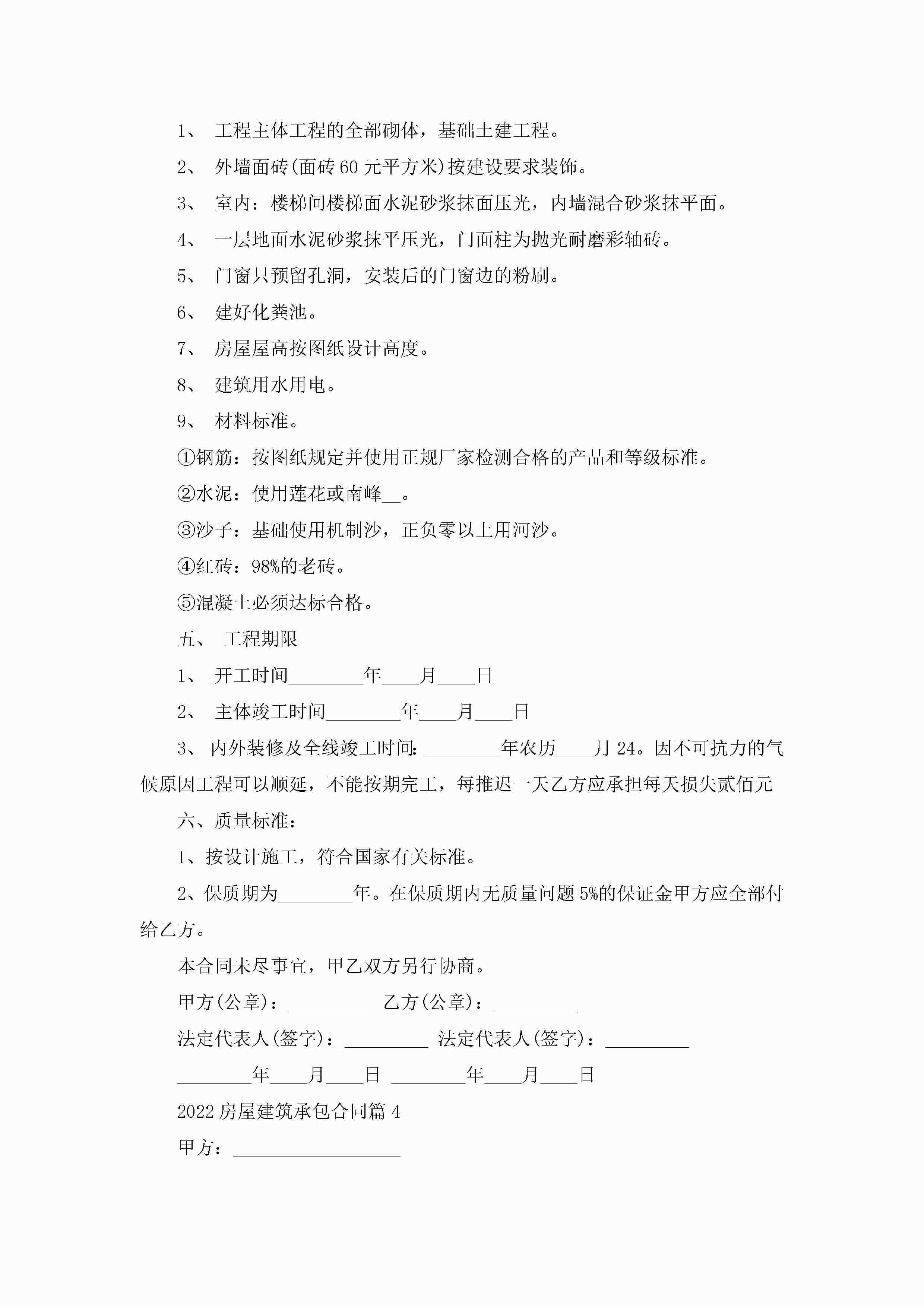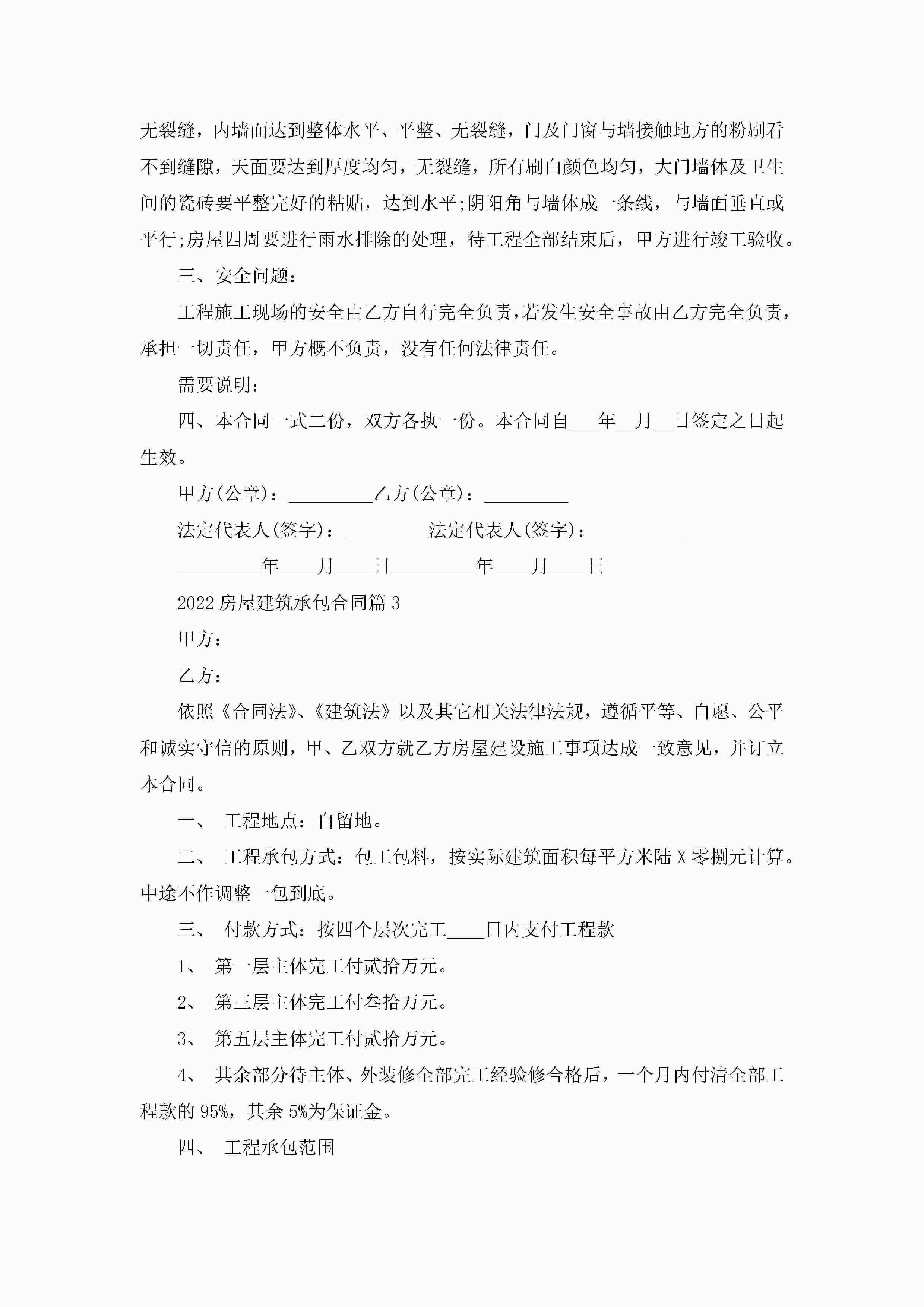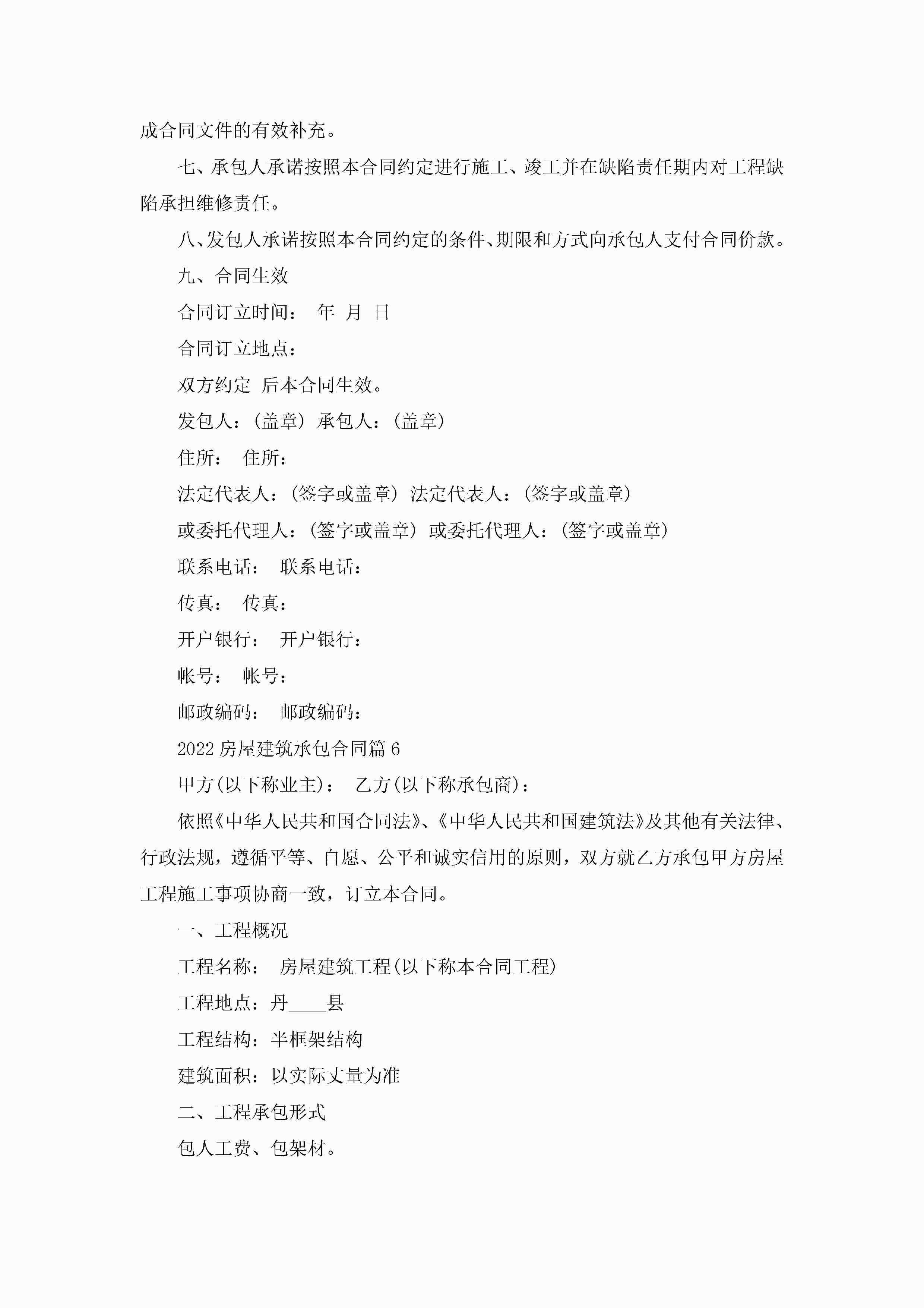 关于2022房屋建筑承包合同8篇jugei3月23日 01:35发布关注219 关于2022房屋建筑承包合同8篇此内容为付费资源,请付费后查看¥10.9 单篇文档限时特惠¥15个人会员开通企业会员开通立即下载无需登陆!可直接快捷下载单个模板付费资源© 版权声明THE ENDWord模板# 实用文档# 合同模板# 承包合同# 2022房屋建筑承包合同8篇 如有问题,可点击最底部“联系我们”联系客服 分享QQ空间微博QQ好友海报分享复制链接收藏