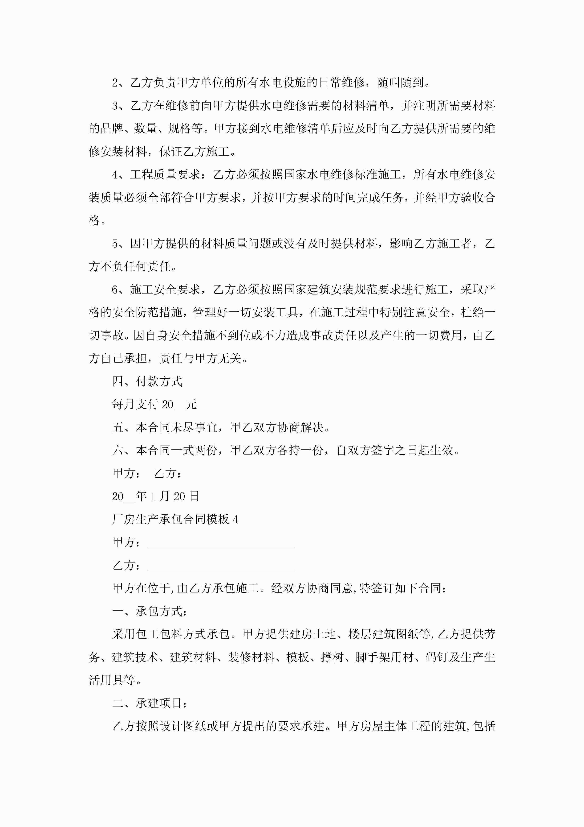 关于厂房生产承包合同模板5篇jugei3月23日 01:35发布关注191 关于厂房生产承包合同模板5篇此内容为付费资源,请付费后查看¥10.9 单篇文档限时特惠¥15个人会员开通企业会员开通立即下载无需登陆!可直接快捷下载单个模板付费资源© 版权声明THE ENDWord模板# 实用文档# 实用模板# 合同模板# 承包合同 如有问题,可点击最底部“联系我们”联系客服 分享QQ空间微博QQ好友海报分享复制链接收藏