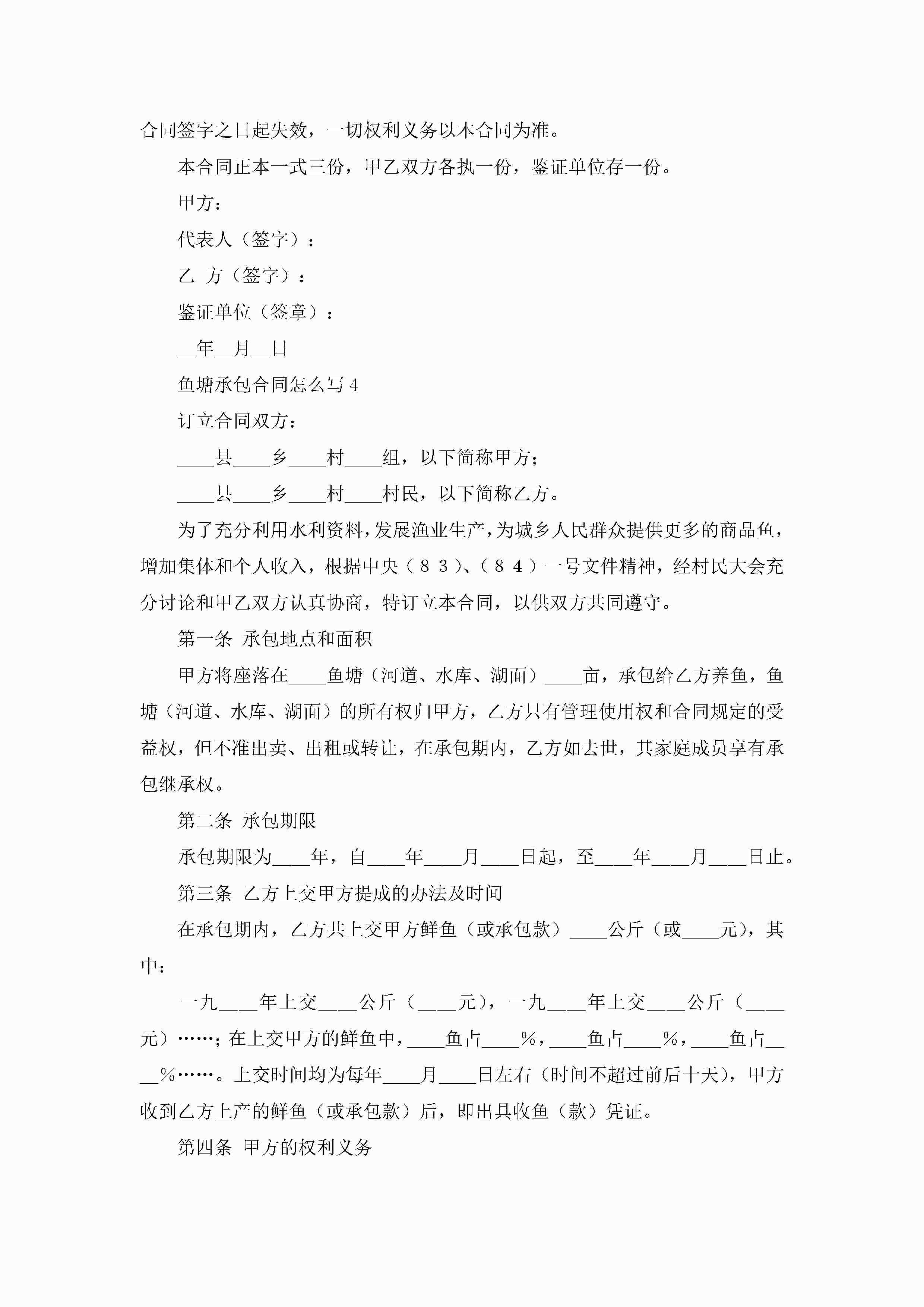鱼塘承包合同怎么写5篇(精选)jugei3月23日 01:35发布关注196 鱼塘承包合同怎么写5篇(精选)此内容为付费资源,请付费后查看¥10.9 单篇文档限时特惠¥15个人会员开通企业会员开通立即下载无需登陆!可直接快捷下载单个模板付费资源© 版权声明THE ENDWord模板# 实用文档# 实用模板# 合同模板# 承包合同 如有问题,可点击最底部“联系我们”联系客服 分享QQ空间微博QQ好友海报分享复制链接收藏