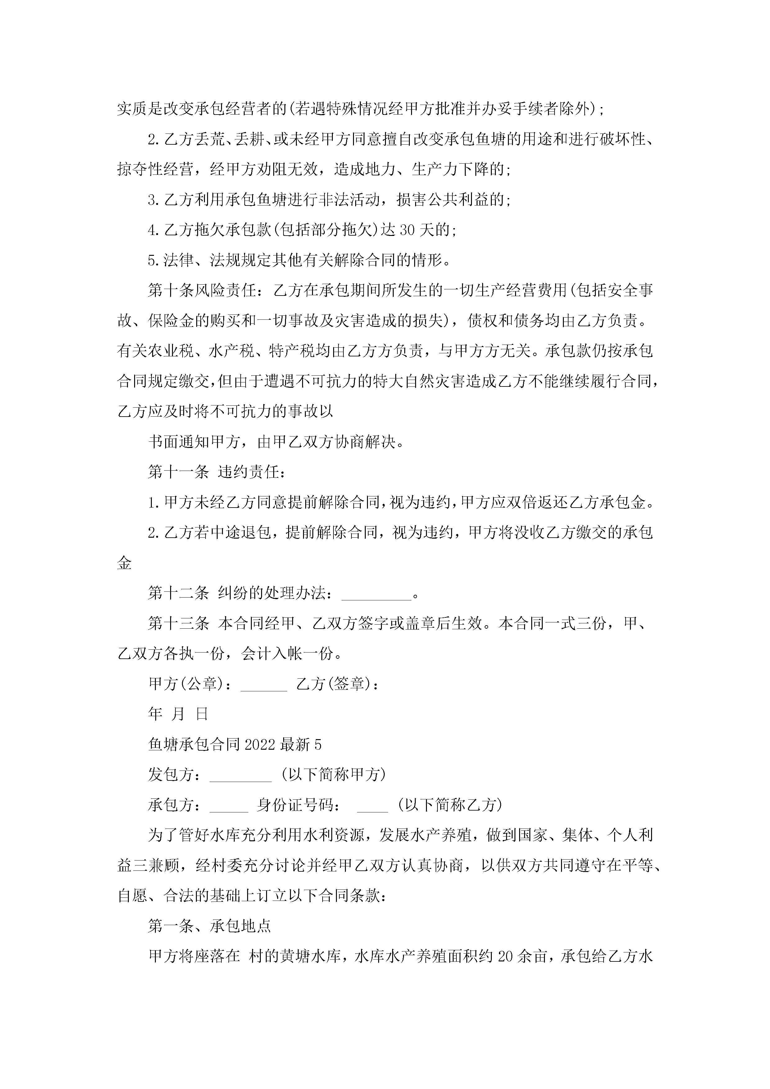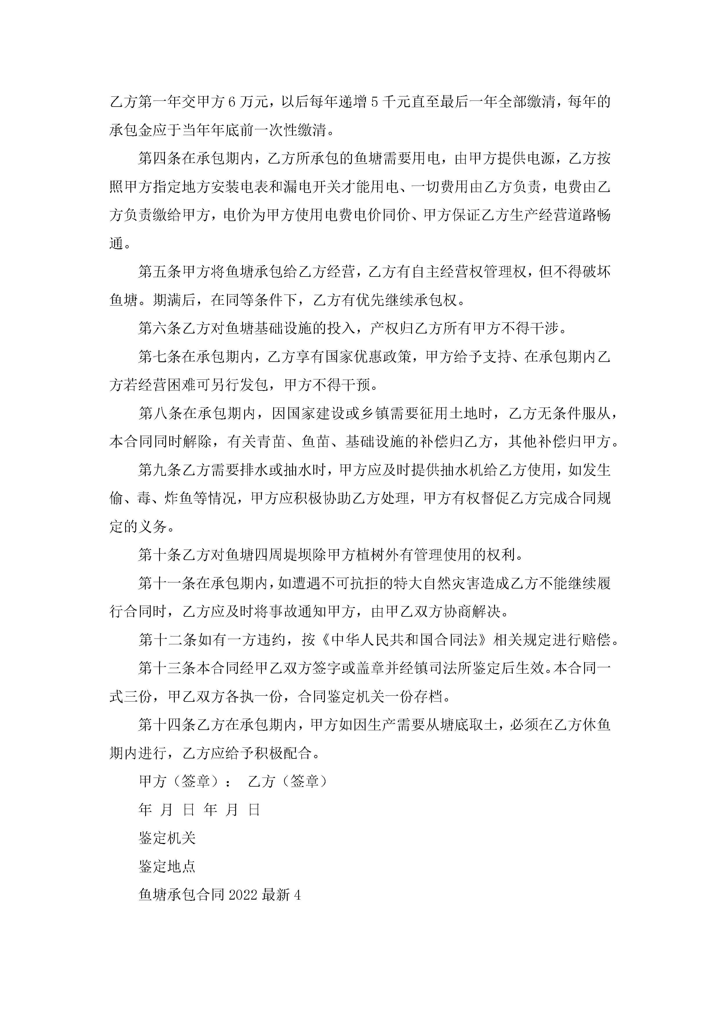 鱼塘承包合同2022最新5篇(精选)jugei3月23日 01:35发布关注191 鱼塘承包合同2022最新5篇(精选)此内容为付费资源,请付费后查看¥10.9 单篇文档限时特惠¥15个人会员开通企业会员开通立即下载无需登陆!可直接快捷下载单个模板付费资源© 版权声明THE ENDWord模板# 实用文档# 实用模板# 合同模板# 承包合同 如有问题,可点击最底部“联系我们”联系客服 分享QQ空间微博QQ好友海报分享复制链接收藏