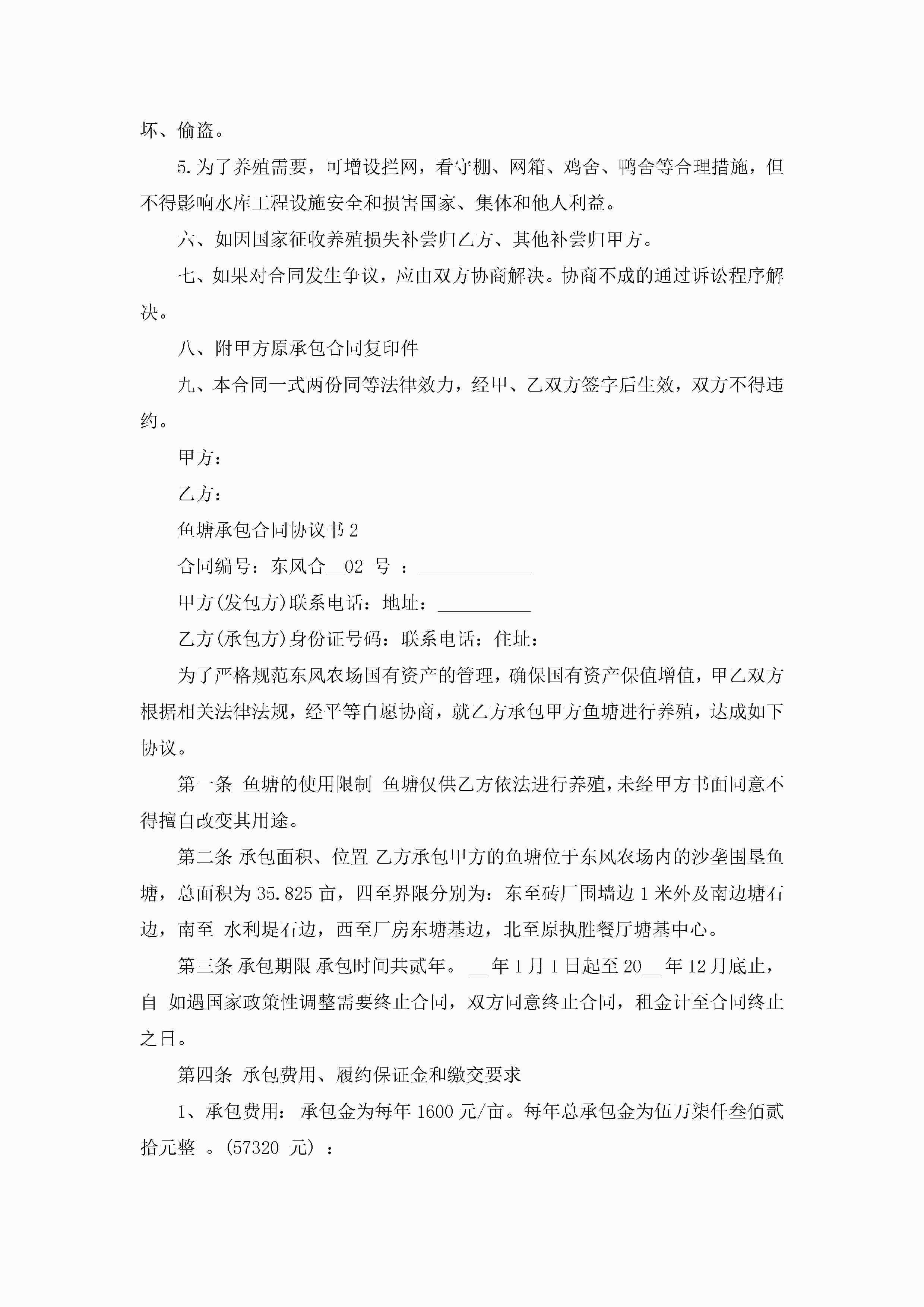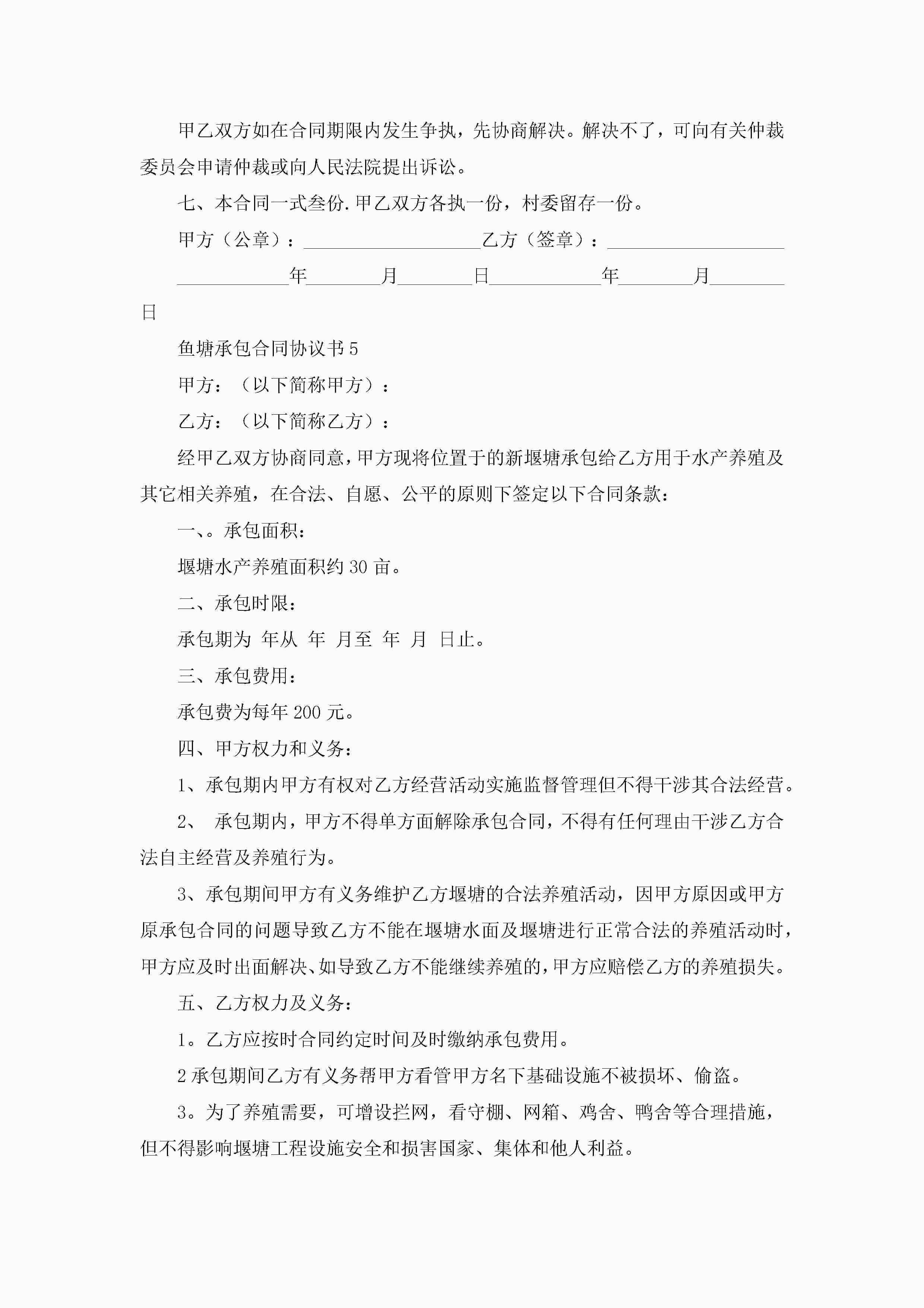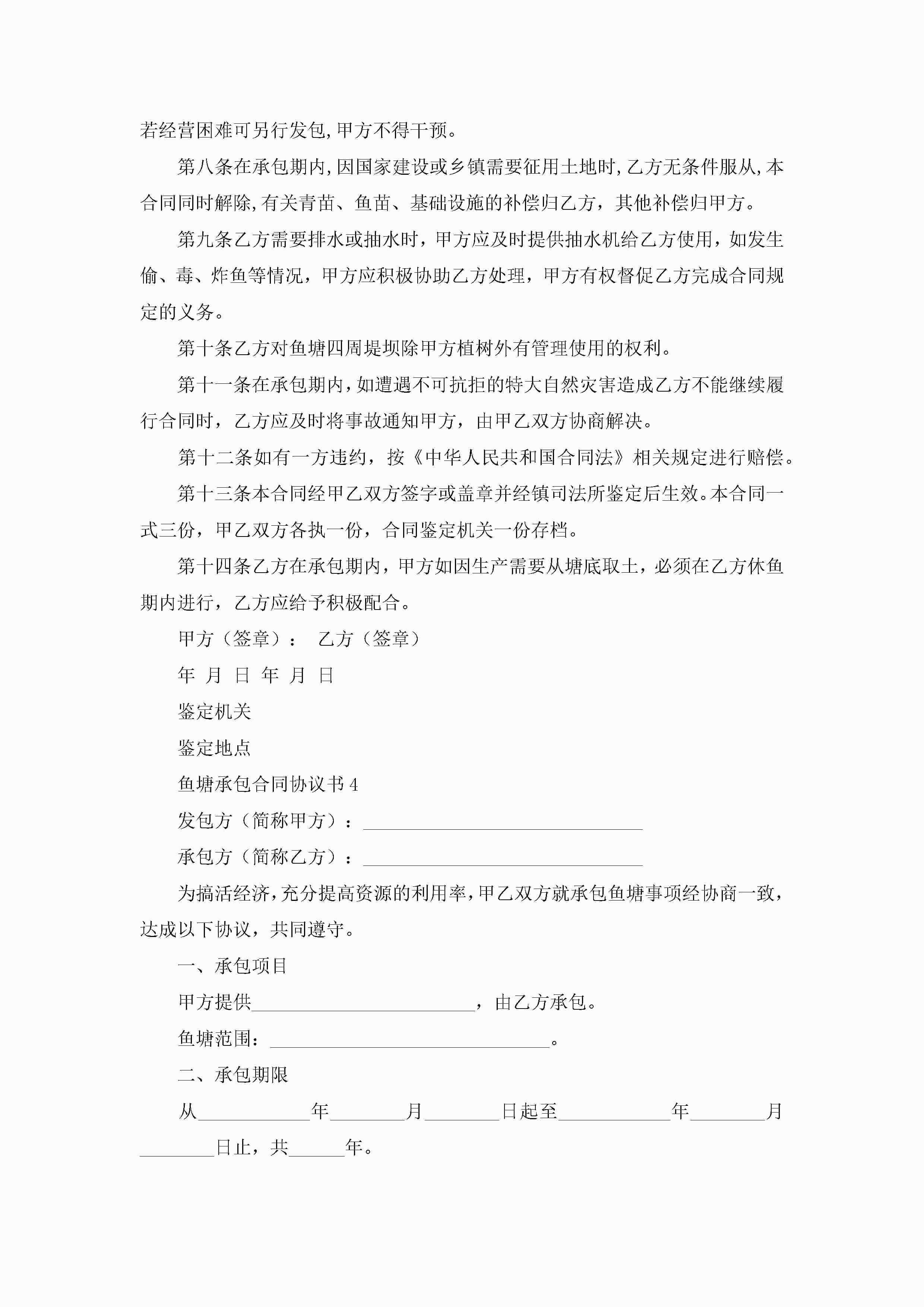 鱼塘承包合同协议书6篇(精选)jugei3月23日 01:35发布关注211 鱼塘承包合同协议书6篇(精选)此内容为付费资源,请付费后查看¥10.9 单篇文档限时特惠¥15个人会员开通企业会员开通立即下载无需登陆!可直接快捷下载单个模板付费资源© 版权声明THE ENDWord模板# 实用文档# 实用模板# 合同模板# 承包合同 如有问题,可点击最底部“联系我们”联系客服 分享QQ空间微博QQ好友海报分享复制链接收藏