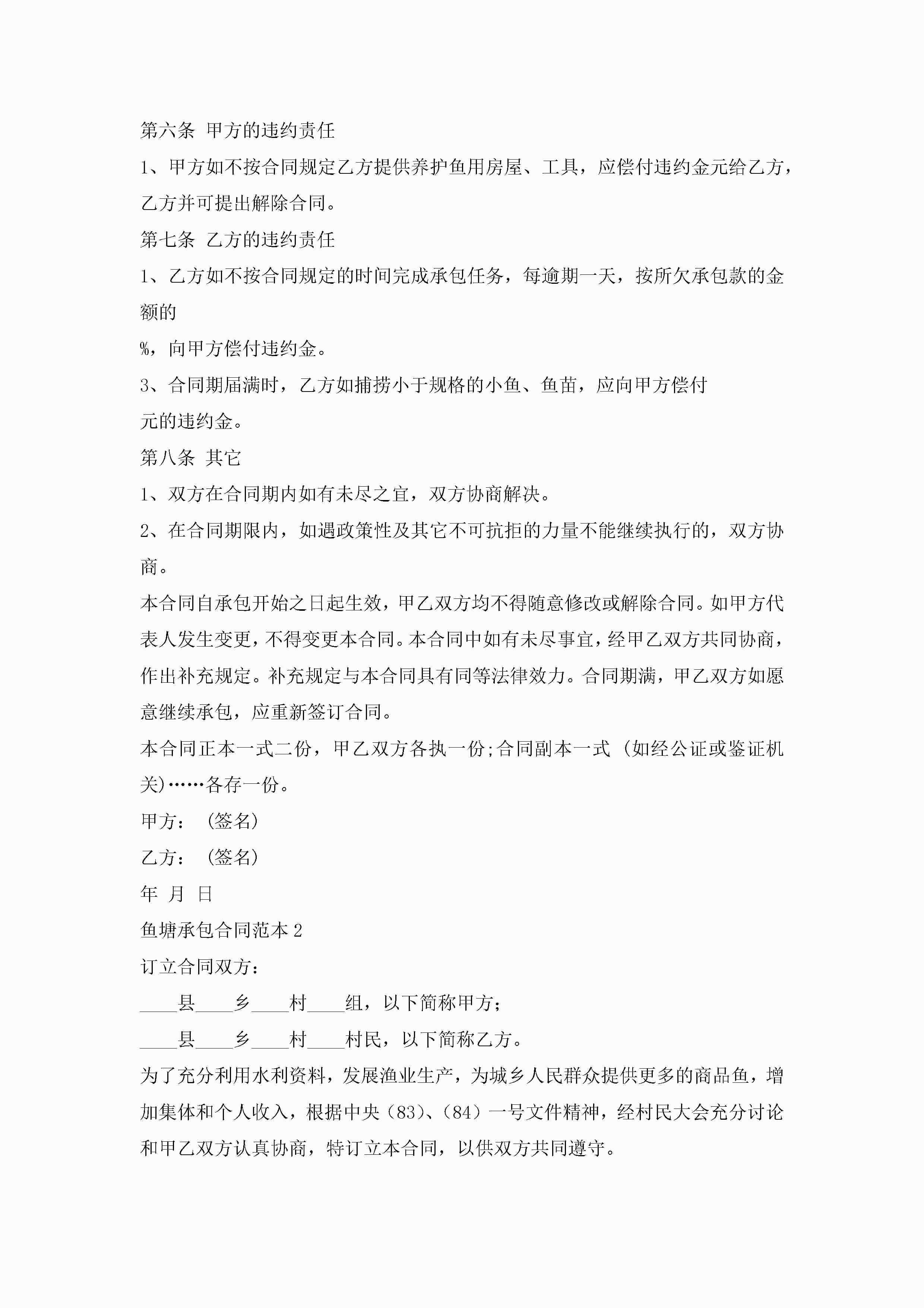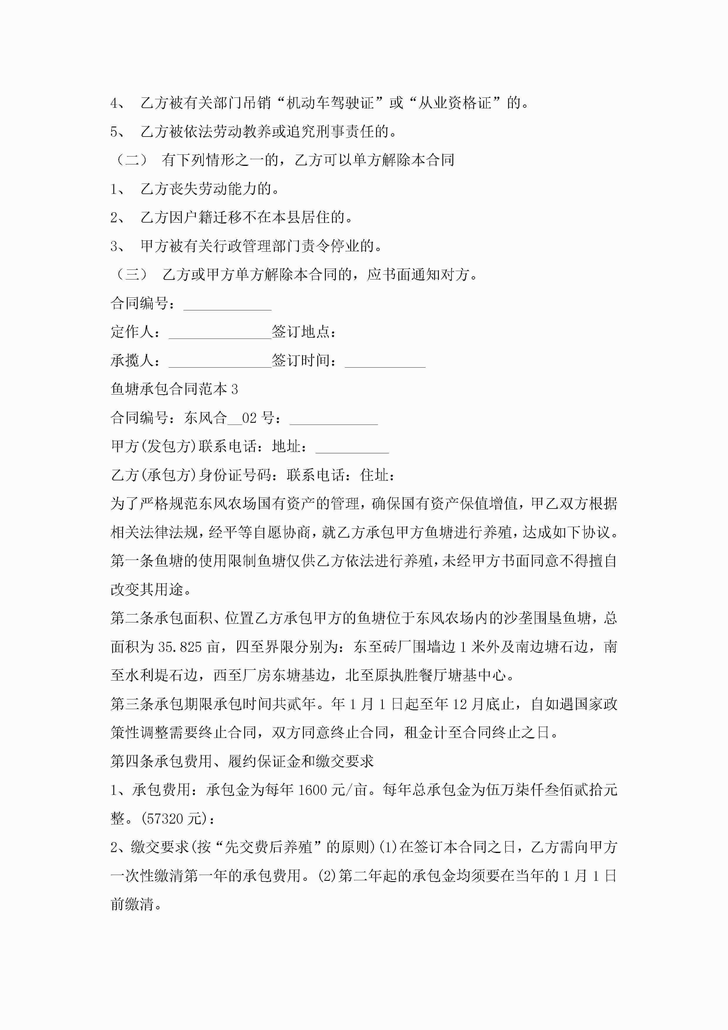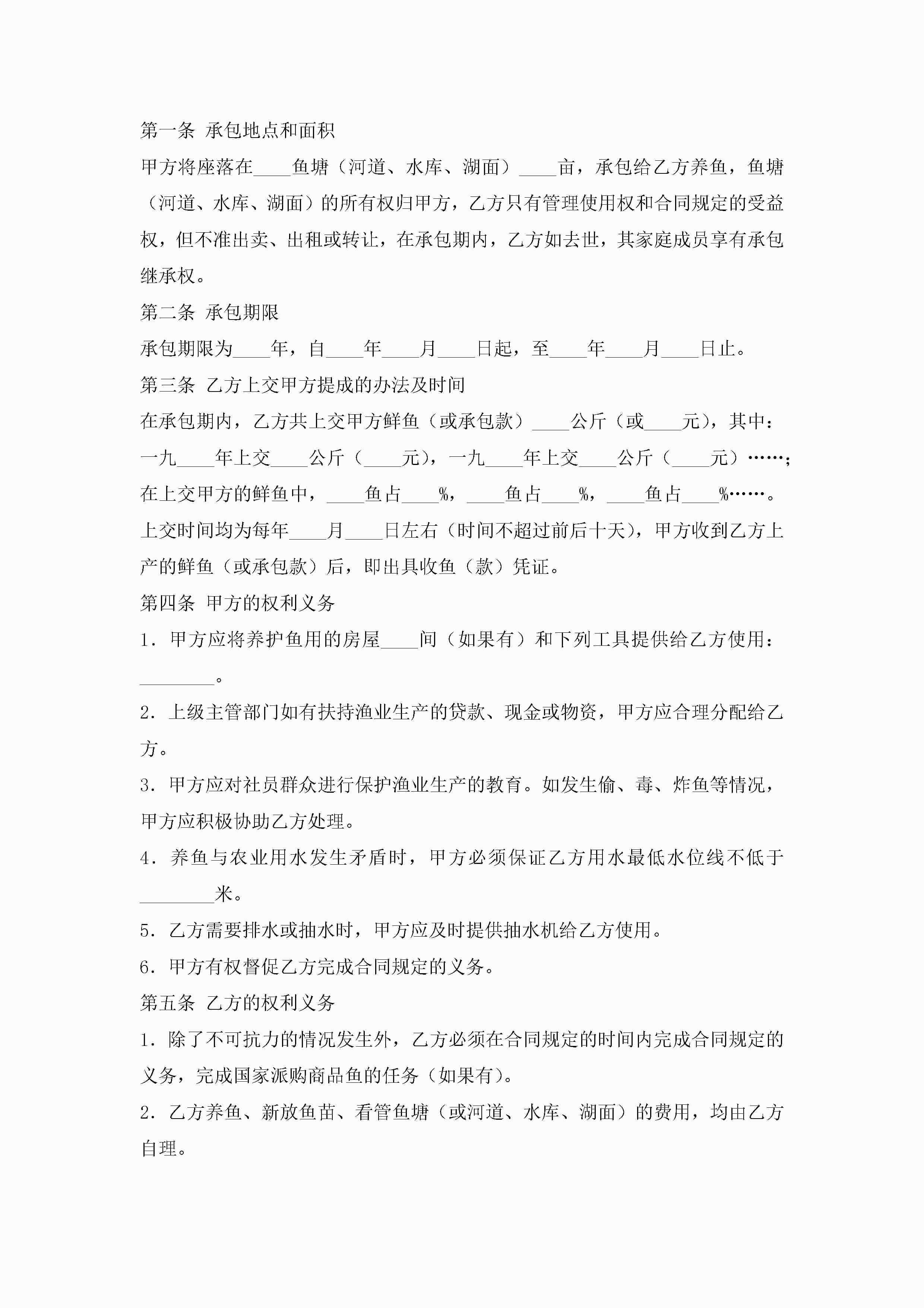 鱼塘承包合同范本5篇(精选)jugei3月23日 01:35发布关注195 鱼塘承包合同范本5篇(精选)此内容为付费资源,请付费后查看¥10.9 单篇文档限时特惠¥15个人会员开通企业会员开通立即下载无需登陆!可直接快捷下载单个模板付费资源© 版权声明THE ENDWord模板# 实用文档# 实用模板# 合同模板# 承包合同 如有问题,可点击最底部“联系我们”联系客服 分享QQ空间微博QQ好友海报分享复制链接收藏
