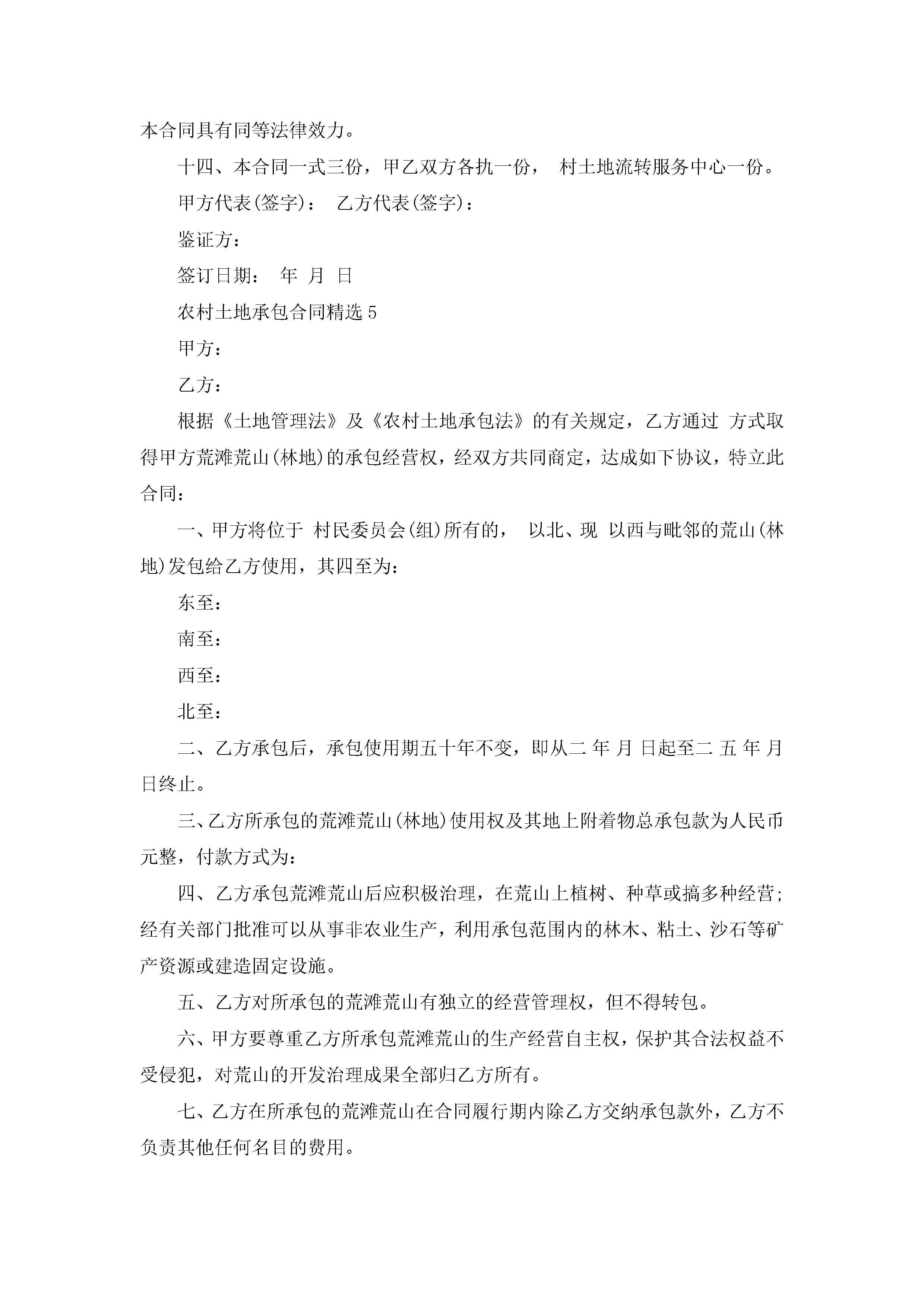 农村土地承包合同精选范本10篇(实用)jugei3月23日 01:35发布关注188 农村土地承包合同精选范本10篇(实用)此内容为付费资源,请付费后查看¥10.9 单篇文档限时特惠¥15个人会员开通企业会员开通立即下载无需登陆!可直接快捷下载单个模板付费资源© 版权声明THE ENDWord模板# 实用文档# 实用模板# 合同模板# 承包合同 如有问题,可点击最底部“联系我们”联系客服 分享QQ空间微博QQ好友海报分享复制链接收藏