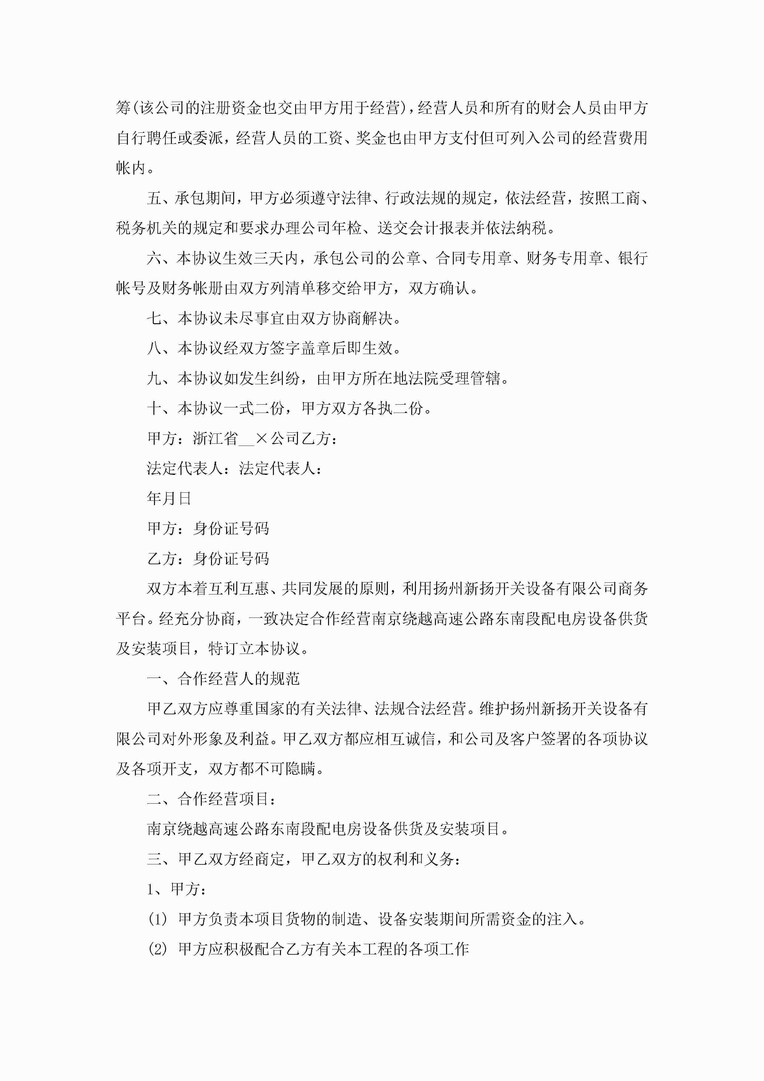 承包经营合同简短模板jugei3月23日 01:35发布关注206 承包经营合同简短模板此内容为付费资源,请付费后查看¥10.9 单篇文档限时特惠¥15个人会员开通企业会员开通立即下载无需登陆!可直接快捷下载单个模板付费资源© 版权声明THE ENDWord模板# 实用文档# 实用模板# 合同模板# 承包合同 如有问题,可点击最底部“联系我们”联系客服 分享QQ空间微博QQ好友海报分享复制链接收藏