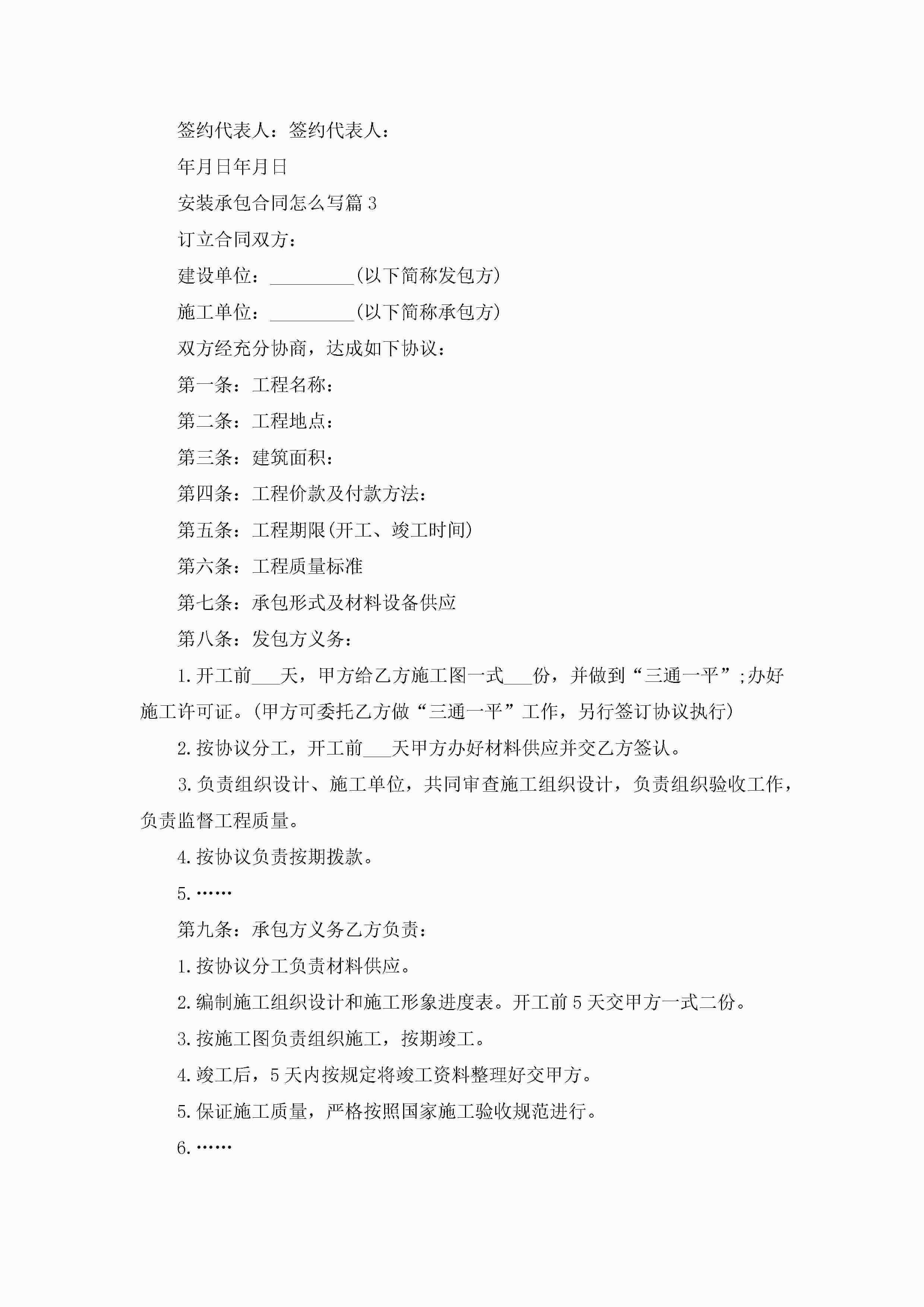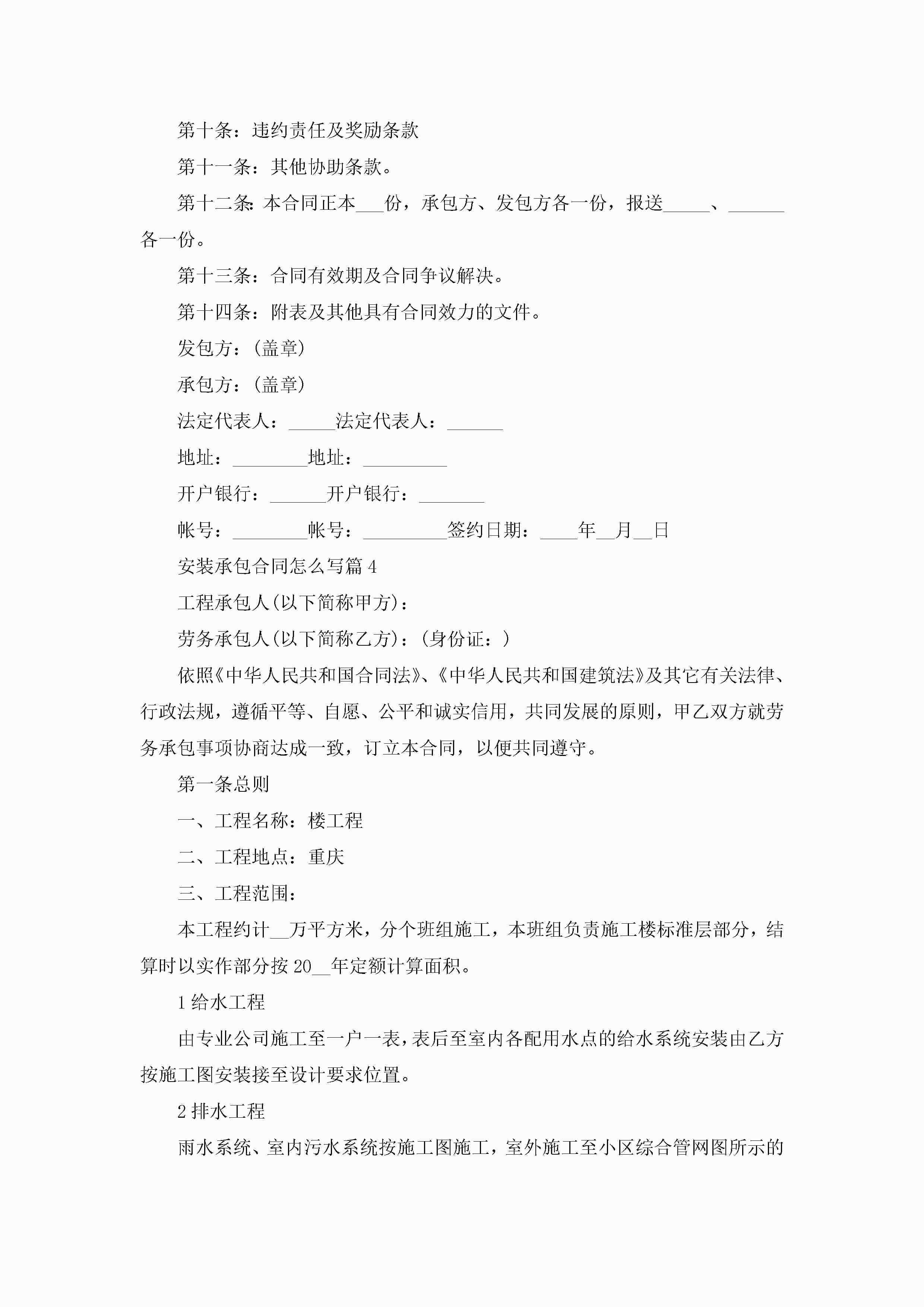 安装承包合同模板怎么写jugei3月23日 01:35发布关注200 安装承包合同模板怎么写此内容为付费资源,请付费后查看¥10.9 单篇文档限时特惠¥15个人会员开通企业会员开通立即下载无需登陆!可直接快捷下载单个模板付费资源© 版权声明THE ENDWord模板# 实用文档# 实用模板# 合同模板# 承包合同 如有问题,可点击最底部“联系我们”联系客服 分享QQ空间微博QQ好友海报分享复制链接收藏