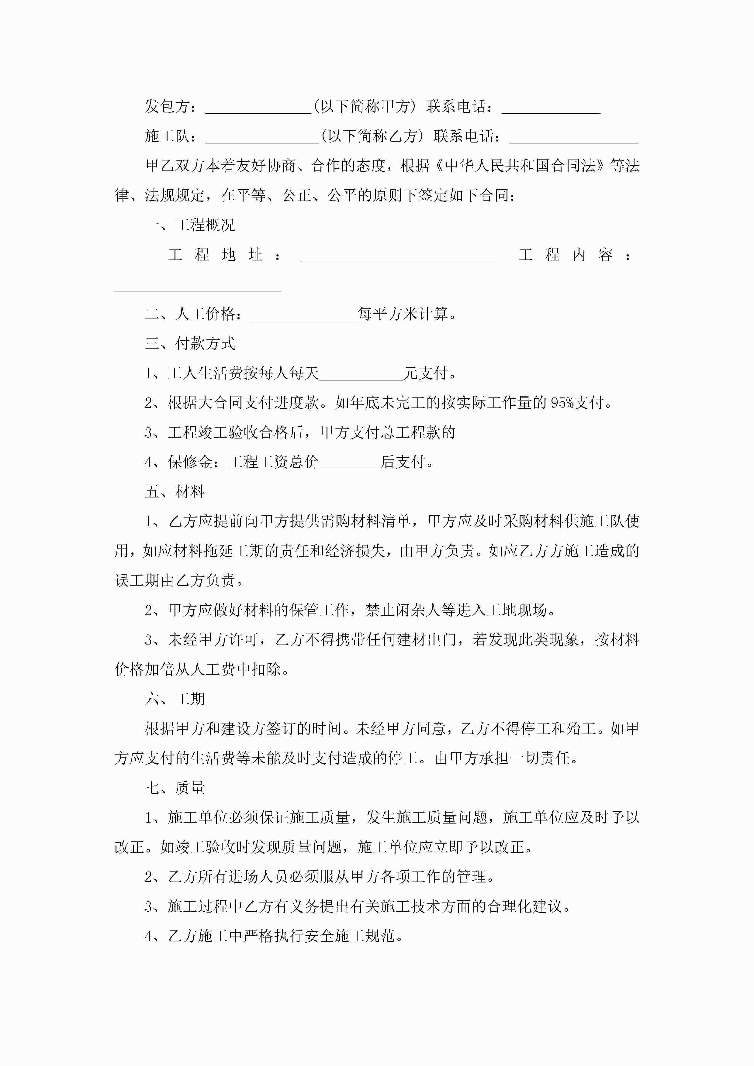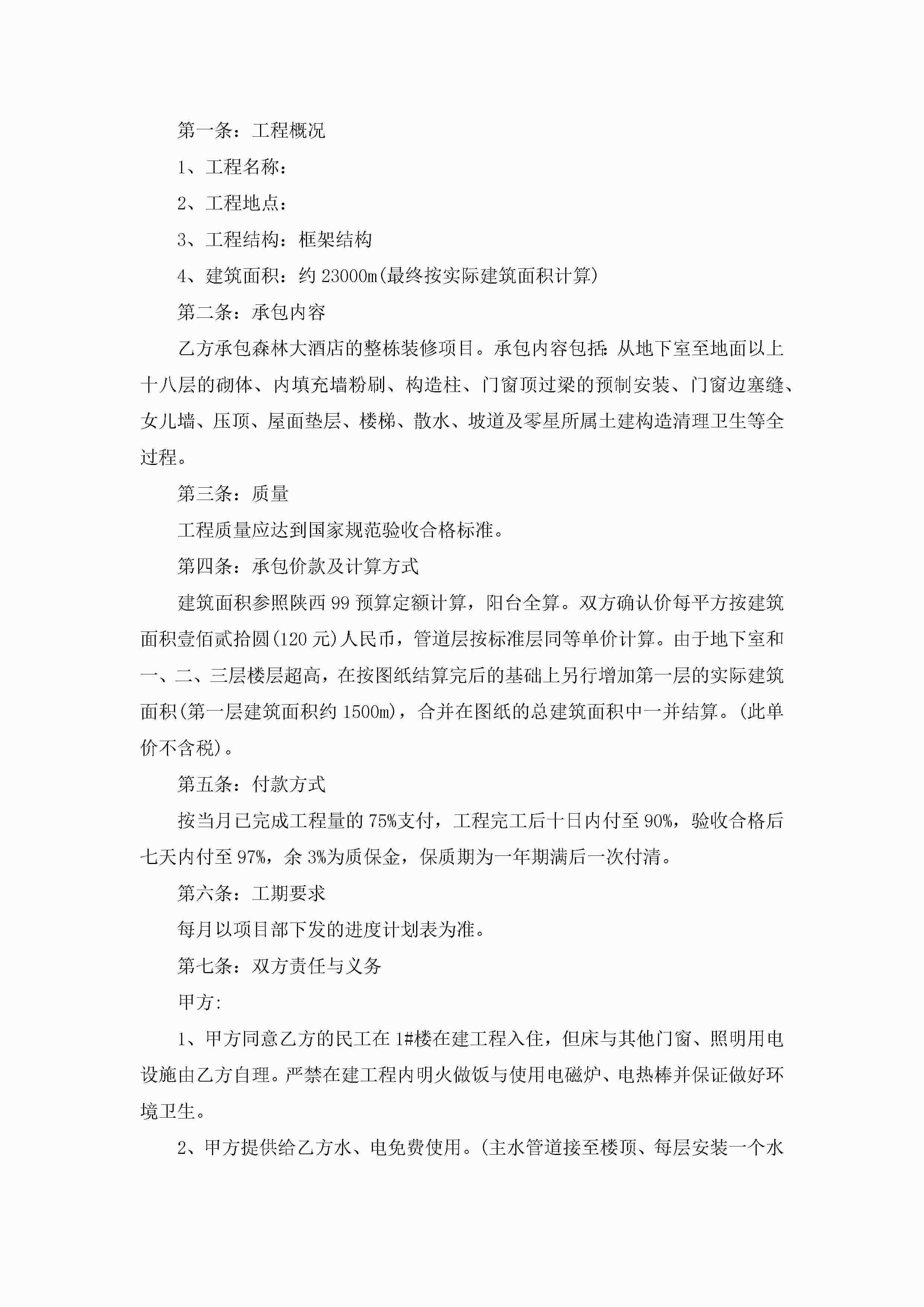 工程劳务承包合同模板5篇jugei3月23日 01:35发布关注243 工程劳务承包合同模板5篇此内容为付费资源,请付费后查看¥10.9 单篇文档限时特惠¥15个人会员开通企业会员开通立即下载无需登陆!可直接快捷下载单个模板付费资源© 版权声明THE ENDWord模板# 实用文档# 合同模板# 承包合同# 工程劳务承包合同模板 如有问题,可点击最底部“联系我们”联系客服 分享QQ空间微博QQ好友海报分享复制链接收藏