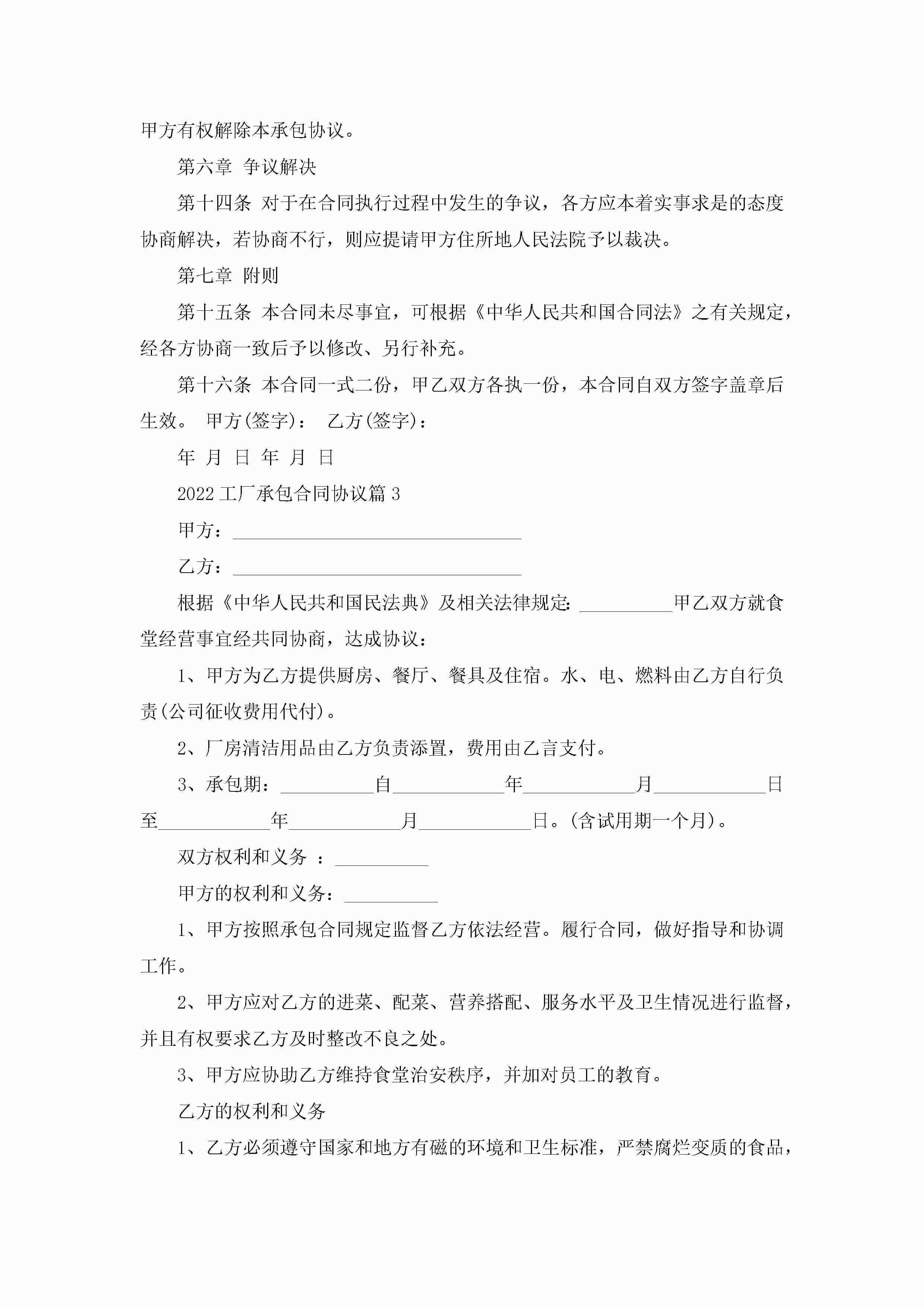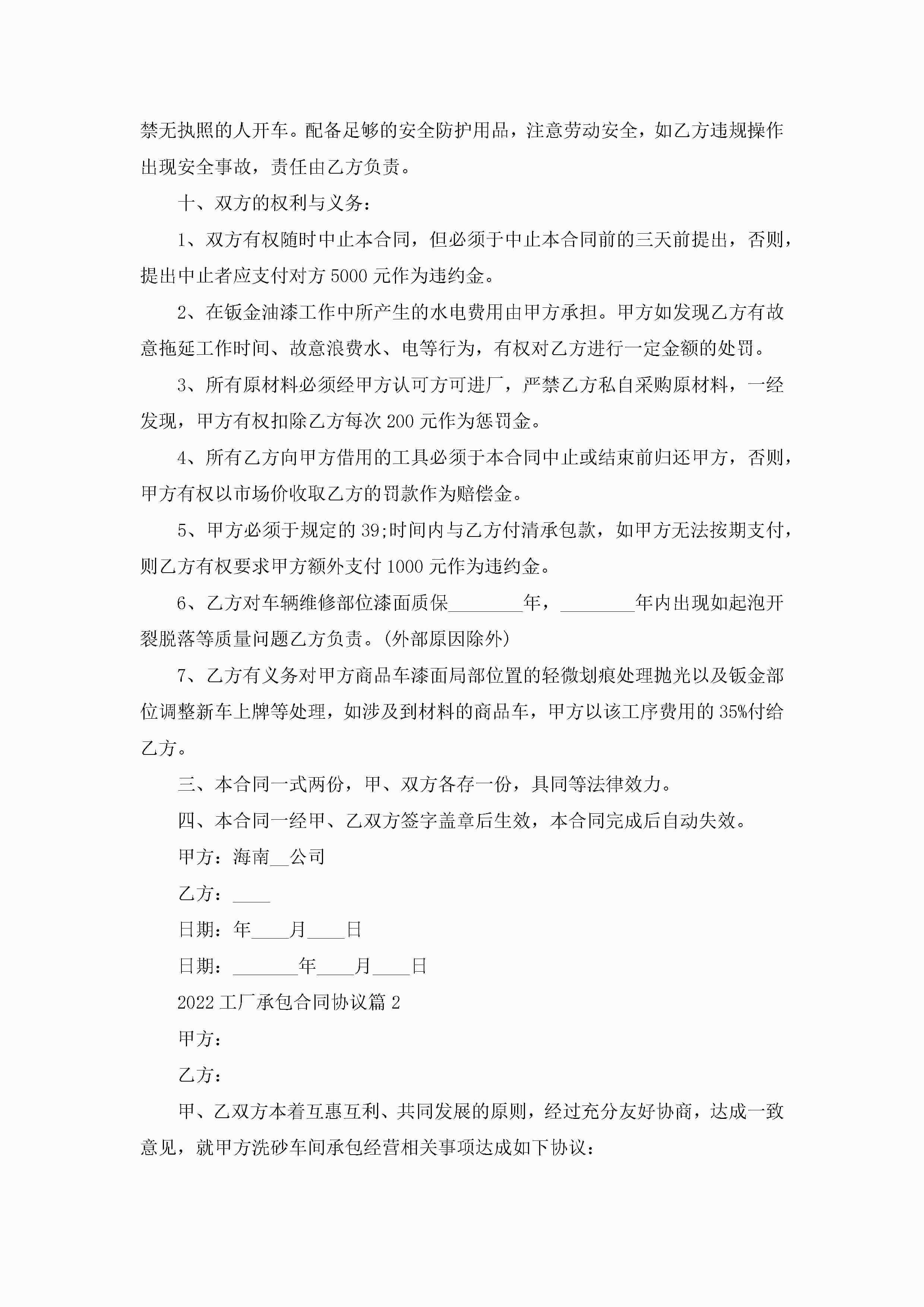 关于2022工厂承包合同协议8篇jugei3月23日 01:35发布关注226 关于2022工厂承包合同协议8篇此内容为付费资源,请付费后查看¥10.9 单篇文档限时特惠¥15个人会员开通企业会员开通立即下载无需登陆!可直接快捷下载单个模板付费资源© 版权声明THE ENDWord模板# 实用文档# 合同模板# 承包合同# 2022工厂承包合同协议8篇 如有问题,可点击最底部“联系我们”联系客服 分享QQ空间微博QQ好友海报分享复制链接收藏