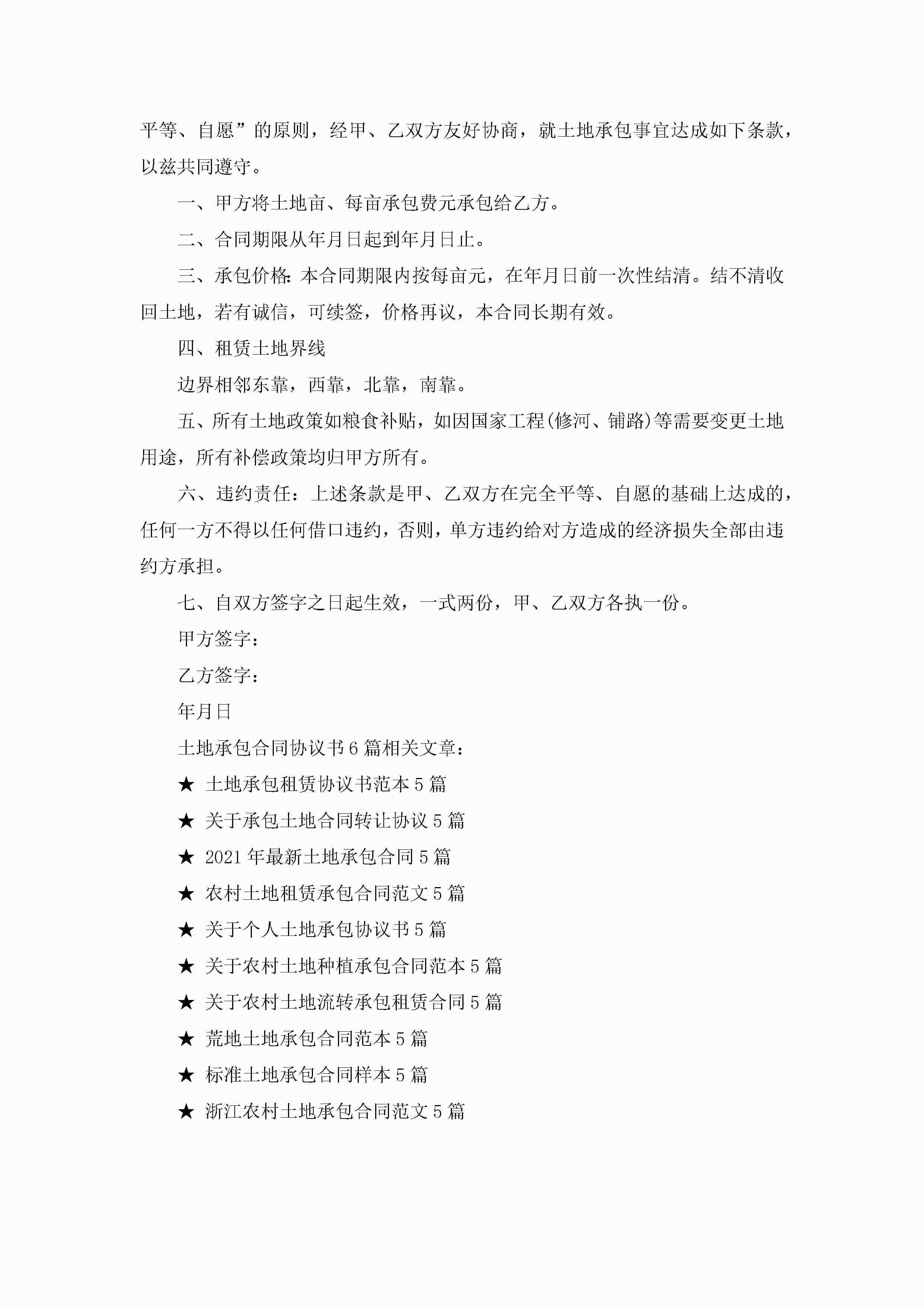 土地承包合同协议书6篇(精选)jugei3月23日 01:35发布关注194 土地承包合同协议书6篇(精选)此内容为付费资源,请付费后查看¥10.9 单篇文档限时特惠¥15个人会员开通企业会员开通立即下载无需登陆!可直接快捷下载单个模板付费资源© 版权声明THE ENDWord模板# 实用文档# 实用模板# 合同模板# 承包合同 如有问题,可点击最底部“联系我们”联系客服 分享QQ空间微博QQ好友海报分享复制链接收藏