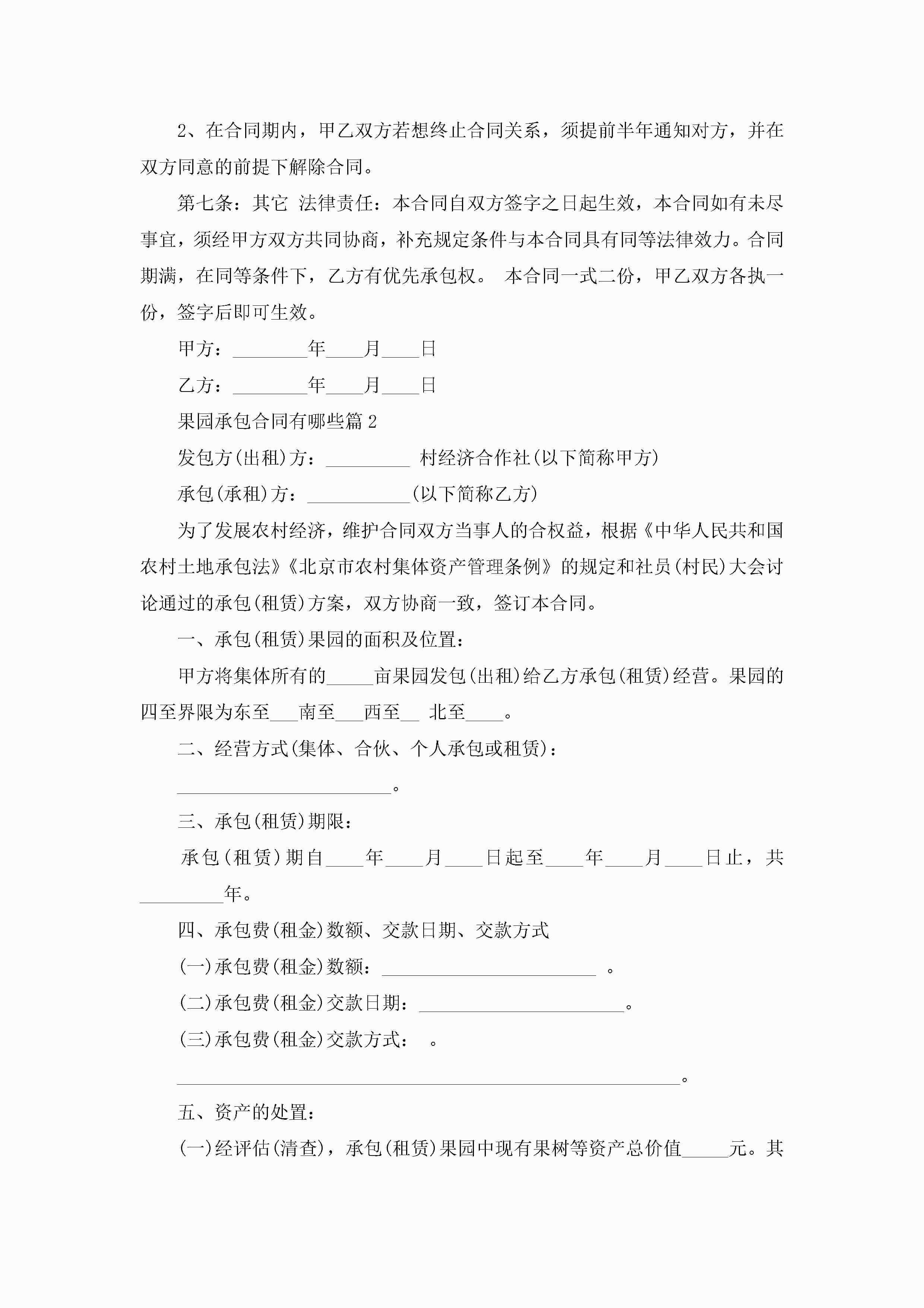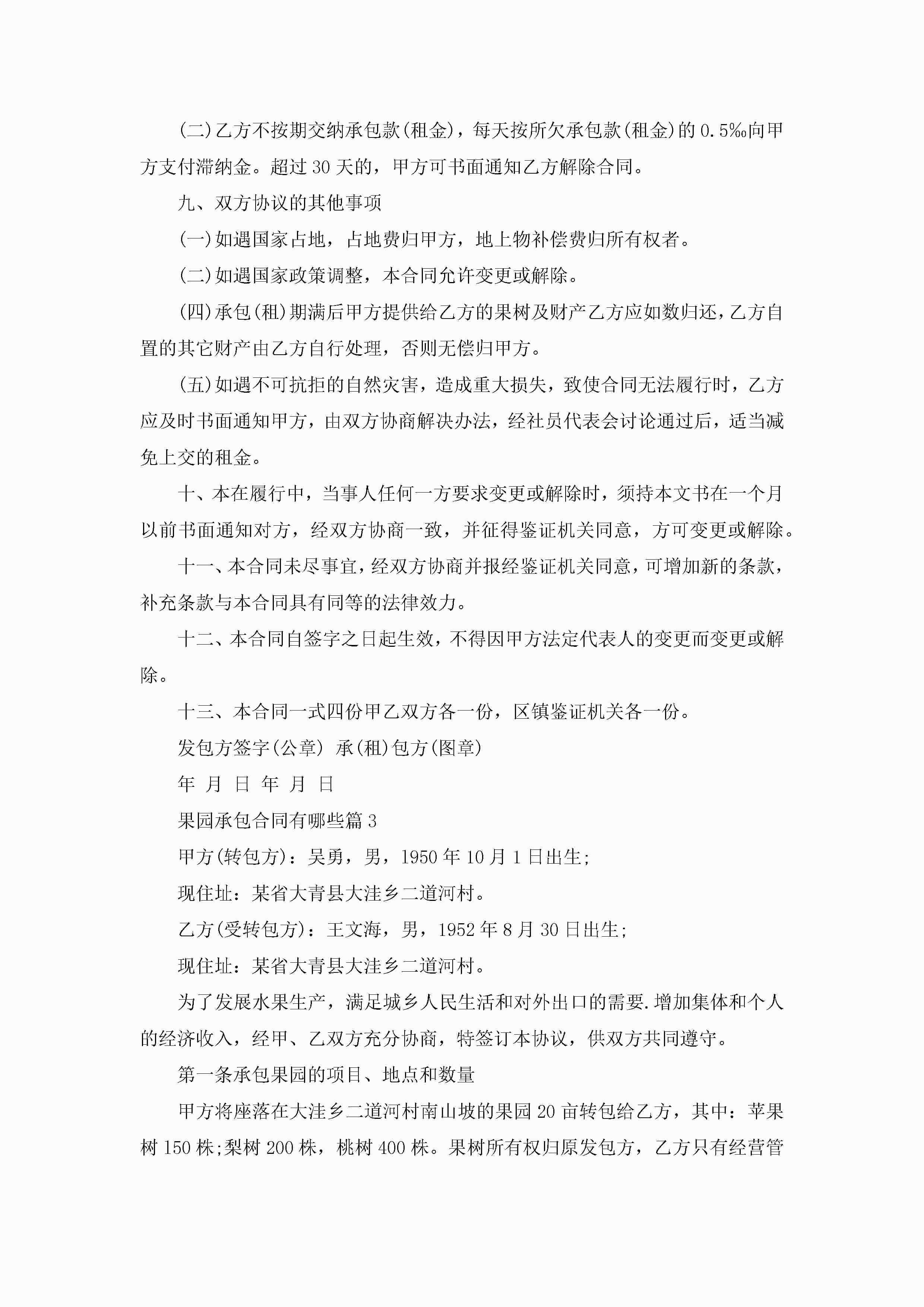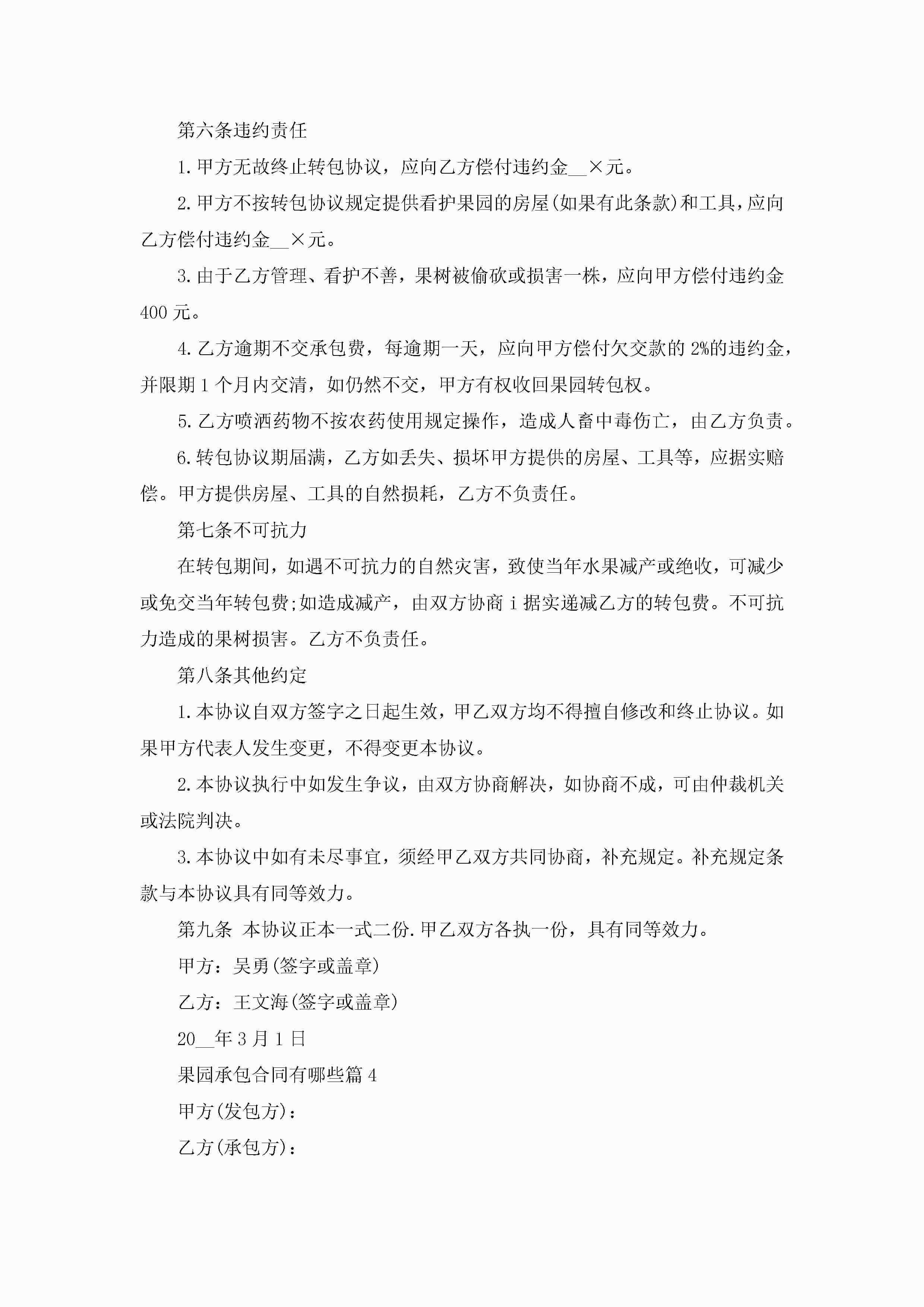 果园承包合同模板有哪些jugei3月23日 01:35发布关注238 果园承包合同模板有哪些此内容为付费资源,请付费后查看¥10.9 单篇文档限时特惠¥15个人会员开通企业会员开通立即下载无需登陆!可直接快捷下载单个模板付费资源© 版权声明THE ENDWord模板# 实用文档# 实用模板# 合同模板# 承包合同 如有问题,可点击最底部“联系我们”联系客服 分享QQ空间微博QQ好友海报分享复制链接收藏
