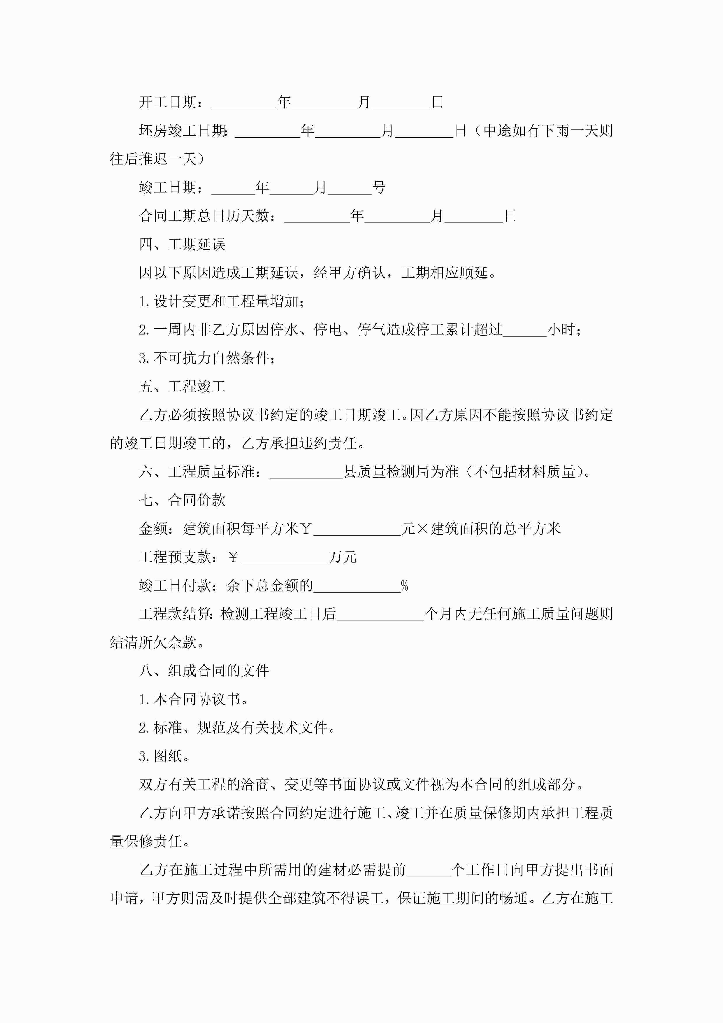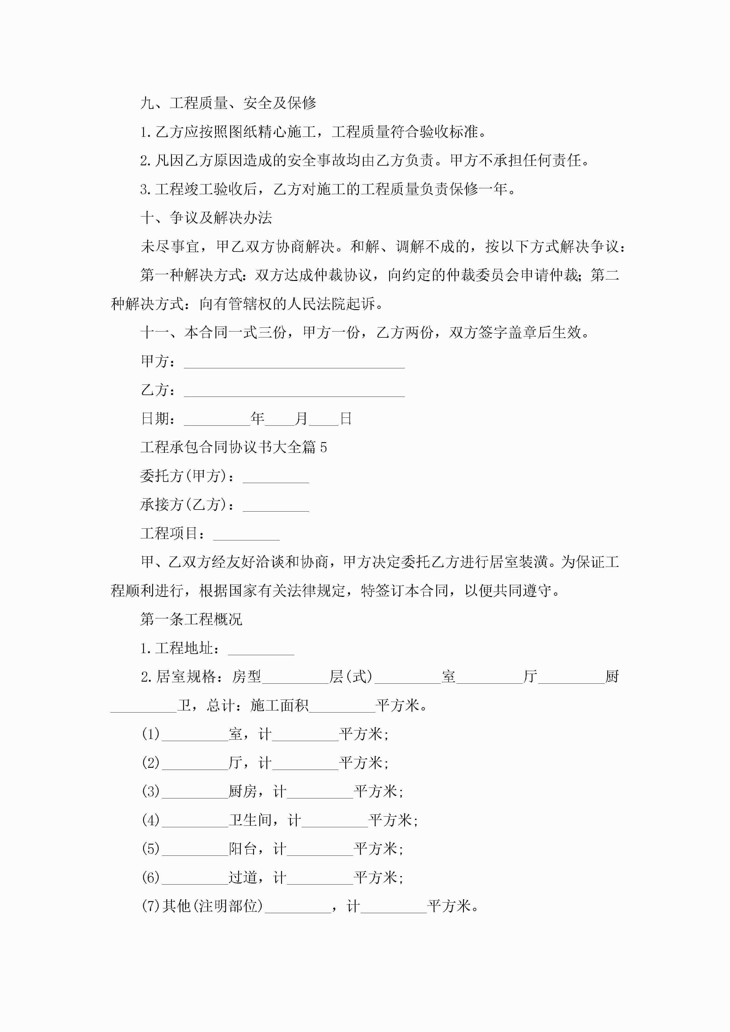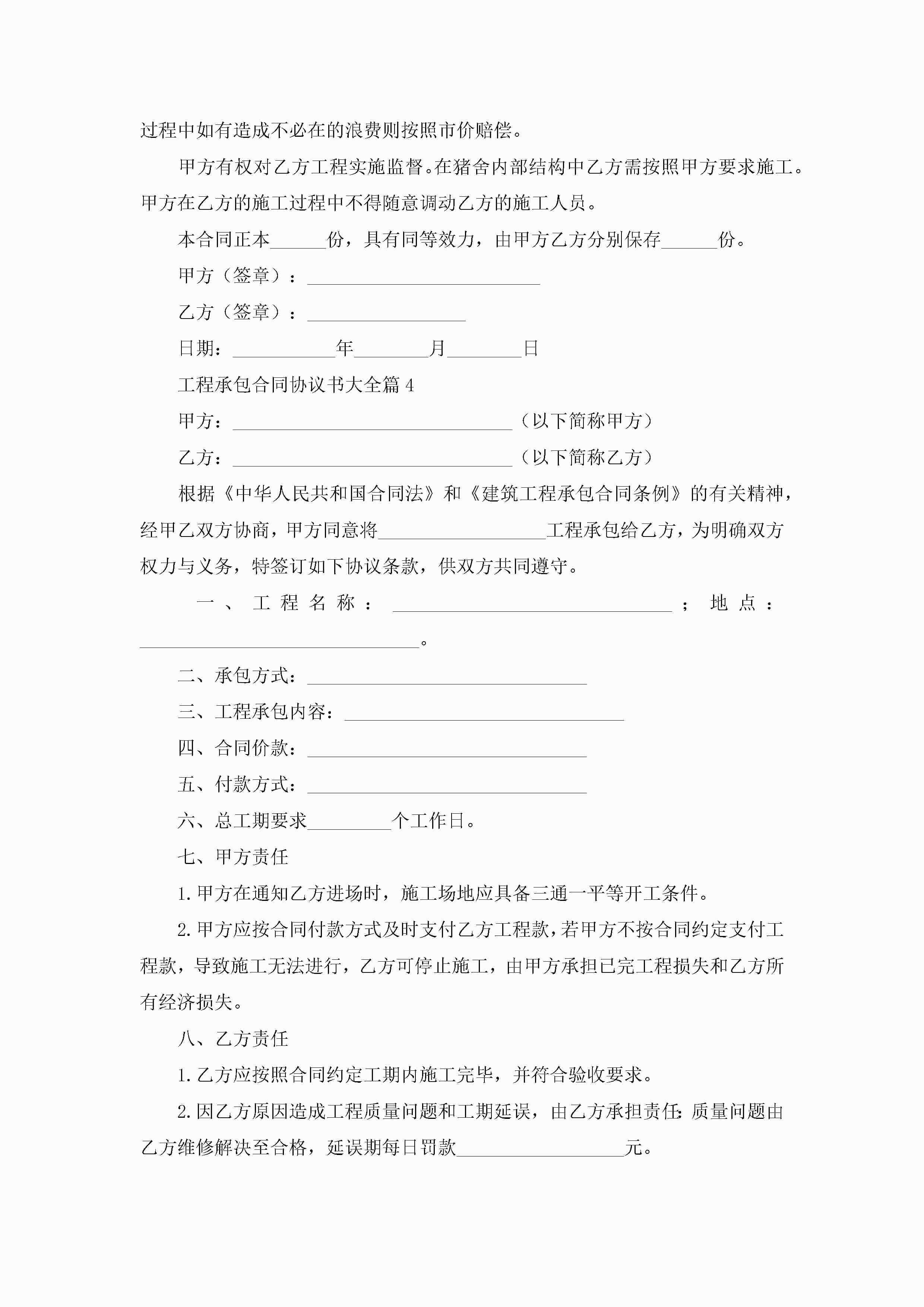 工程承包合同协议书大全5篇jugei3月23日 01:35发布关注192 工程承包合同协议书大全5篇此内容为付费资源,请付费后查看¥10.9 单篇文档限时特惠¥15个人会员开通企业会员开通立即下载无需登陆!可直接快捷下载单个模板付费资源© 版权声明THE ENDWord模板# 实用文档# 实用模板# 合同模板# 承包合同 如有问题,可点击最底部“联系我们”联系客服 分享QQ空间微博QQ好友海报分享复制链接收藏